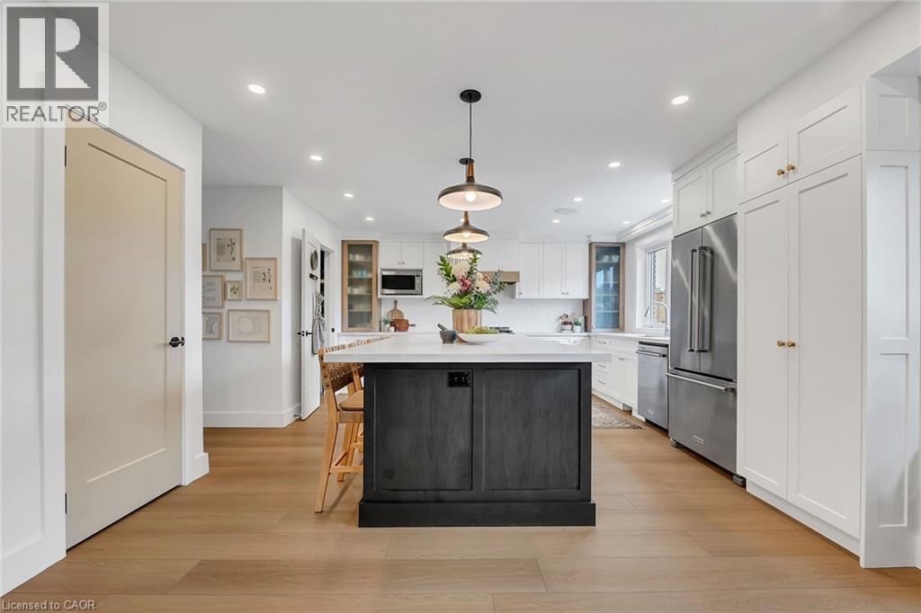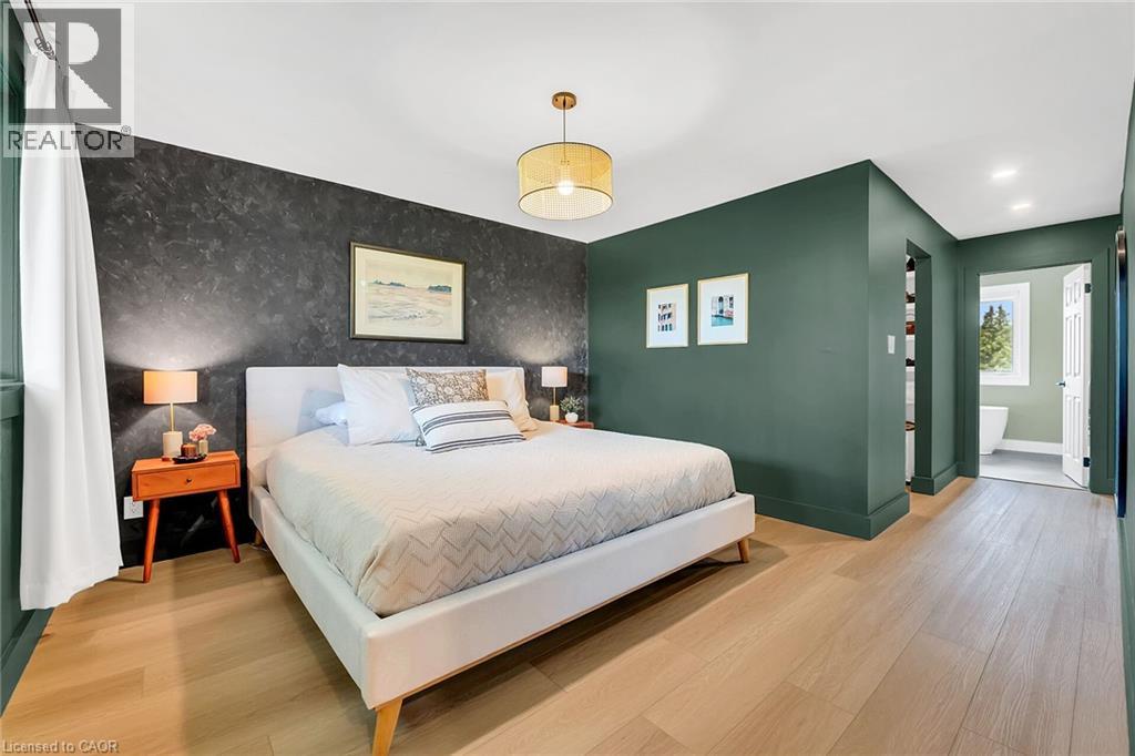 Welcome to 217 Jones Road—an extraordinary residence nestled in the prestigious and tranquil Fruitland Road neighbourhood of Stoney Creek. Set on a rare, fully fenced approx. 82.22’ x 200.42’ lot, home offers a peaceful, private retreat with exceptional outdoor space. Whether you envision entertaining on a grand scale, cultivating your own garden of fresh vegetables & fruit trees, or simply creating a backyard haven for family fun & relaxation. With over $400,000 in premium renovations, this meticulously redesigned home delivers refined living. The main flr features a beautifully appointed front office ideal for professionals, a stunning staircase centerpiece, a private wing with a bedrm—perfect for guests, in-laws, or multigenerational needs. Upstairs you’ll find 3 spacious bedrms, including a luxurious primary suite with spa-inspired 4-piece ensuite, along with the added convenience of bedrm-level laundry. The fully finished basement includes a 5th bedrm, 3-piece bathrm and is built on a core slab floor system, providing both acoustic privacy and the infrastructure for a potential self-contained in-law or income suite with separate access. Enjoy parking for 6+ cars in the expansive driveway plus a double garage. Enjoy the convenience of being just minutes from major retailers like Costco and Starbucks, boutique shopping, top dining spots, and all essential services. Easy connections to QEW, Red Hill Parkway, and local transit, making travel into Hamilton, Niagara, or the GTA smooth and efficient. For those who value lifestyle, the area is a gateway to Niagara wine country, farm-to-table markets, and seasonal fruit stands, all just a short drive away. Nearby conservation areas, scenic hiking trails, and access to Lake Ontario’s waterfront, perfect for weekend activities. Highly rated schools, community centres, & beautiful parks, & it’s easy to see why this location checks every box for families, professionals, and anyone seeking a balanced, enriched way of life. (id:4555)