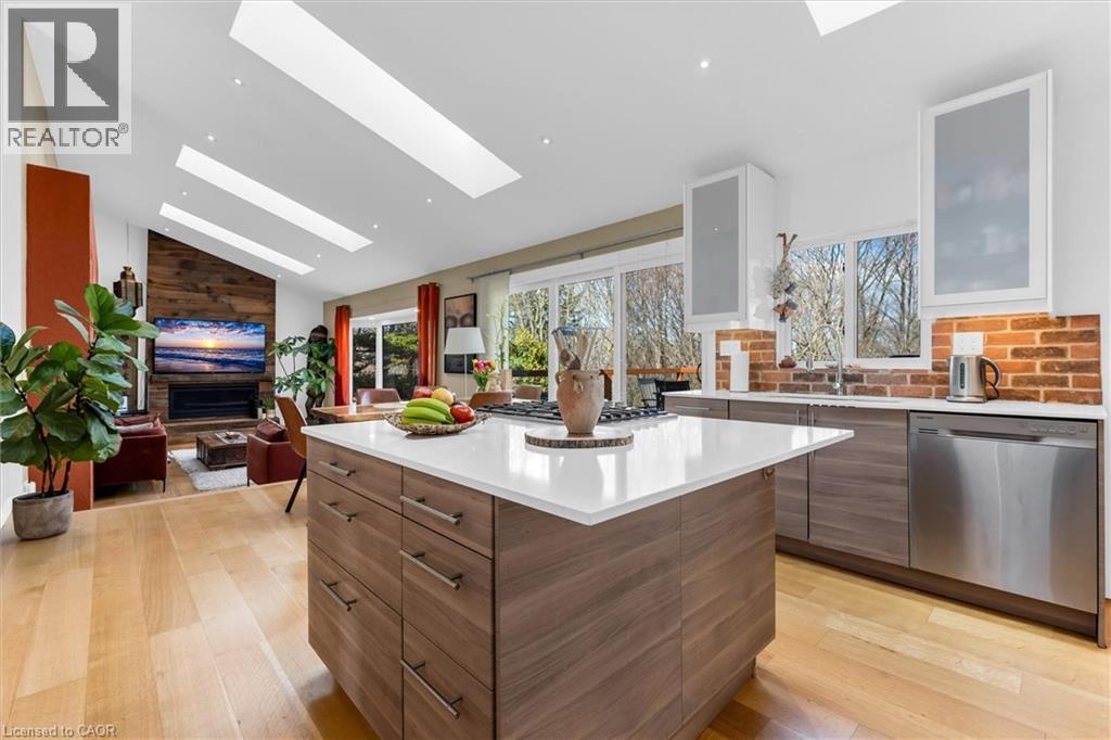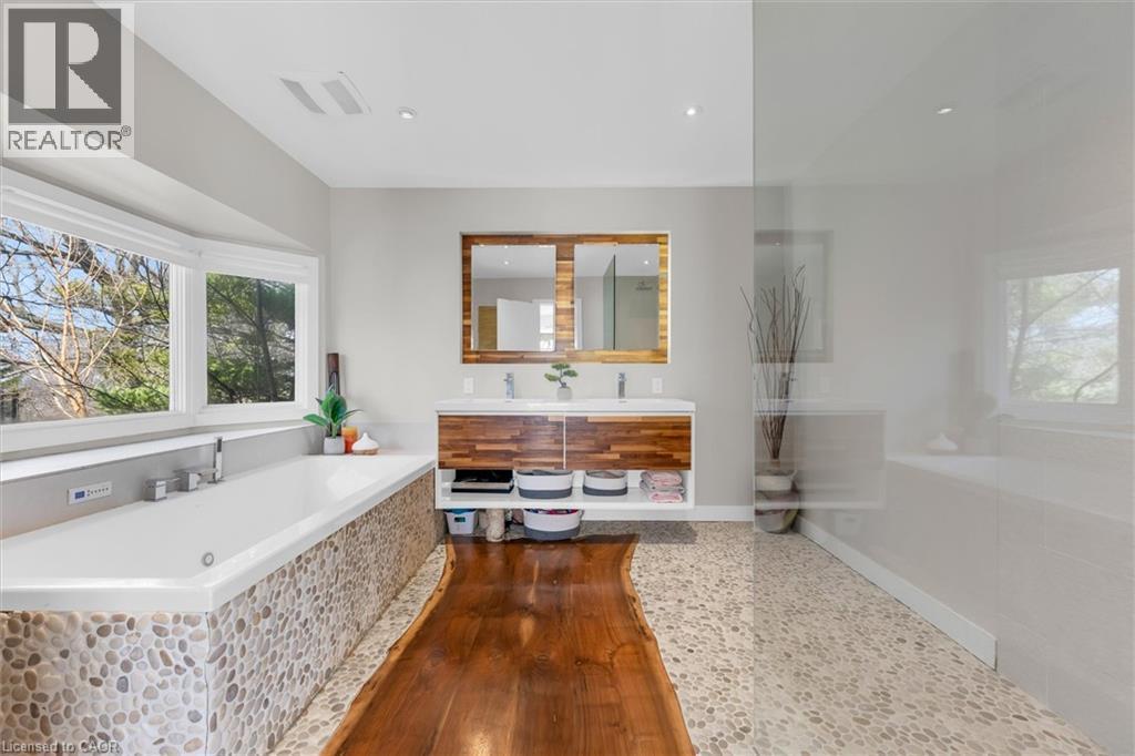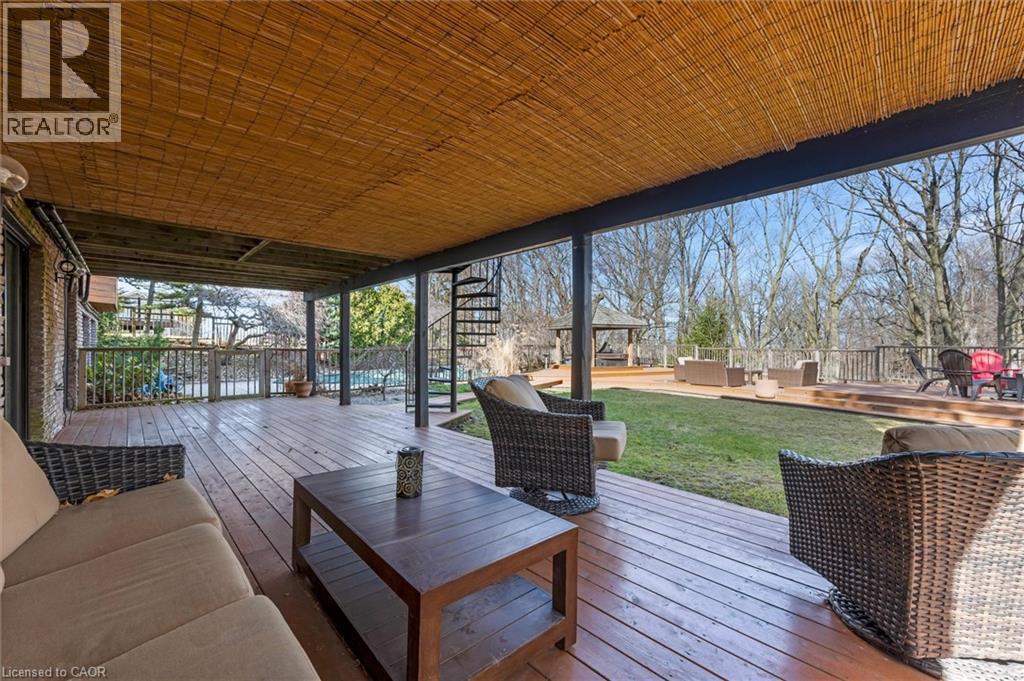 Rare opportunity to own a substantially upgraded RAVINE-BACKING BUNGALOW in Stoney Creek’s sought-after PLATEAU neighbourhood. Offering approximately 3,500 SQ FT OF FINISHED LIVING SPACE, this home has seen over $500,000 IN UPGRADES and features a custom kitchen, renovated bathrooms, finished on-site WHITE OAK HARDWOOD, SKYLIGHTS, GAS FIREPLACE, and a beautifully RE-FINISHED BASEMENT. The WALK-OUT LOWER LEVEL extends the living space and opens to a private backyard retreat with an IN-GROUND POOL, HOT TUB, SHED, and an impressive approx. 2,000 SQ FT CEDAR DECK, ideal for entertaining or relaxing against a serene ravine backdrop. Major updates include ROOF, HVAC, 200-AMP ELECTRICAL, plumbing, drywall, and framing, offering real value beyond the finishes. A rare turnkey bungalow in one of Stoney Creek’s most desirable family neighbourhoods. (id:4555)