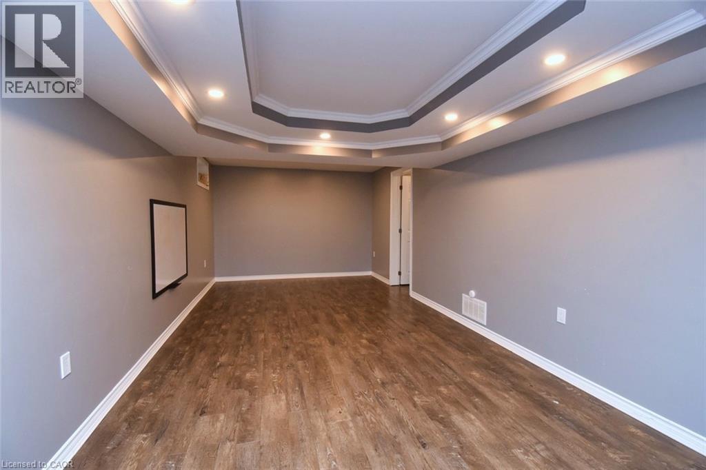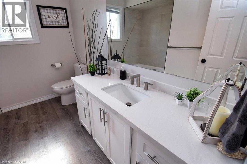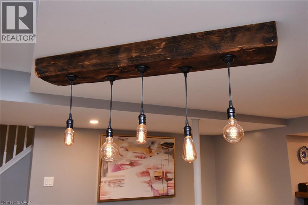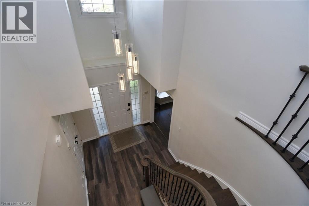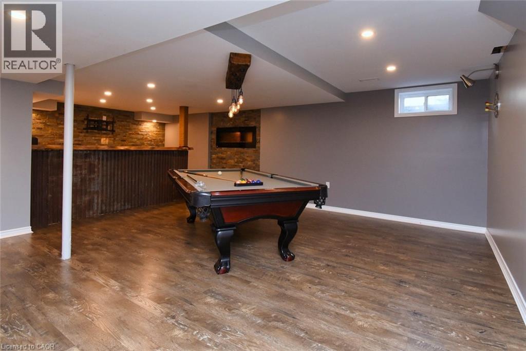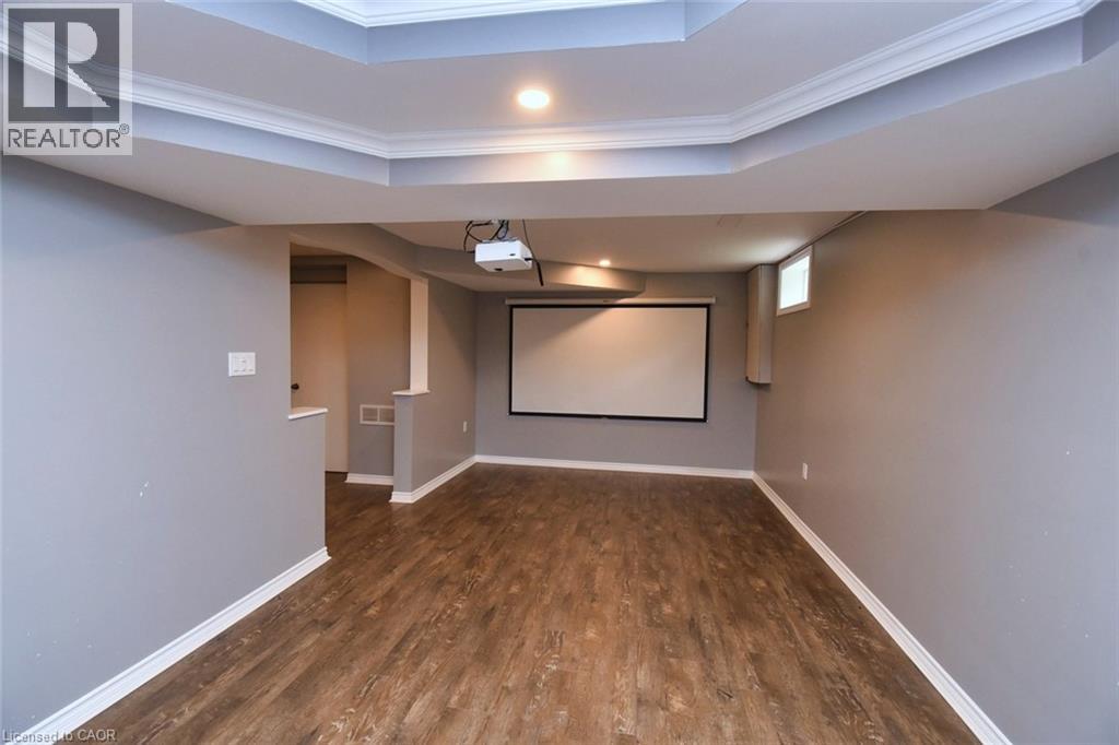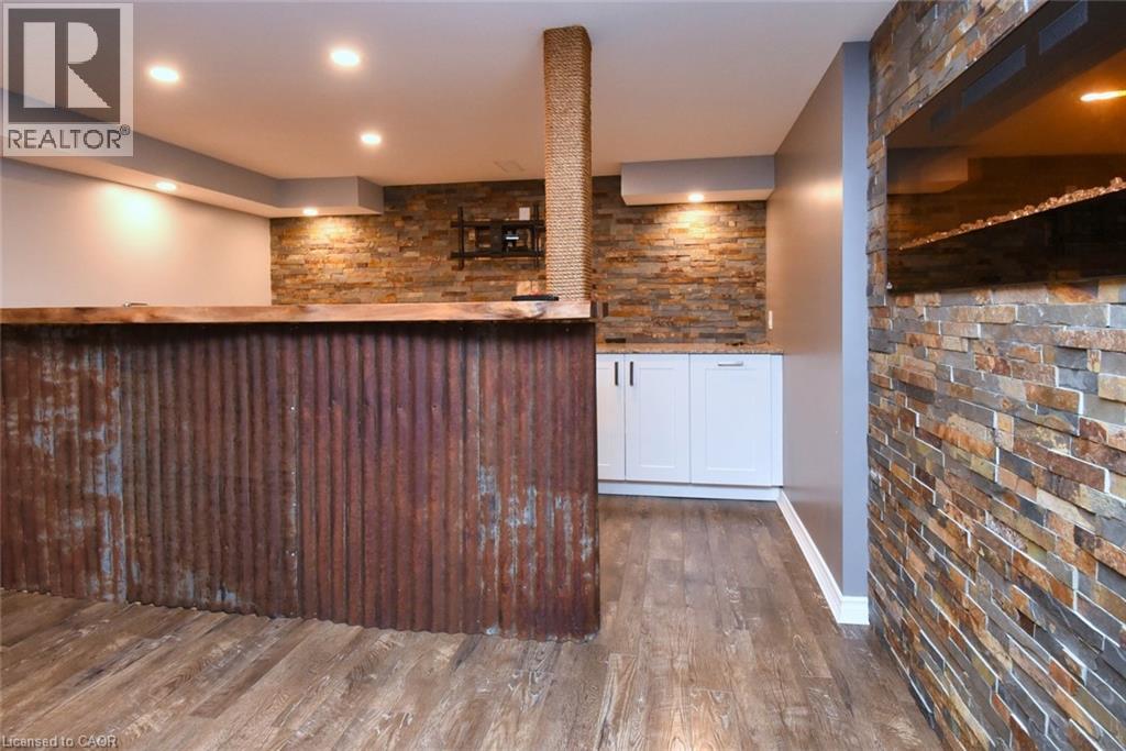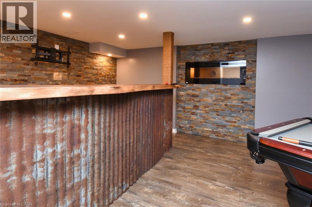 This beautiful 2 storey, 3.5 bathroom sits on pie shape lot in Prime Stoney Creek location. (36.52 x 172) 120 across in the back. Loads of features includes to brand new renovated upstairs bath & ensuite with his/hers sink with quartz counter tops, new flooring, paint, lighting, shower tile, facets. Hardwood floors & vinyl floors through-out (carpet free) beautiful staircase with iron spindles. Large sunken family room with gas fireplace. Bright large Eat-in Kitchen with stainless appliances. Totally finished lower level with vinyl flooring, pot lights, 3 piece bathroom, electric fireplace, wet bar and home theatre screen and projector. Beautiful modern kitchen with quartz counter tops. Heated garage. Large private pie shaped backyard to entertain your family & friends. Minutes to highway Toronto & Niagara, Costco and Lake. A must see, turn key move in condition. (id:4555)