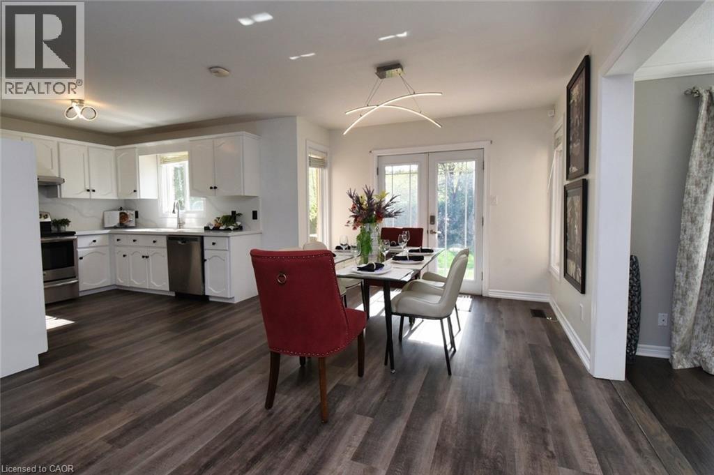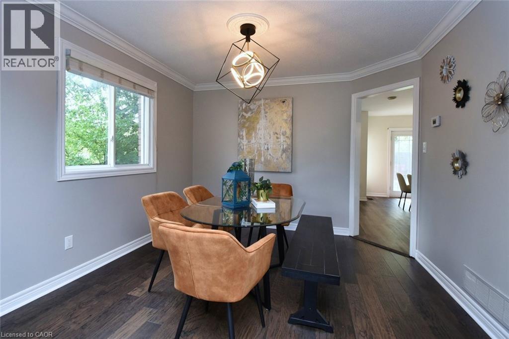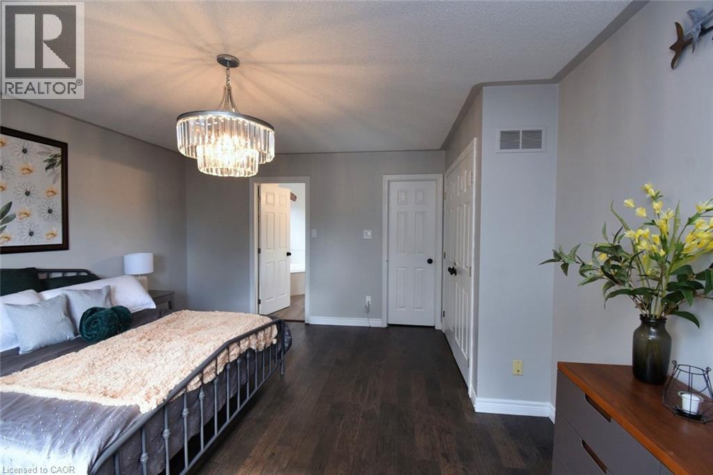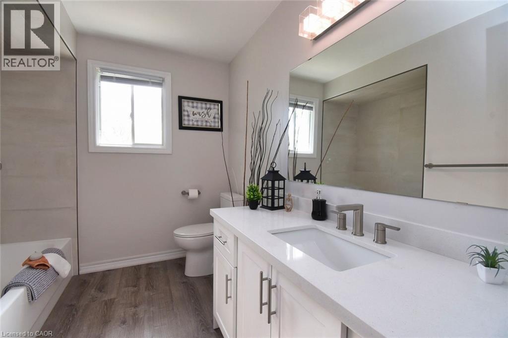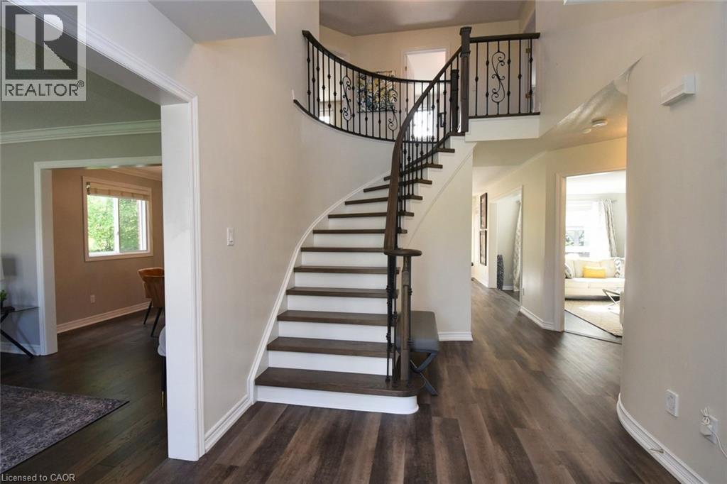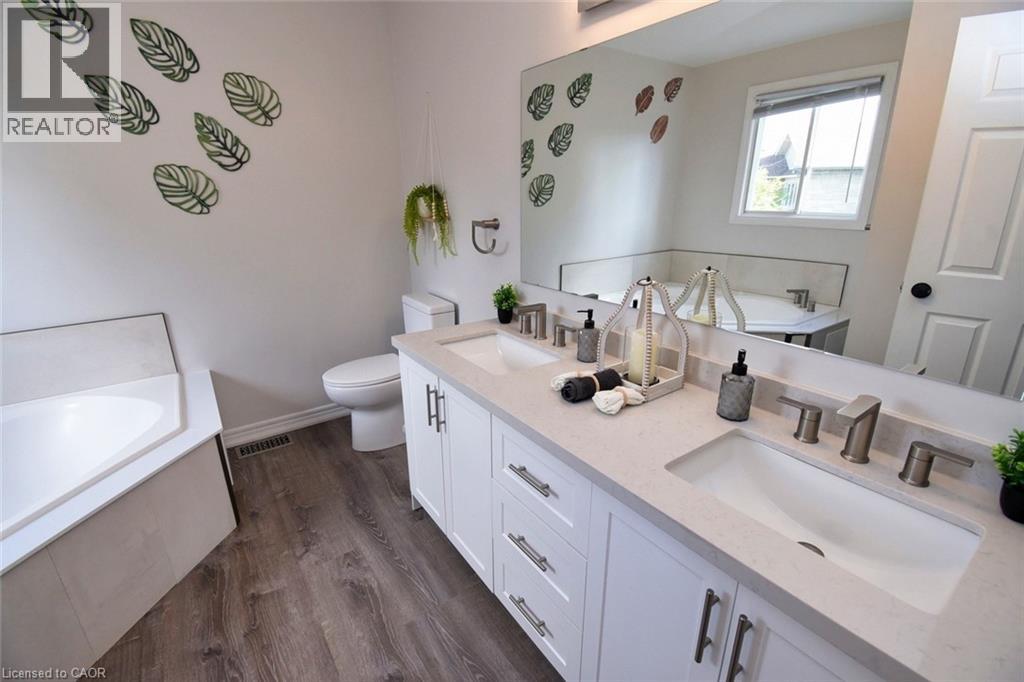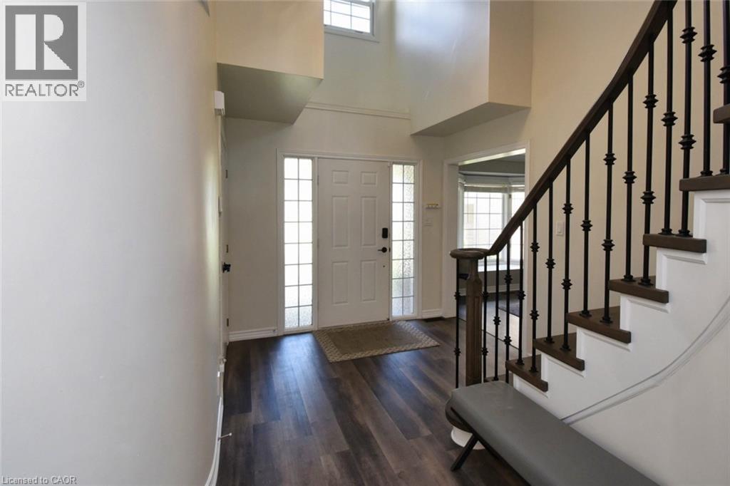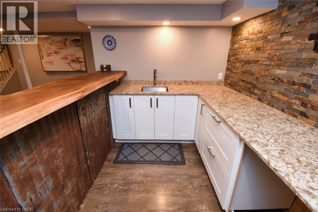 This beautiful 2 storey, 3.5 bathroom sits on pie shape lot in Prime Stoney Creek location. (36.52 x 172) 120 across in the back. Loads of features includes to brand new renovated upstairs bath & ensuite with his/hers sink with quartz counter tops, new flooring, paint, lighting, shower tile, facets. Hardwood floors & vinyl floors through-out (carpet free) beautiful staircase with iron spindles. Large sunken family room with gas fireplace. Bright large Eat-in Kitchen with stainless appliances. Totally finished lower level with vinyl flooring, pot lights, 3 piece bathroom, electric fireplace, wet bar and home theatre screen and projector. Beautiful modern kitchen with quartz counter tops. Heated garage. Large private pie shaped backyard to entertain your family & friends. Minutes to highway Toronto & Niagara, Costco and Lake. A must see, turn key move in condition. (id:4555)