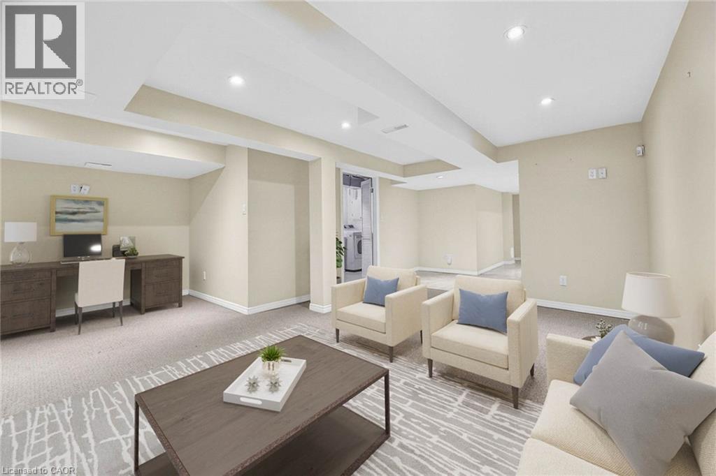 ELEGANT 3 BEDROOM 4 BATH TOWNHOME in one of stoney creek's most desirable neighborhoods! Nestled at the end of a quiet cul-de-sac and backing onto parkland. Beautifully finished top to bottom with pride of ownership evident throughout. Bright and spacious home with open concept design. Modern kitchen with Caesarstone countertops, stainless steel appliances including a dual oven/stove. Glass doors from kitchen lead to deck and private yard looking onto woodland - great space for relaxation and entertaining. Main floor family room with gas fireplace. Primary bedroom suite with ensuite bath. Fully finished lower level with 2nd fireplace, bath and storage. OTHER FEATURES INCLUDE: fridge, stove, dishwasher, washer & dryer, central air, 2 gas fireplaces. Perfectly situated with short stroll to parks, schools, conveniences. Only 5 minutes to QEW for commuters. This move-in ready home offers lifestyle & conveniences! Some photos virtually staged. (id:4555)