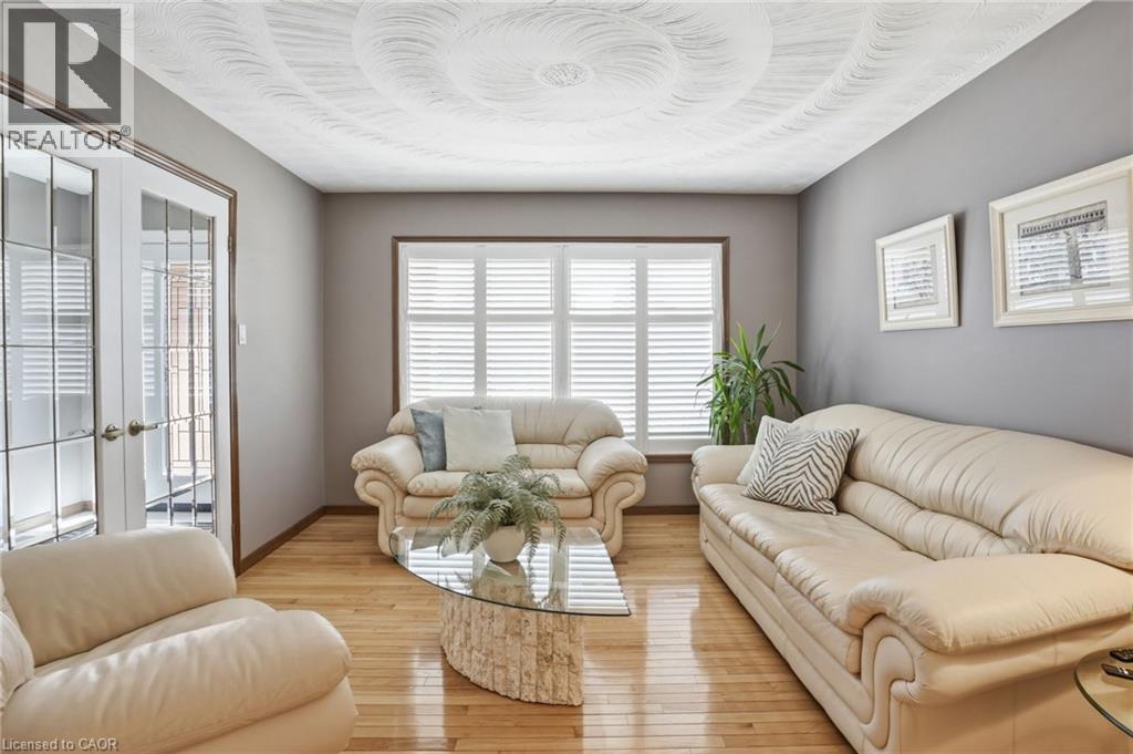 Welcome to 32 Highbury Drive, located in a family-friendly neighbourhood on Stoney Creek mountain! This meticulously maintained 1,985 sqft, 3-bedroom, 2-bathroom backsplit home has been lovingly cared for by the original owners with a layout that provides exceptional space and functionality for the whole family. Enjoy great curb appeal with a welcoming covered front porch surrounded by a beautiful garden. Inside, you’ll find a bright and spacious layout featuring a private living room with French doors, a formal dining room, a well-appointed eat-in kitchen, a comfortable family room complete with a natural gas fireplace and sliding glass doors leading to the backyard, and a 4-piece bathroom which completes the main level. Upstairs features a generous primary bedroom along with 2 additional good-sized bedrooms and a 4-piece bathroom. The finished basement features a large rec room with a convenient second kitchen, laundry, plenty of storage space and a bonus cold room. Outside, enjoy your fully fenced backyard with an expansive deck, mature trees for added privacy, a raised garden bed, and a handy storage shed. There is plenty of parking in the 2-car attached garage and the 2-car double-wide driveway. Additional features include central vac, California shutters on the main and second floors, updated shingles (approx 2018) and furnace (approx 2018). Ideally located close to all amenities including schools, parks, shopping, restaurants and more, with easy highway access for commuters. This is a fantastic opportunity to own a well-cared-for home in a sought-after neighbourhood! (id:4555)