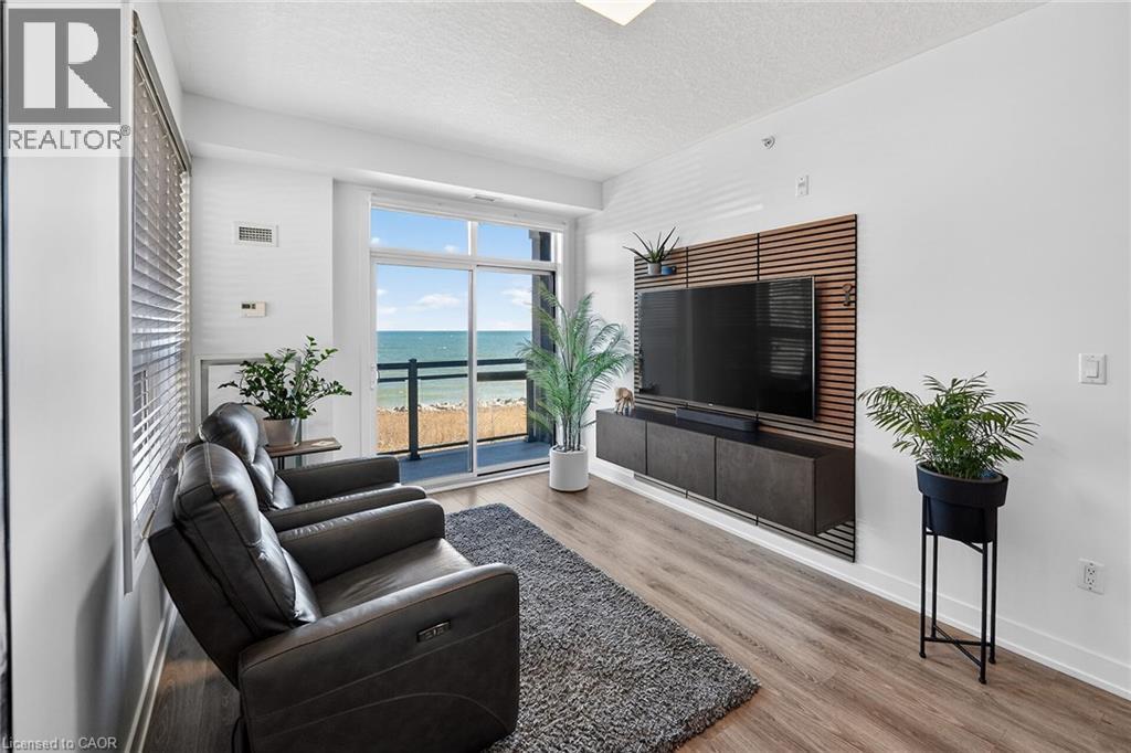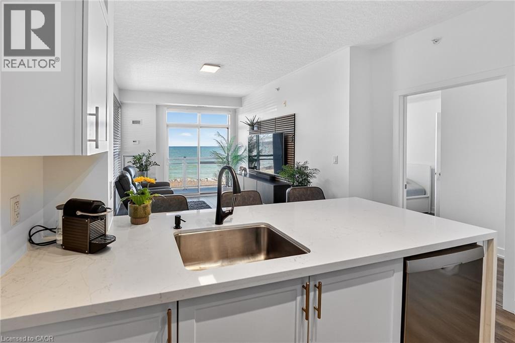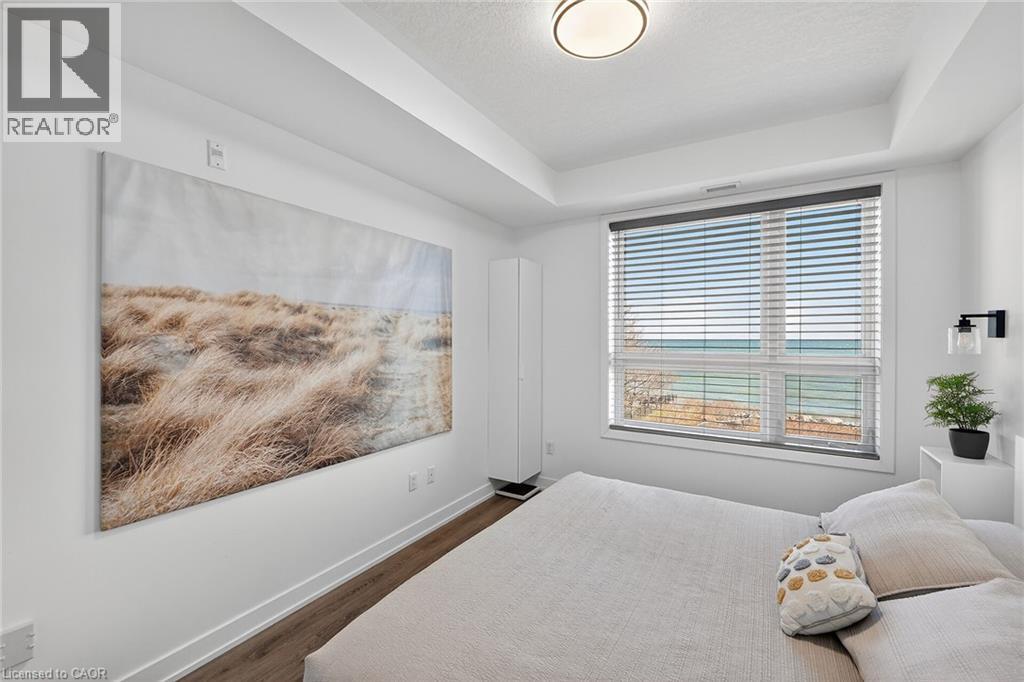 Stunning two-bedroom corner unit boasting unobstructed lake views and stylish, contemporary design and décor. Highlights of this impeccably presented home include private balcony, open concept layout, upgraded Quartz counters, upgraded kitchen backsplash, slatted wall panelling, kitchen island breakfast bar, stainless steel appliances and two exclusive underground parking spaces. Enjoy spacious front entranceway, ample windows, abundant natural light, picturesque sunsets and panoramic year-round Lake Ontario views. Building amenities include elegant lobby, welcoming party room, convenient fitness area, large bicycle storage room and roof top patio with scenic Niagara Escarpment and waterfront views. Perfectly located close to the lake, highway, walking trails and shopping with easy access to Hamilton, Burlington and the Niagara area. (id:4555)