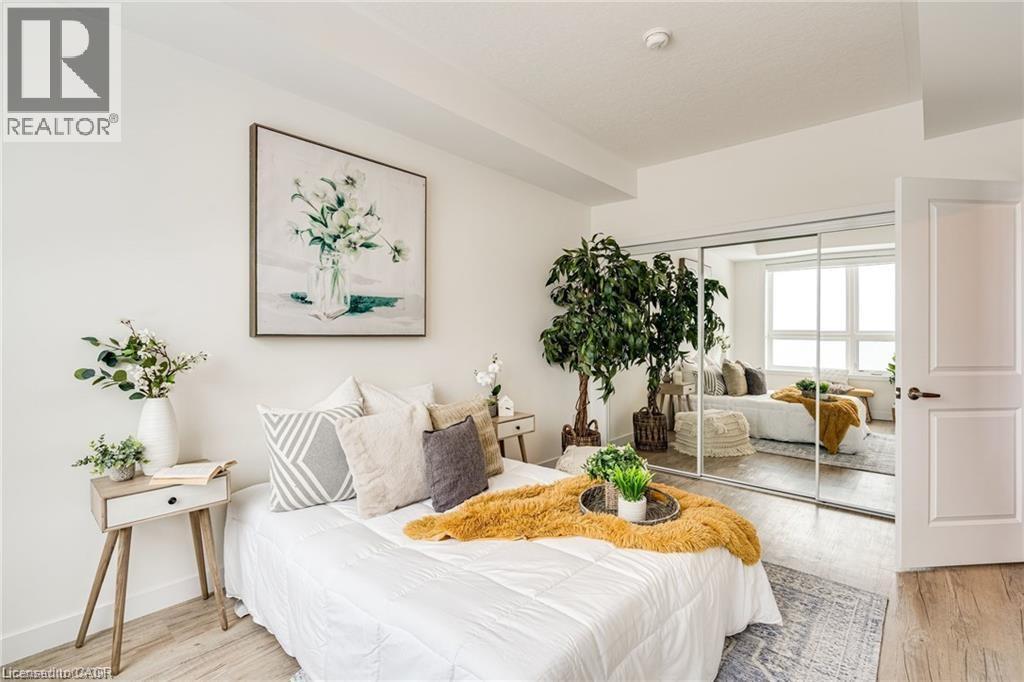 Live lakeside and be inspired by direct water views in this second floor in the sought after Waterfront Trails Condo. Modern, spacious and bright one bedroom + den unit with luxury vinyl flooring, 9 foot ceilings and ample natural light. The u-shaped kitchen offers generous counter and cupboard space. The master bedroom wall to wall mirrored closet reflects the green and blue of nature outside your window. Sliding patio doors welcome you to your balcony retreat. Ultimate convenience with ensuite laundry and proximity to highways. Paved Waterfront Trail and beach are steps away. Amenities include: roof top terrace, exercise room, bike room and party room ($). Geothermal heating and cooling and water are included. Tenant to pay hydro (approximately $40 - $50 per month). One underground parking spot and storage locker included. Rental Application, Full Credit Report and Proof of Employment are required. Available immediately. Don't wait, call today to view. (id:4555)
