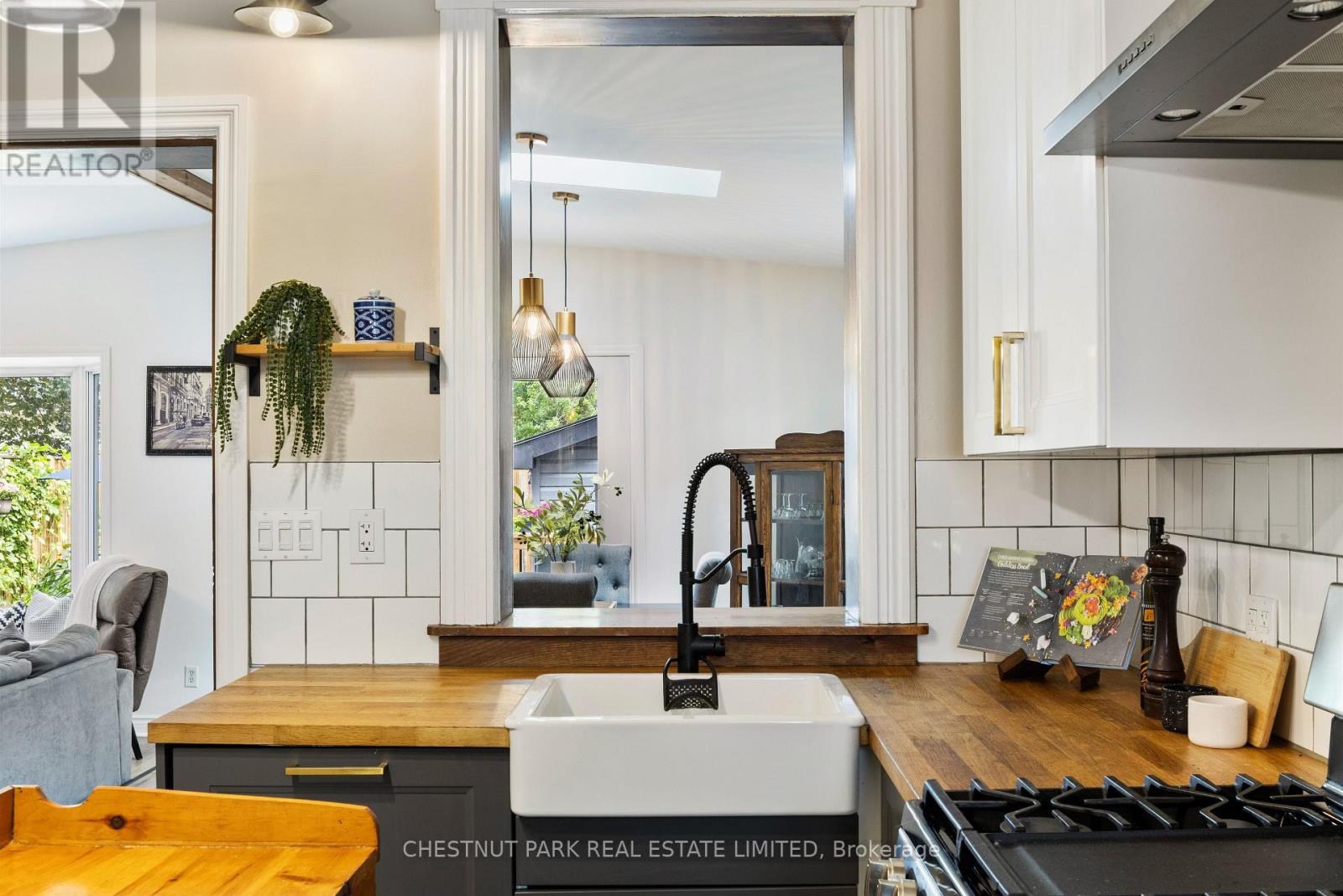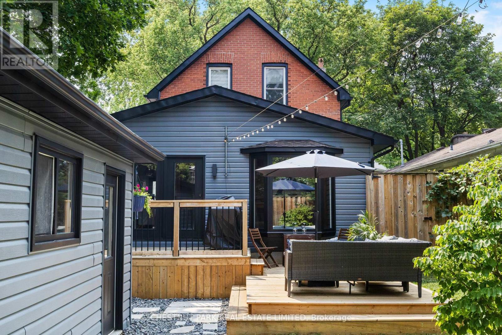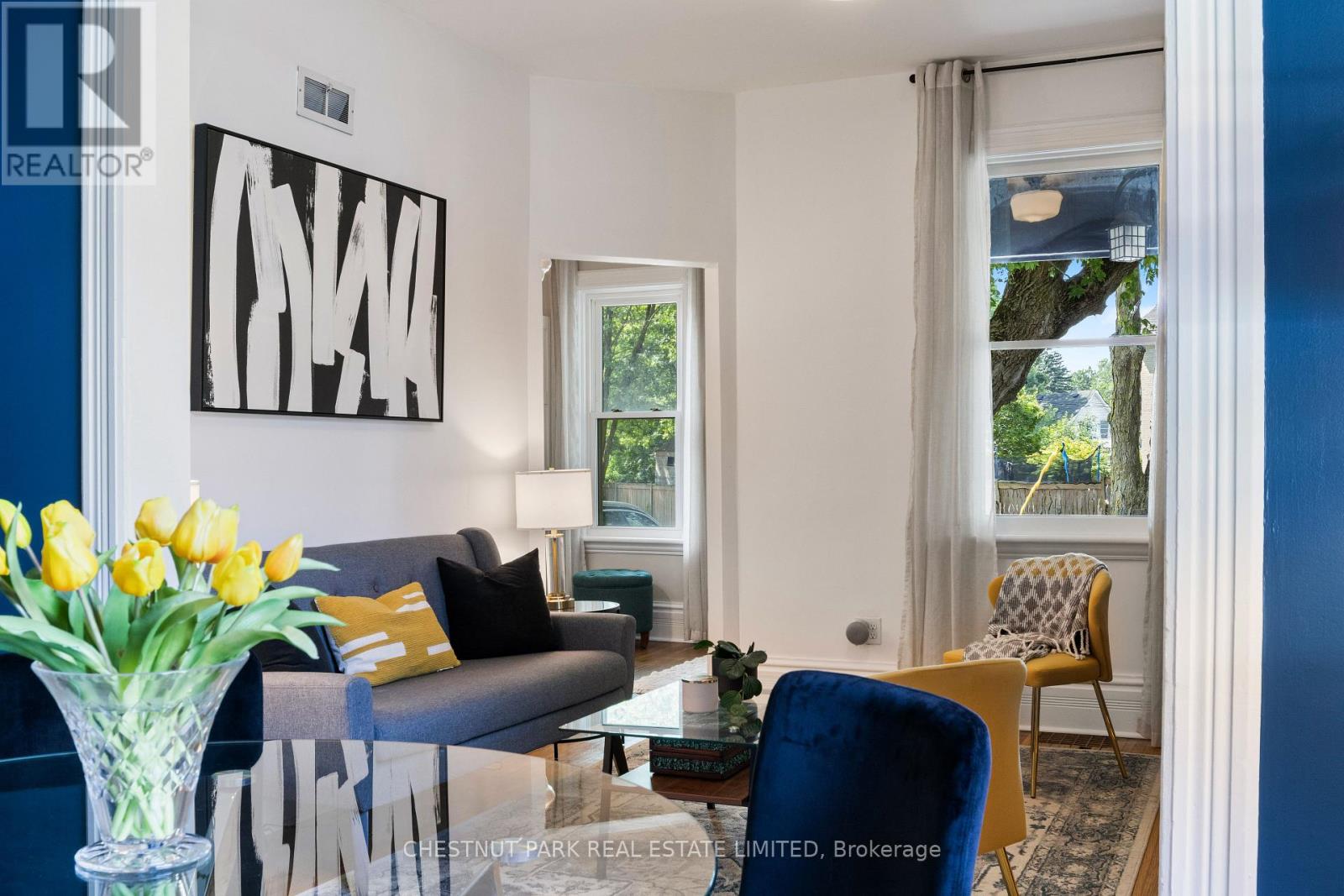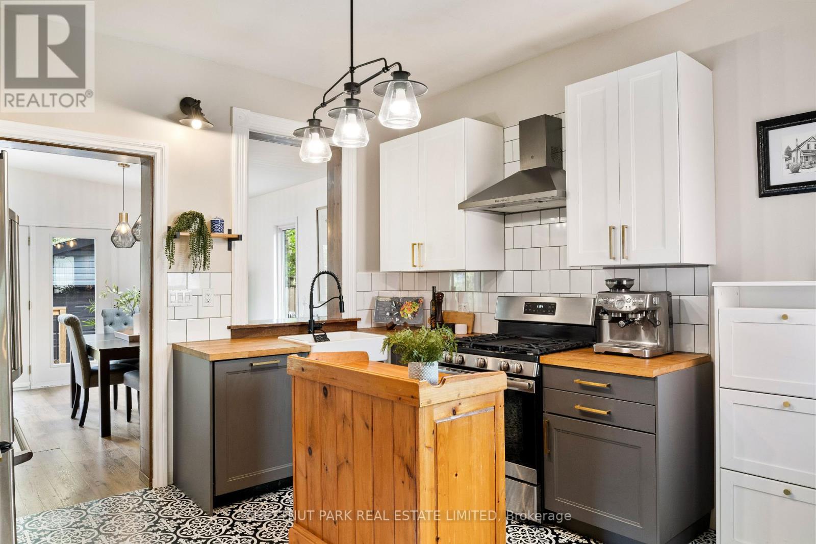 Welcome to 13 Princess Street, where Stratford's heritage and modern elegance meet in perfect harmony. Built in 1900 and lovingly restored, this red-brick residence is nestled on a quiet, tree-lined street in the sought-after North Shore-just moments from the Avon River, the Festival Theatre, and the city's vibrant cafes and boutiques. A gracious covered porch sets the tone for what's inside-inviting, graceful, and timeless. Beyond the front door, soaring 9-foot ceilings and warm hardwood floors create a sense of openness and flow throughout the main level. The living and breakfast rooms offer intimate spaces for entertaining or quiet mornings, complemented by a convenient two-piece powder room for guests. Upstairs, three thoughtfully scaled bedrooms and a four-piece bath offer comfort and flexibility, ideal for a couple seeking a guest room and a dedicated workspace. At the heart of the home, the updated kitchen blends modern efficiency with classic design, leading seamlessly to a spectacular 300 sq. ft. rear addition-a vaulted dining and family area filled with natural light from skylights and French doors. Step outside to a private, fully-fenced backyard surrounded by mature trees-an outdoor retreat for summer dinners and quiet reflection. The restored detached garage provides heated workshop space for creative pursuits, fitness, or year-round hobbies, while a two-car driveway and side entrance enhance convenience. This is more than a home-it's a way of living. Morning walks along the river, evenings at the theatre, and weekends spent exploring Stratford's celebrated culinary scene-all from the comfort of your own historic sanctuary. (id:4555)