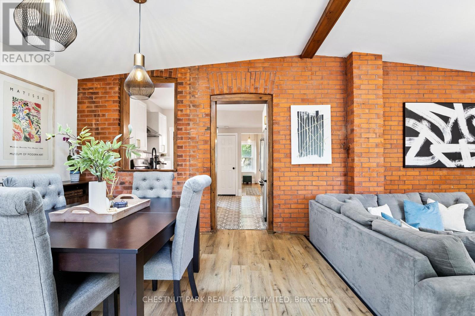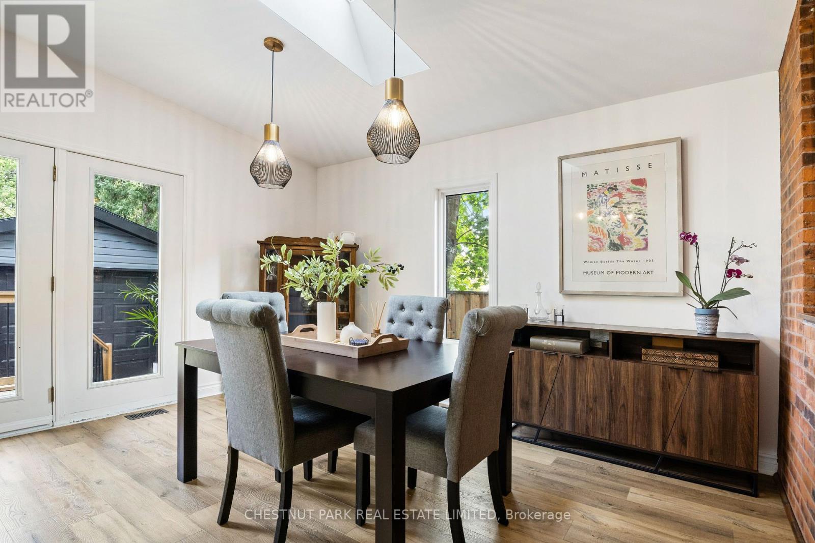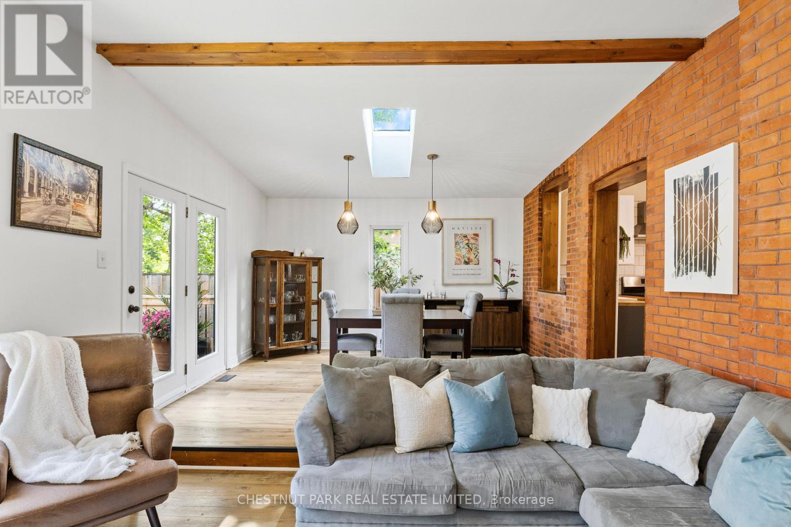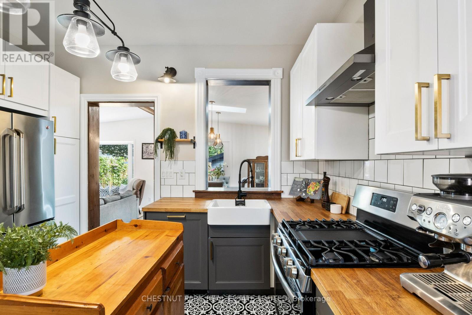 Welcome to 13 Princess Street, where Stratford's heritage and modern elegance meet in perfect harmony. Built in 1900 and lovingly restored, this red-brick residence is nestled on a quiet, tree-lined street in the sought-after North Shore-just moments from the Avon River, the Festival Theatre, and the city's vibrant cafes and boutiques. A gracious covered porch sets the tone for what's inside-inviting, graceful, and timeless. Beyond the front door, soaring 9-foot ceilings and warm hardwood floors create a sense of openness and flow throughout the main level. The living and breakfast rooms offer intimate spaces for entertaining or quiet mornings, complemented by a convenient two-piece powder room for guests. Upstairs, three thoughtfully scaled bedrooms and a four-piece bath offer comfort and flexibility, ideal for a couple seeking a guest room and a dedicated workspace. At the heart of the home, the updated kitchen blends modern efficiency with classic design, leading seamlessly to a spectacular 300 sq. ft. rear addition-a vaulted dining and family area filled with natural light from skylights and French doors. Step outside to a private, fully-fenced backyard surrounded by mature trees-an outdoor retreat for summer dinners and quiet reflection. The restored detached garage provides heated workshop space for creative pursuits, fitness, or year-round hobbies, while a two-car driveway and side entrance enhance convenience. This is more than a home-it's a way of living. Morning walks along the river, evenings at the theatre, and weekends spent exploring Stratford's celebrated culinary scene-all from the comfort of your own historic sanctuary. (id:4555)