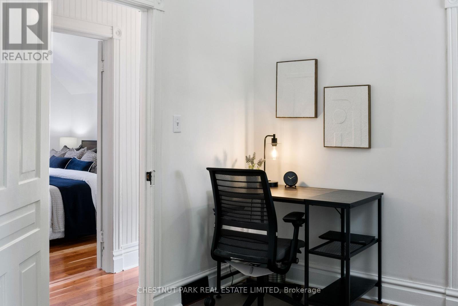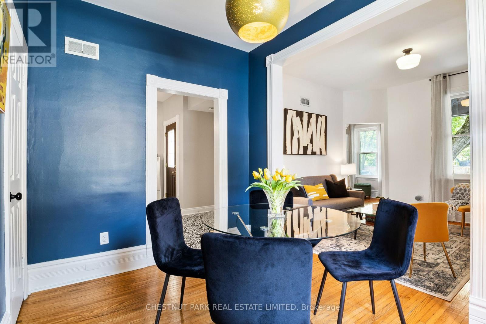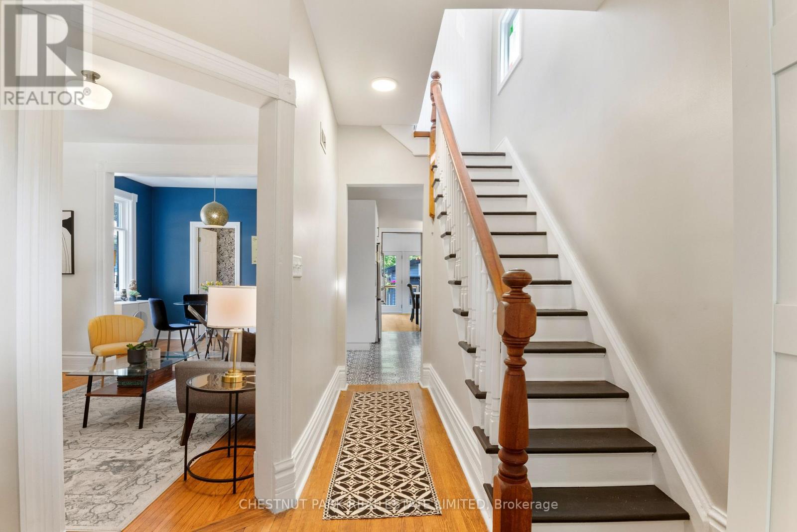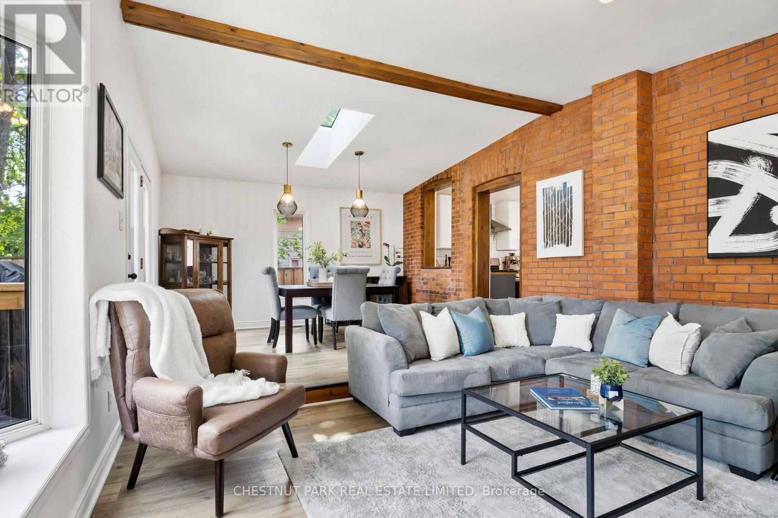 Welcome to 13 Princess Street, where Stratford's heritage and modern elegance meet in perfect harmony. Built in 1900 and lovingly restored, this red-brick residence is nestled on a quiet, tree-lined street in the sought-after North Shore-just moments from the Avon River, the Festival Theatre, and the city's vibrant cafes and boutiques. A gracious covered porch sets the tone for what's inside-inviting, graceful, and timeless. Beyond the front door, soaring 9-foot ceilings and warm hardwood floors create a sense of openness and flow throughout the main level. The living and breakfast rooms offer intimate spaces for entertaining or quiet mornings, complemented by a convenient two-piece powder room for guests. Upstairs, three thoughtfully scaled bedrooms and a four-piece bath offer comfort and flexibility, ideal for a couple seeking a guest room and a dedicated workspace. At the heart of the home, the updated kitchen blends modern efficiency with classic design, leading seamlessly to a spectacular 300 sq. ft. rear addition-a vaulted dining and family area filled with natural light from skylights and French doors. Step outside to a private, fully-fenced backyard surrounded by mature trees-an outdoor retreat for summer dinners and quiet reflection. The restored detached garage provides heated workshop space for creative pursuits, fitness, or year-round hobbies, while a two-car driveway and side entrance enhance convenience. This is more than a home-it's a way of living. Morning walks along the river, evenings at the theatre, and weekends spent exploring Stratford's celebrated culinary scene-all from the comfort of your own historic sanctuary. (id:4555)