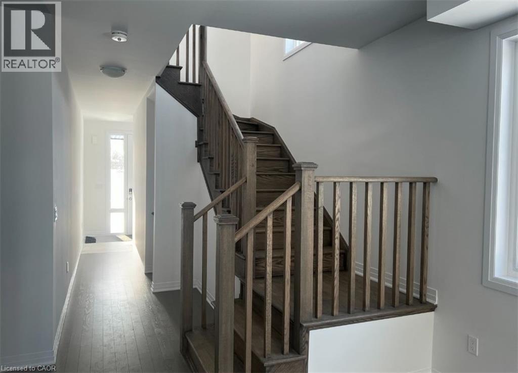 BRAND-NEW END-UNIT TOWNHOME FOR LEASE IN STRATFORD. Welcome to effortless modern living in this never-lived-in, 2-storey end-unit townhome, ideally located just behind the mall in Stratford. Offering extra windows, added privacy, and a bright, airy feel throughout. The open-concept main floor features 9-foot ceilings, upgraded flooring, and a sleek kitchen finished with quartz countertops, a breakfast bar, and a walkout – creating a beautiful space for both everyday living and entertaining. Upstairs, enjoy 8-foot ceilings, a thoughtfully designed layout, and the convenience of upper-level laundry. The oversized primary bedroom is a true retreat, complete with a walk-in closet and a stunning ensuite featuring a soaker tub—your own private escape at the end of the day. As an end unit, this home benefits from additional natural light and a more spacious feel throughout. Heat/gas, hydro, water, and hot water heater are to be paid by the tenant(s). Good credit is required, and a full application must be submitted. Perfectly situated close to shopping, parks, schools, restaurants, and everyday amenities, this home offers a lifestyle of ease in a growing Stratford community. Available immediately! Photos are virtually staged* (id:4555)