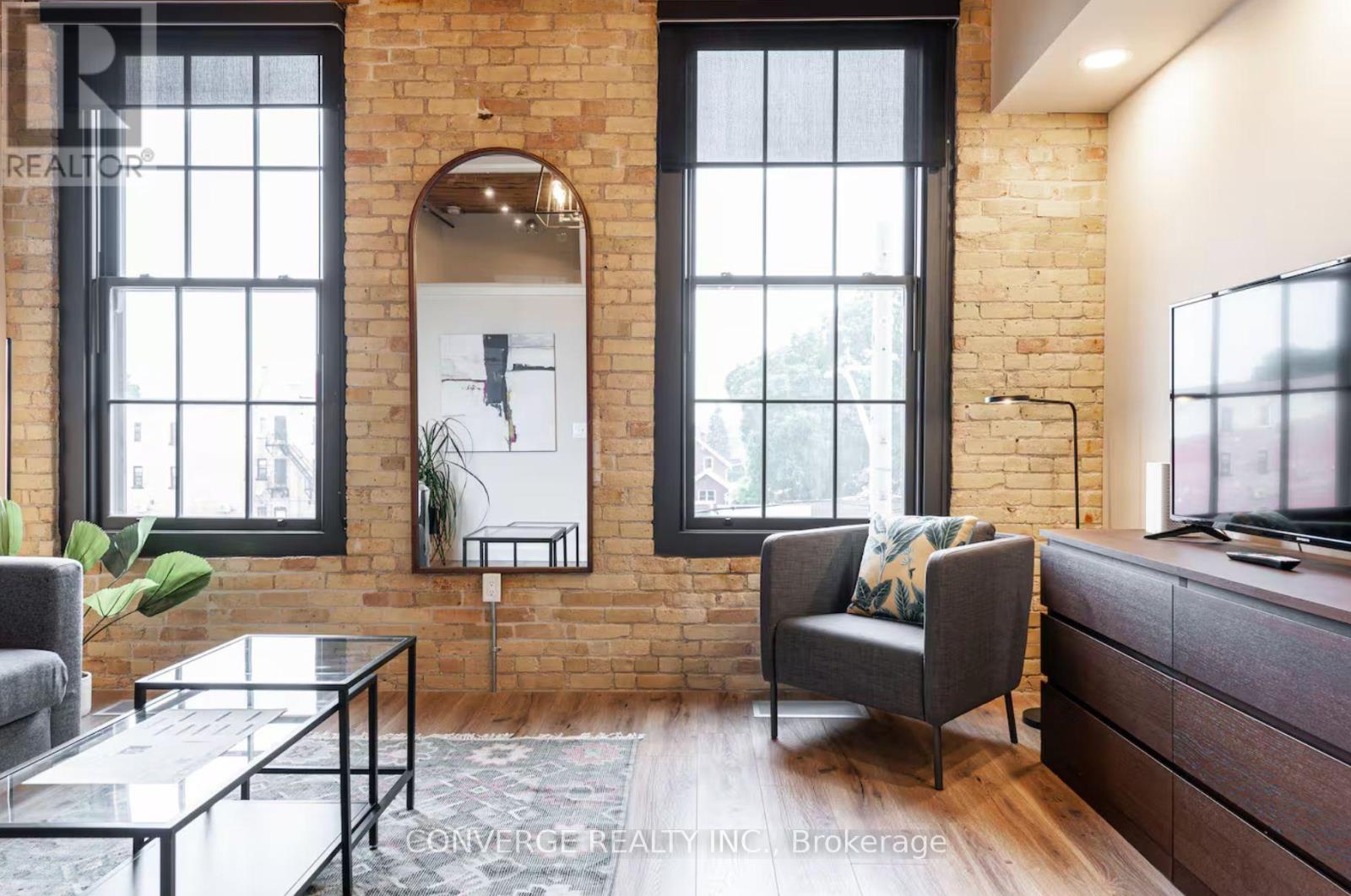 The property at 245 Downie Street, Unit 206, Stratford, Ontario N5A 1X5 is a charming 1-bedroom, 1-bathroom condominium located within the historic Bradshaw Lofts building. This unique residence offers approximately 460 square feet of thoughtfully designed living space, featuring high ceilings, exposed brick and beam construction, and hardwood flooring that create a warm and character-rich atmosphere.Situated in the heart of Stratford, this property provides exceptional walkability to the city's vibrant downtown core. Residents can enjoy easy access to restaurants, cafés, boutique shopping, theatres, and cultural attractions, including the renowned Stratford Festival. Nearby parks, libraries, and arts centres further enhance the lifestyle appeal of this central location.Public transit is readily accessible, and major routes connect conveniently to surrounding communities. The area offers a blend of heritage charm and modern convenience, making it well suited for professionals, downsizers, or investors seeking short-term rental potential in a high-demand location.This well-positioned condominium combines historic character with urban accessibility, offering an ideal opportunity for those seeking a low-maintenance home in one of Stratford's most desirable and culturally rich neighbourhoods. (id:4555)