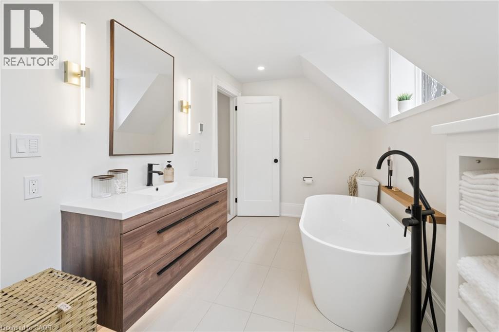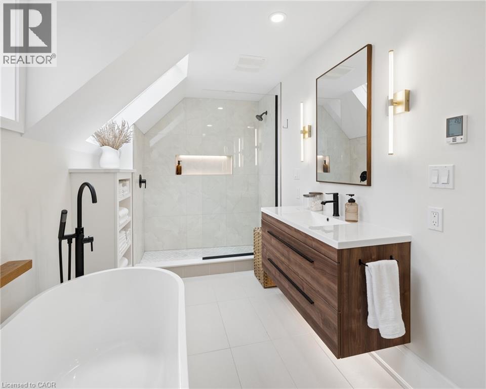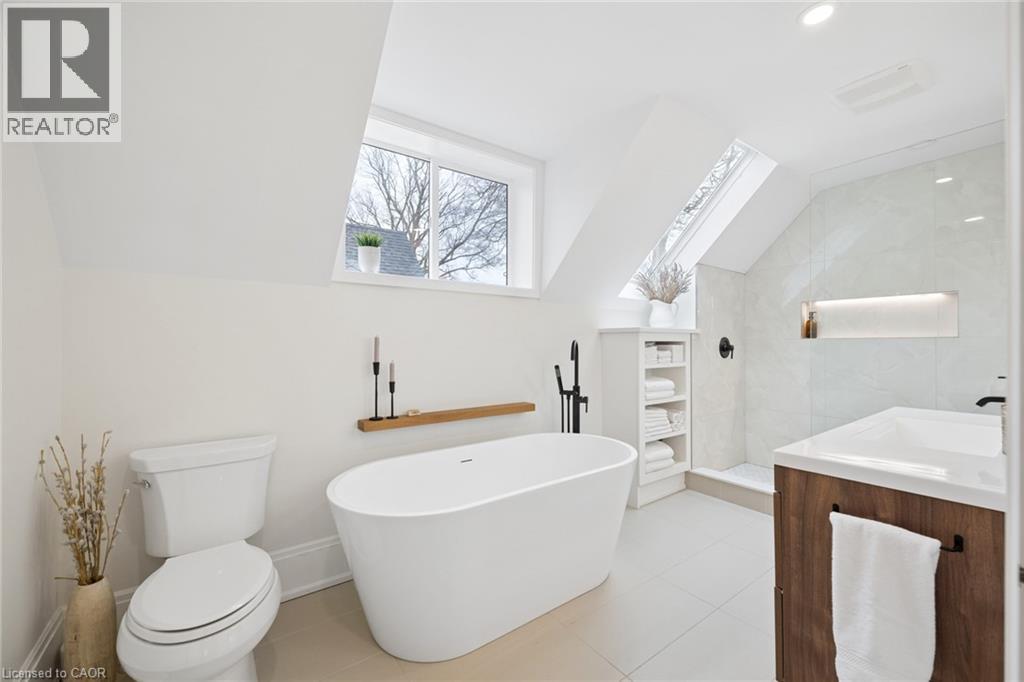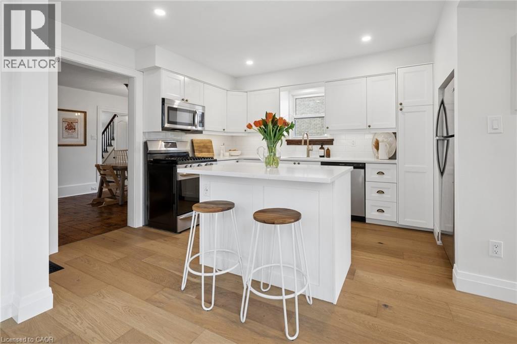 This yellow brick home has a calm, confident feel from the moment you walk in. The updates have been done over time with a clear point of view, keeping the original character while improving how the space comes together. The main floor flows naturally. The dining room is generous and can handle a full Christmas dinner, with built-ins and quartz countertop that ties into the kitchen. The kitchen was redone five years ago with clean cabinetry, tile backsplash, hardwood floors and warmer finishes like bronze hardware and wood accents that tie in with the original details. Toward the back of the home, there is a main floor laundry and powder room, tucked away and custom storage and coffee bar that keeps everything streamlined. It opens onto a newer deck and a fully fenced yard that extends the living space in the warmer months. The living room sits at the front of the home, with evening light coming in through the west-facing porch. It’s a comfortable space with French doors that give you the option to keep things open or create a more intimate setting. Upstairs, the bathroom stands out! A soaker tub, glass shower, heated floors, and soft lighting give it a calm, elevated and subtle luxury to the space. Skylights bring in natural light even on the most cloudy days. The primary bedroom is large, fits a king bed comfortably and includes dual closets so you’re not fighting for space. The second bedroom offers flexibility for guests, a home office or a little one. Outside, perennial gardens come back each year with minimal upkeep, rounding out a home that feels warm, elevated, and easy to settle into. (id:4555)