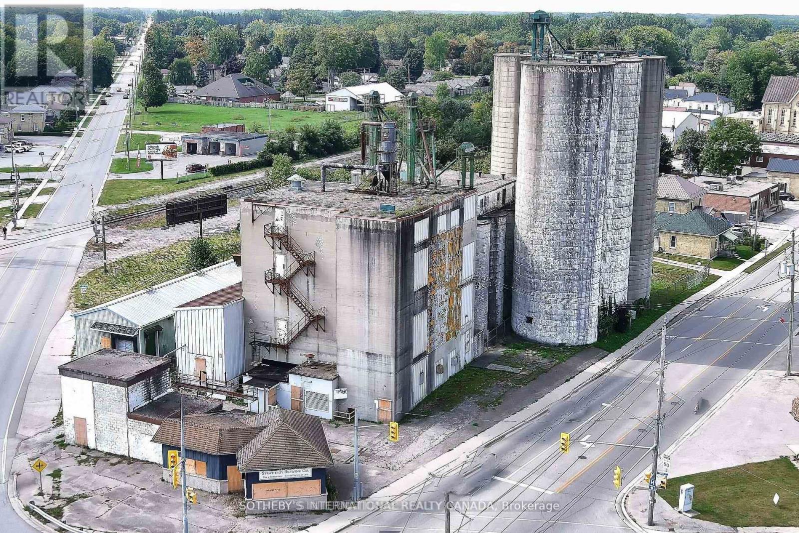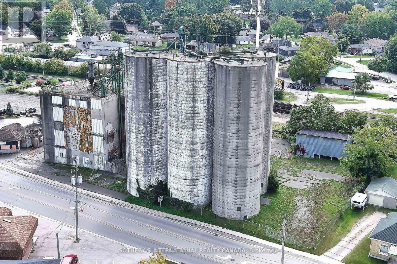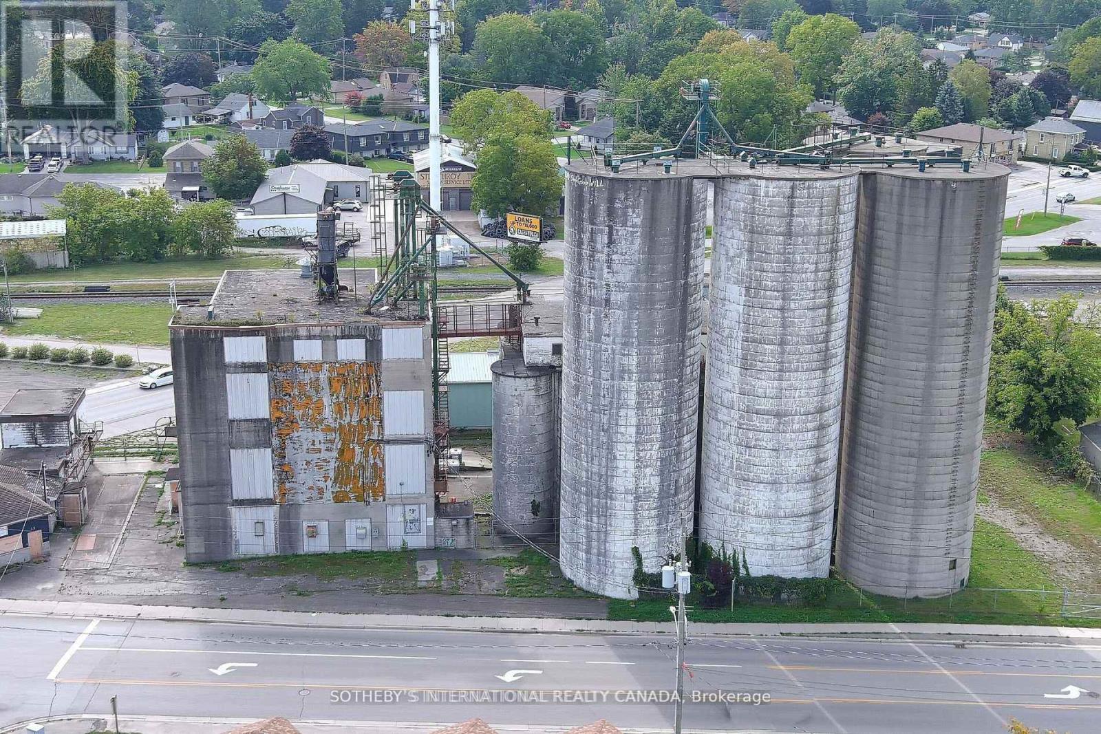 A unique opportunity in Downtown Strathroy, this 0.59-acre property with approximately 12,000 sq. ft. of production space offers excellent potential as a flour mill, grain mill, or brewery. The site includes a mill with a capacity of roughly 100 tons of flour per day, four silos (1,350 tons each), six transitional silos, and two large storage/warehouse buildings leased from CN Railway. The sale includes the real estate and existing flour mill equipment, with brewery equipment available for purchase separately, allowing buyers the flexibility to revive milling operations, expand into brewing or distilling, or adapt the facility to suit their business vision. (id:4555)