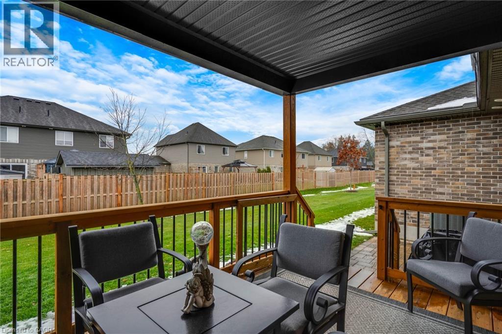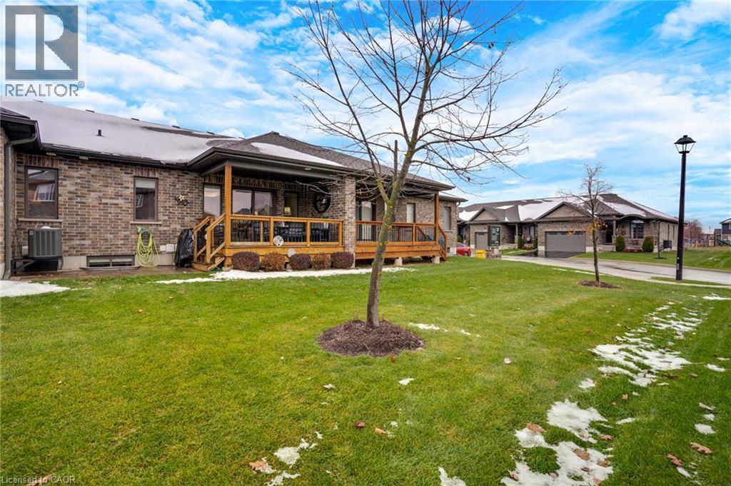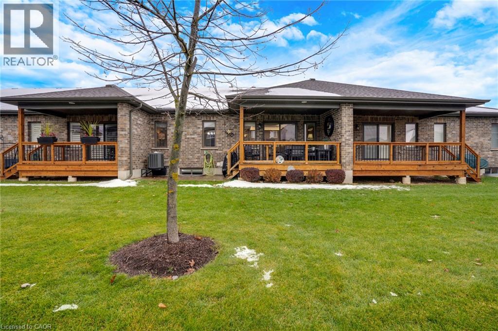 This welcoming 2-bedroom, 3-bathroom bungalow row house full of builder's upgrades and offers easy, comfortable living. Inside, big windows brighten the space, and the high ceilings with accent lighting and hardwood floors brings an open, airy feel to the kitchen and living room. The eat-in kitchen has stainless steel appliances and lots of cupboard space, while the living room features a sliding door that leads to a covered back deck and patio. The primary bedroom includes two closets and a modern 3-piece ensuite, and the second bedroom works well as a guest room or an office. A 4-piece main bath and main floor laundry make daily living simple and convenient. The basement is partially finished with a rec-room and a 3-piece bathroom. The large unfinished area you can use for storage or finish to suit your needs and there is a huge cold storage room under the front porch. Outside, there is a nice front porch and the backyard offers a covered deck, a patio, and a semi-private space that opens to a big shared green area. Located in Tavistock, you’ll enjoy the charm of small-town living with local shops, parks, and great community events close by. It’s only a short drive to Stratford for dining and theatre, and an easy commute to Kitchener-Waterloo, giving you the perfect mix of quiet country life with access to everything you need. (id:4555)