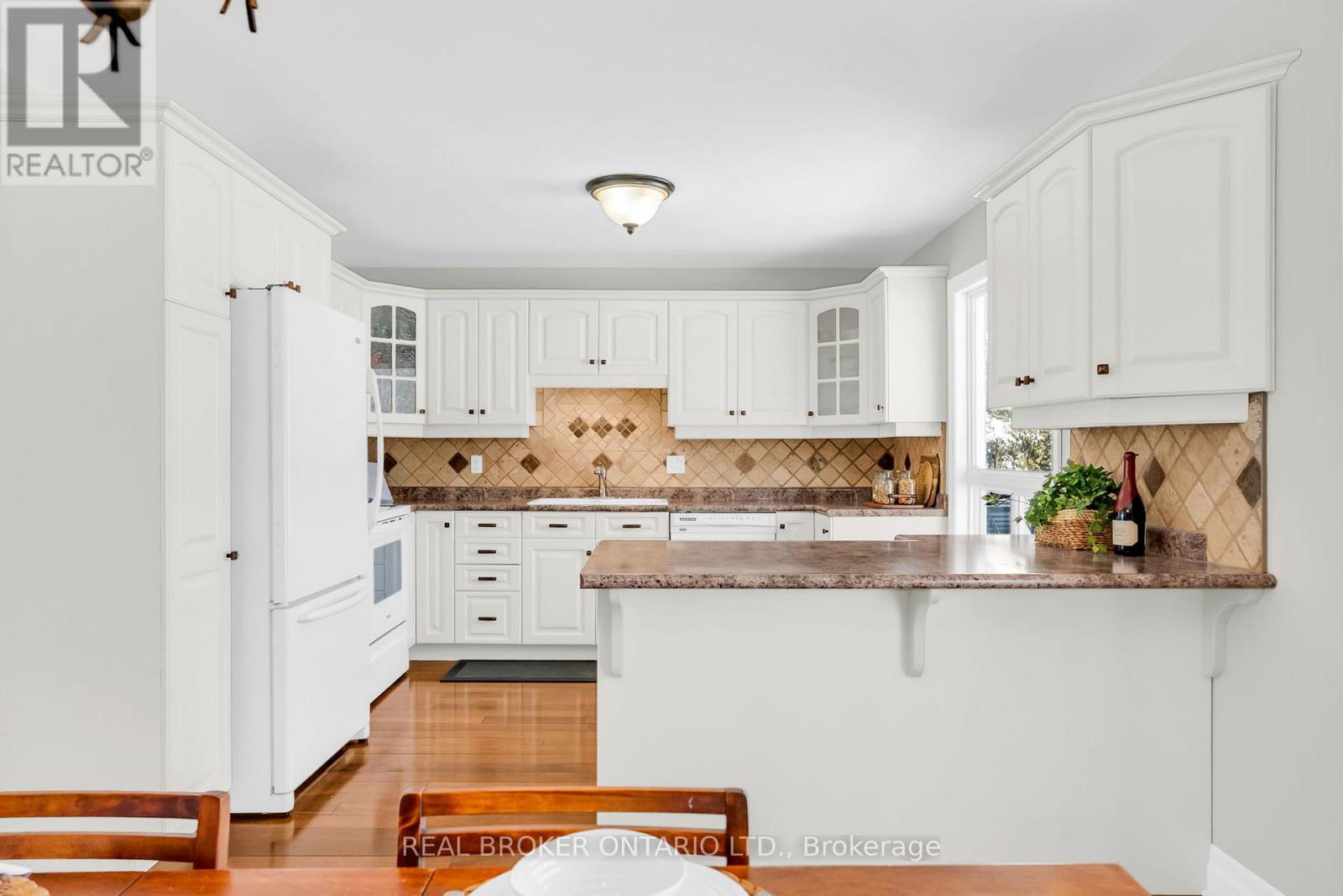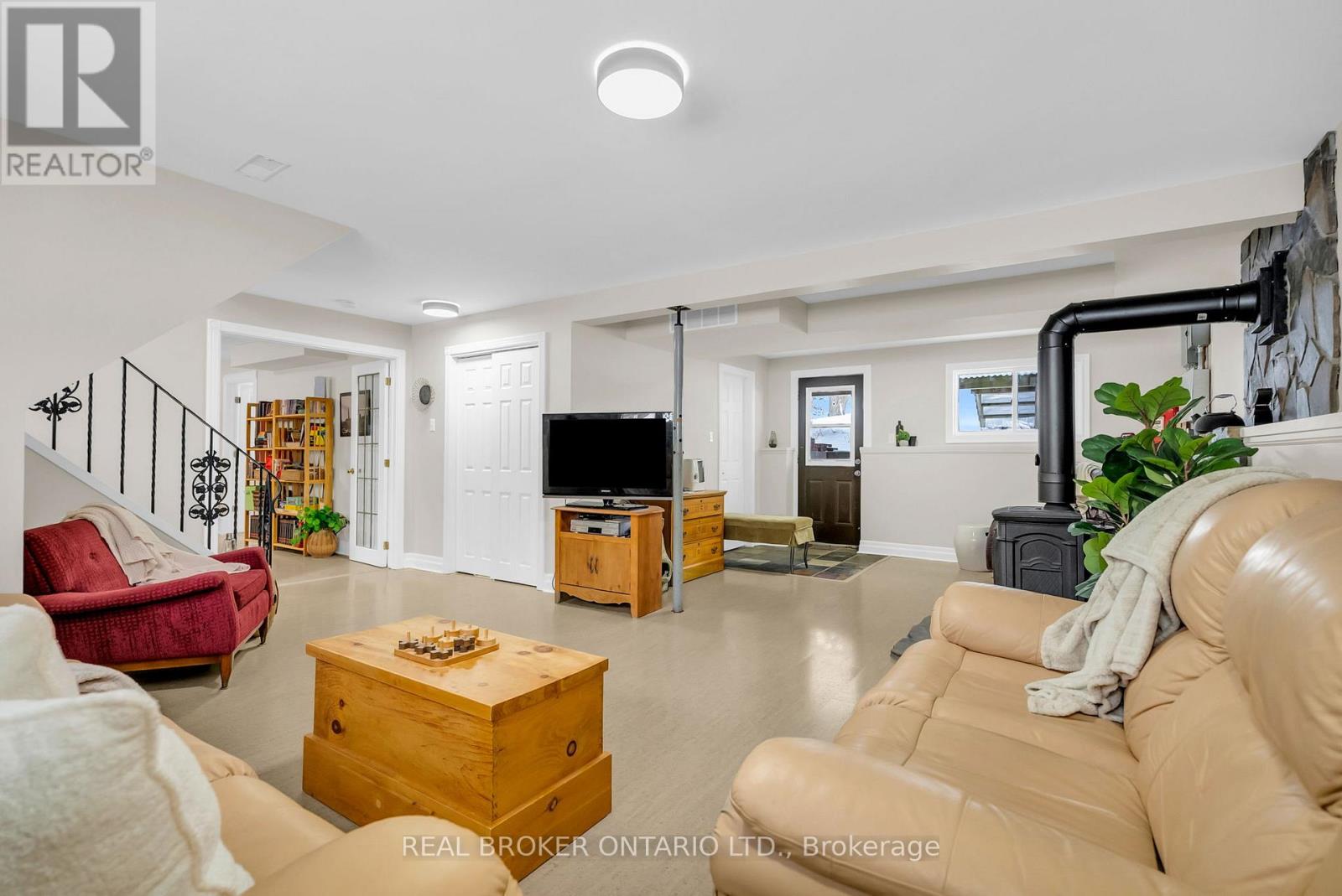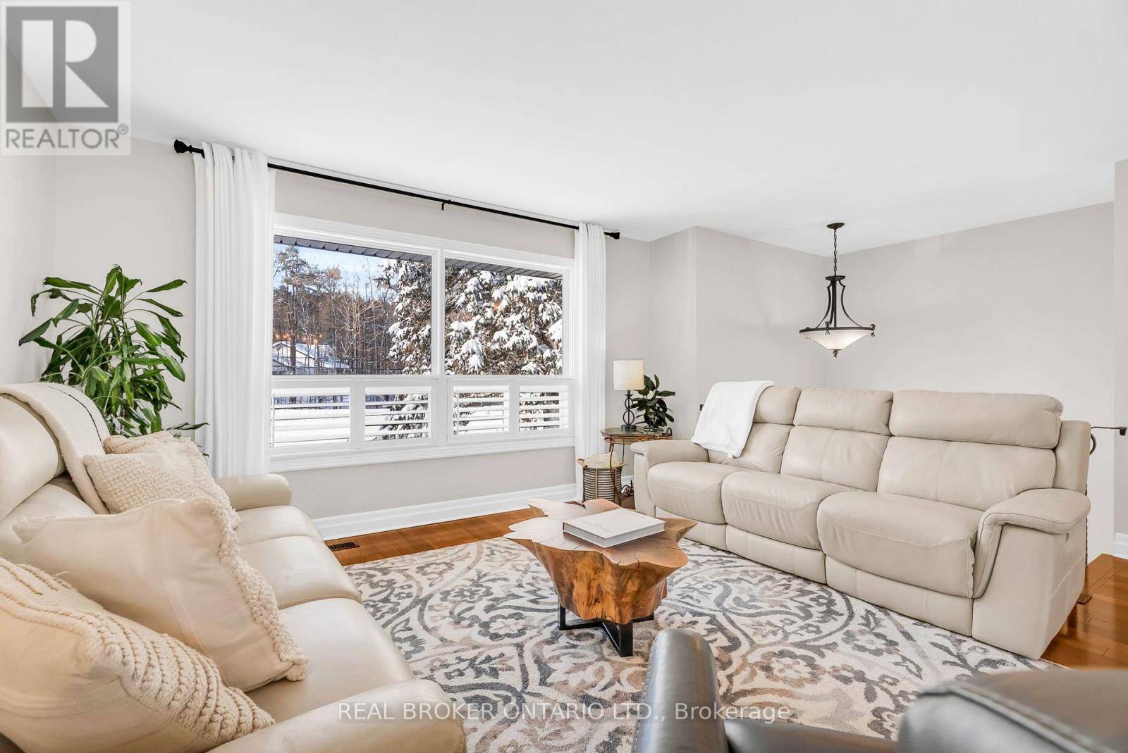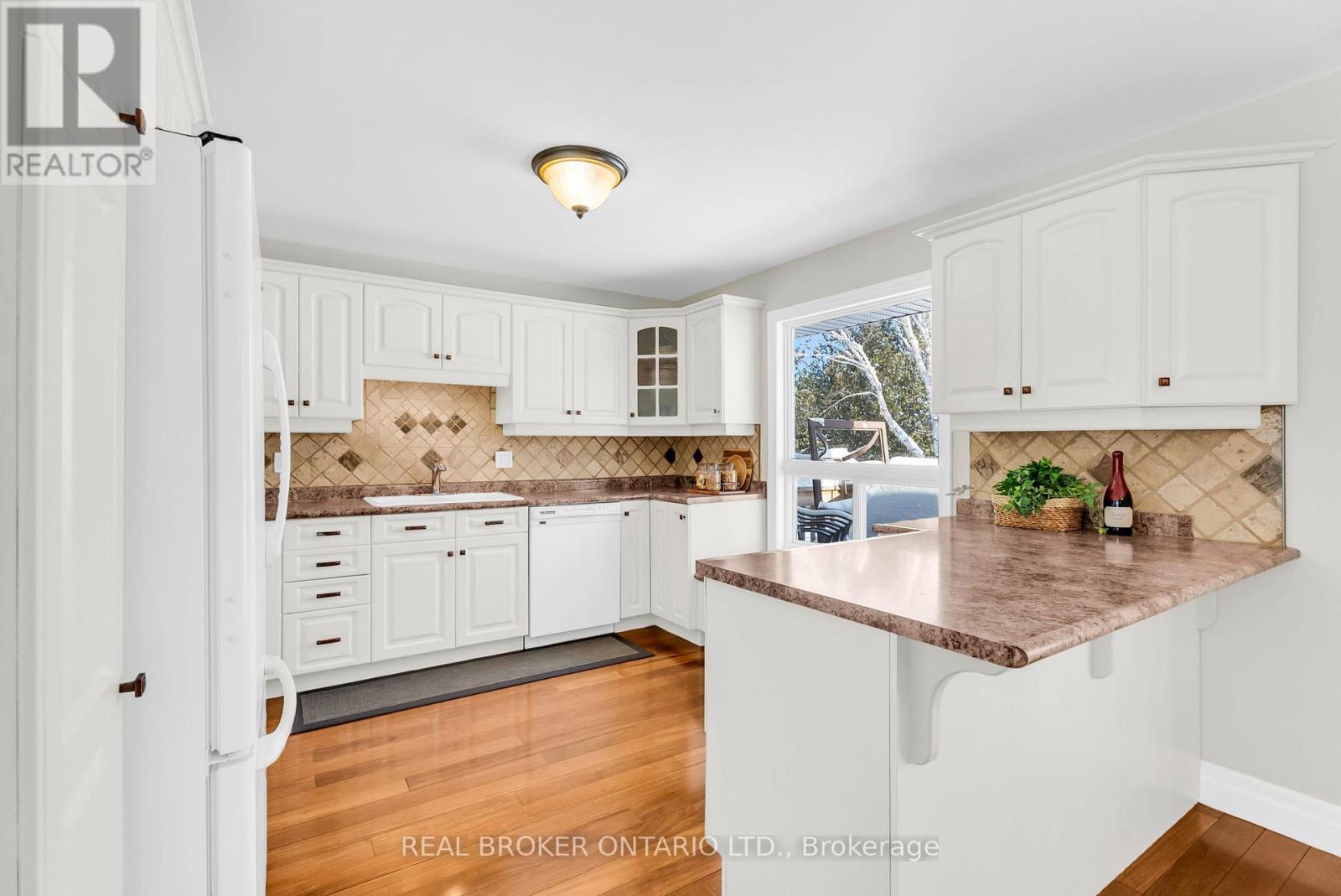 Welcome to a rare opportunity to enjoy the best of both worlds - a peaceful rural setting with quick, easy access to everything Midland has to offer. Just minutes to downtown, the waterfront, parks, trails, restaurants, shops, and essential services, this property delivers country living without sacrificing convenience. Set on a fully fenced and manageable one acre lot, this move-in ready home has been meticulously maintained inside and out. Major components have already been updated, including shingles, roof, furnace, and propane fireplace, and the interior has been thoughtfully updated throughout, offering a truly move-in-ready home with nothing left to do. Inside, the main floor features hardwood flooring throughout with no carpet anywhere in the home. The spacious kitchen is both functional and inviting, offering a breakfast bar, built-in window seating, classic cabinetry, ample storage, and a layout that has been exceptionally well cared for. California shutters add a timeless finish throughout. The updated bathroom and laundry room (2025) provide modern convenience with added storage cabinetry. The bright walk-up basement features large lookout windows, a separate entrance, and excellent potential for a future multi-generational living setup or additional living space. Outside, a circular driveway offers maximum parking, complemented by a two-car garage and plenty of room to enjoy the outdoors. A turn-key property in a sought-after location like this is a rare find, offering space, privacy, and proximity all in one exceptional package. (id:4555)