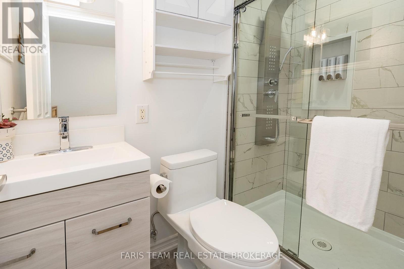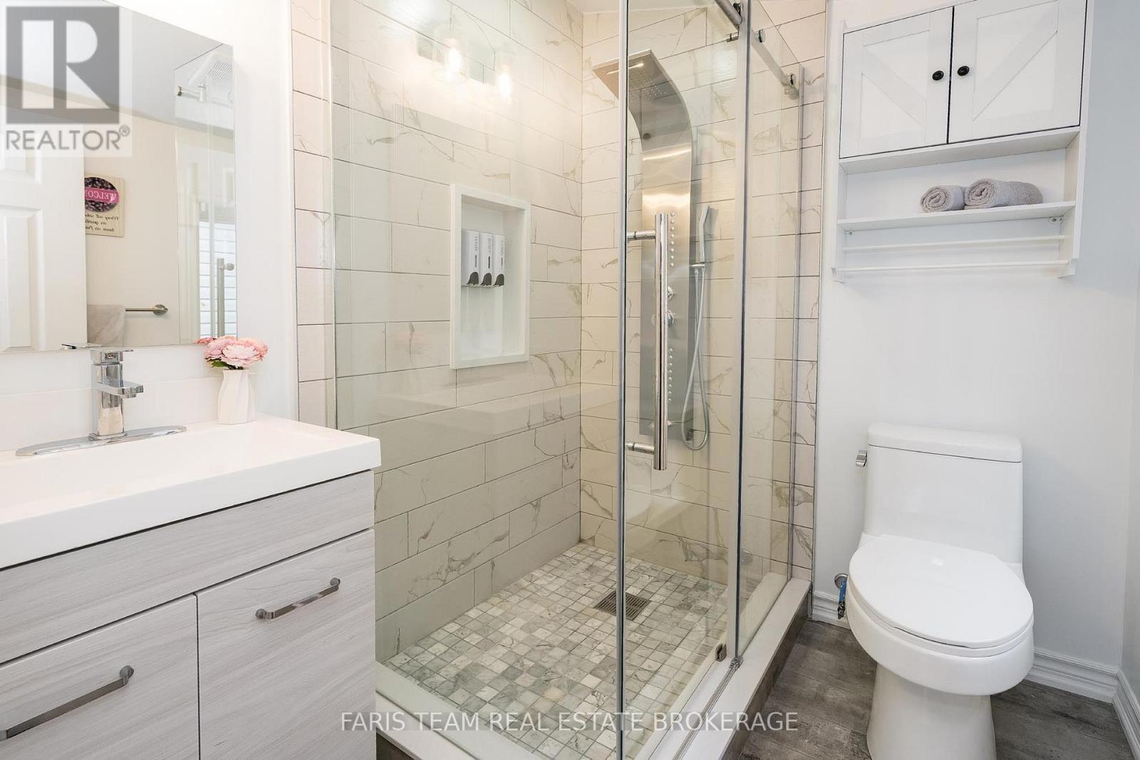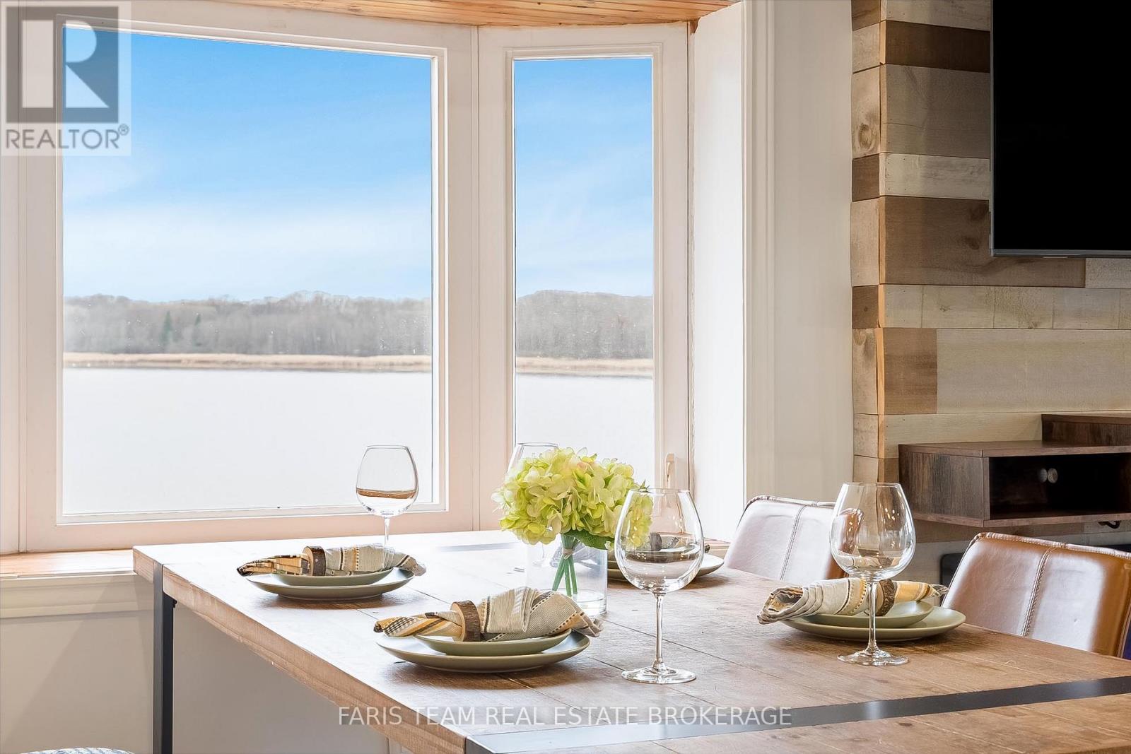 Top 5 Reasons You Will Love This Home: 1) Stunning panoramic views of peaceful Hogg Bay await a fishing enthusiast and those seeking direct access to Georgian Bay in this beautifully updated, move-in-ready four-season home 2) Wood vaulted ceilings and an open-concept main level blend rustic charm with modern updates, creating a welcoming and stylish retreat 3) Each bedroom offers a private, updated ensuite for a luxurious experience, ideal for families and hosting guests 4) Outdoors, you'll discover a wraparound deck with sleek glass railings, a cozy firepit, a refreshing outdoor shower, a private guest bunkie, and a dock for seamless access to the water 5) Conveniently located in Victoria Harbor, with nearby amenities just a short drive away and within easy reach of Highway 12 access. 1,669 fin.sq.ft. (id:4555)