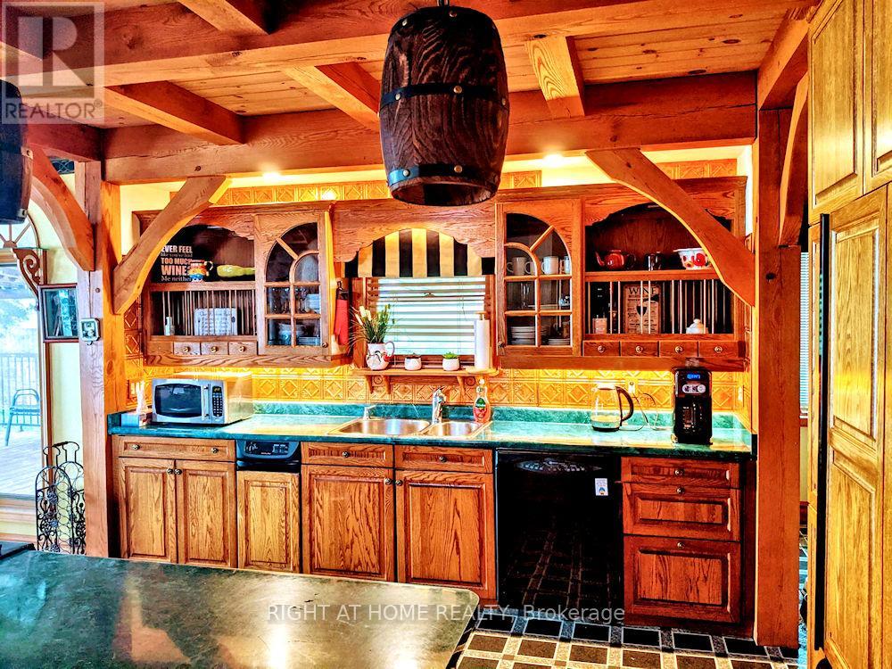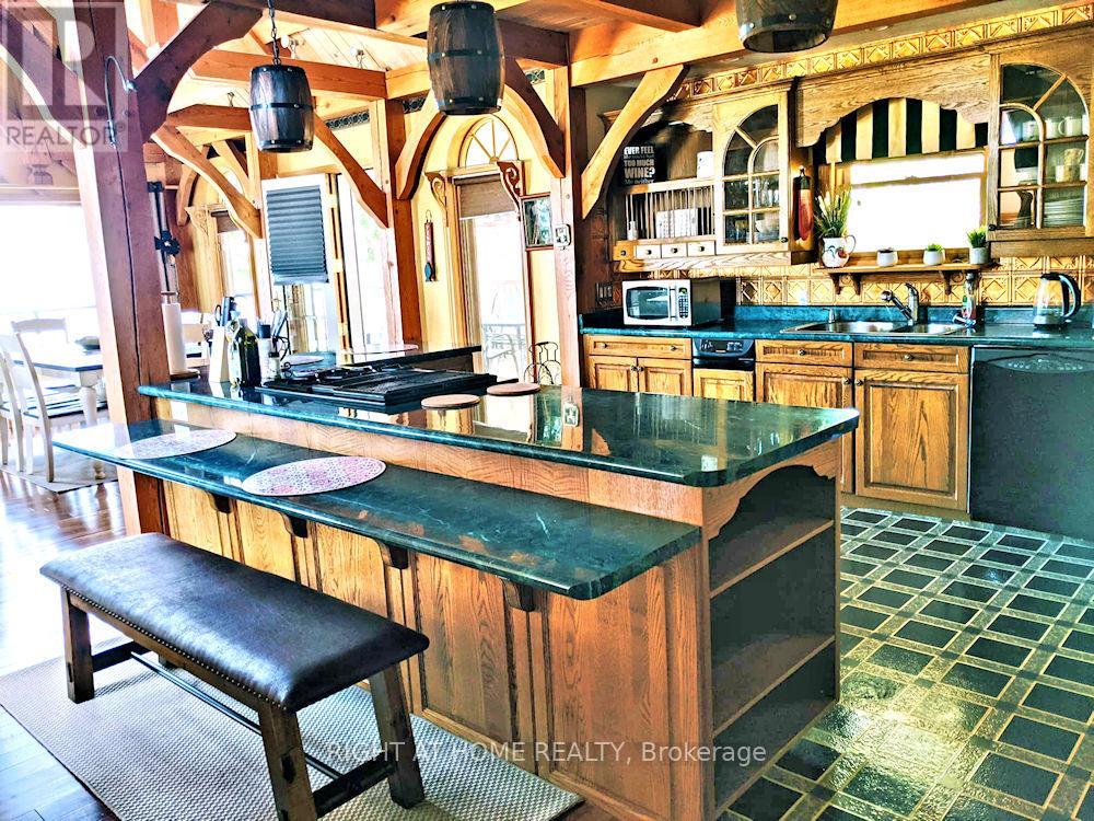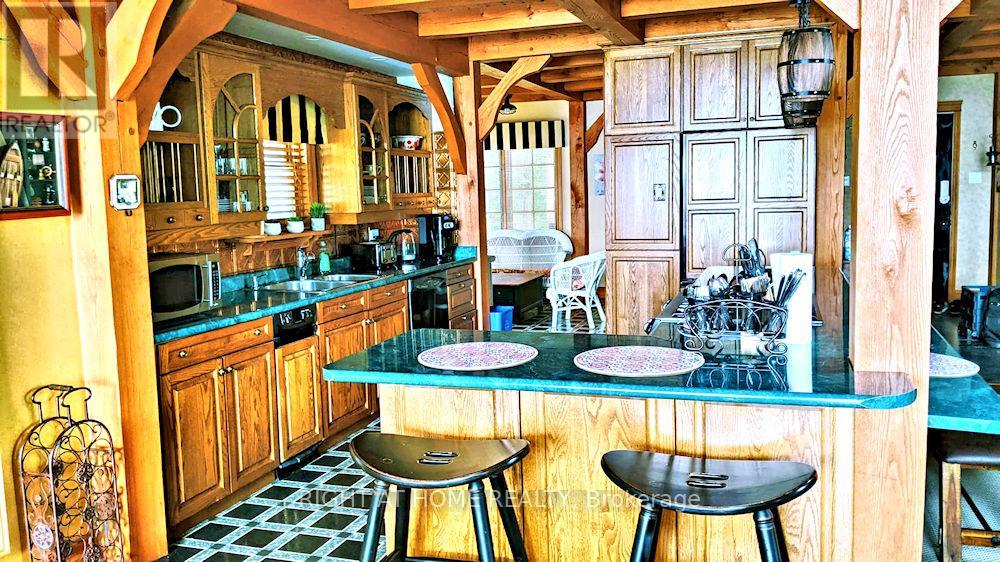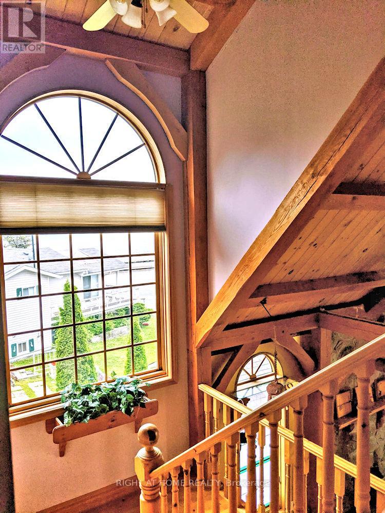 Stunning Timber Frame Waterfront - Georgian Bay.Experience breathtaking sunset views from this unique 4-bedroom, 3-bathroom year-round waterfront house. This architectural gem features soaring ceilings, expansive windows with lake views, and a seamless open-concept design.Main floor highlights: large open-concept kitchen and a living area featuring a cozy wood-burning stove; a separate, cozy family room provides the perfect additional spot for relaxation. Additional bedroom (perfect for guests or an office),a convenient powder room.A second-floor sitting area overlooks the main living room including a private balcony and a private master sanctuary featuring a unique, open-concept en-suite. This space is designed with an elevated entrance and a partial feature wall, blending style with architectural interest Outdoor Living: Large deck with glass railings, waterfront backyard, and a private barrel sauna steps from the lake.Income Potential: Lower level features a self-contained 1-bedroom suite with a separate entrance and a living room currently featuring a pool table.The fourth bedroom is also located on the lower level but is situated on the opposite side of the floor, ensuring it remains separate from the suite for maximum privacy. The laundry room is also conveniently located on this lower level.Recent Upgrades:New roof and gutters installed in 2021.Electrical system has been upgraded to 200 AMP for modern efficiency.Barrel outdoor sauna for relaxation, just steps away from the lake.Convenience: Fully connected to municipal utilities for hassle-free living.Versatility: Ideal as a permanent home or a serene getaway.Rare opportunity for a permanent residence or serene getaway. Book your private viewing today! (id:4555)