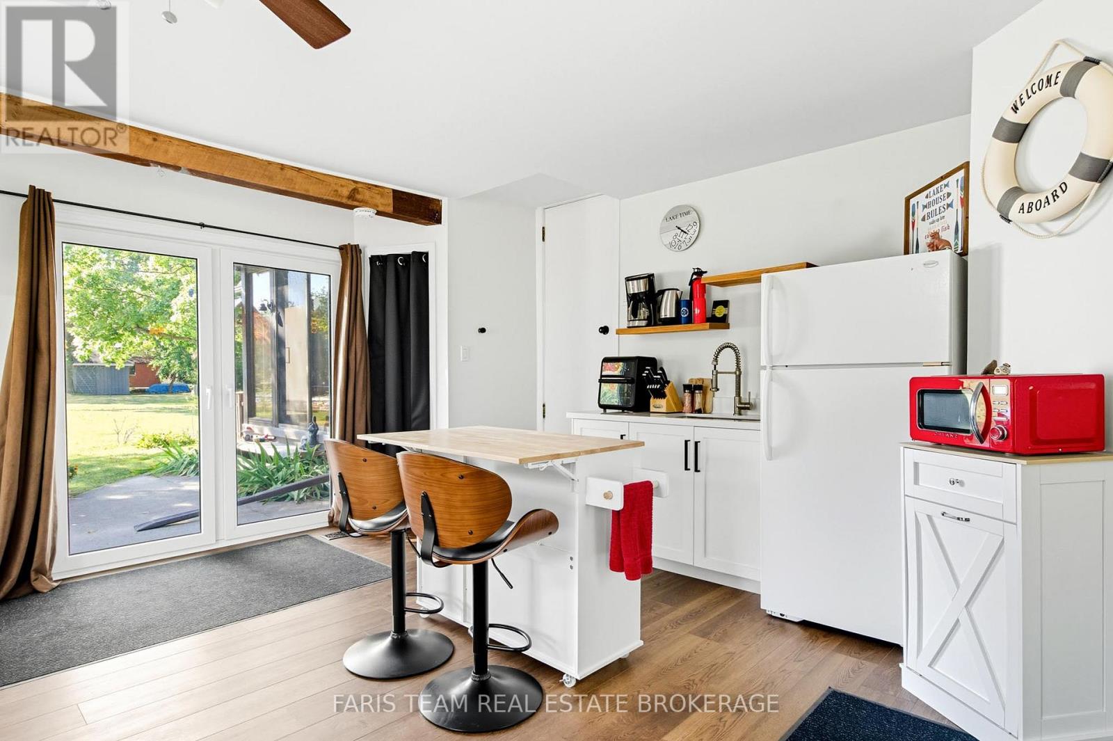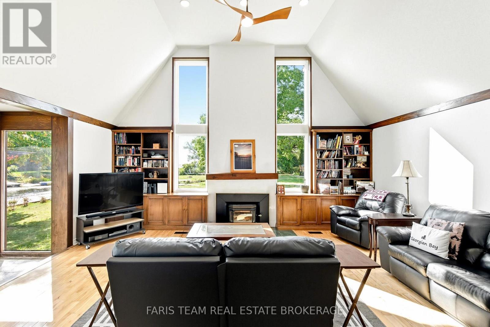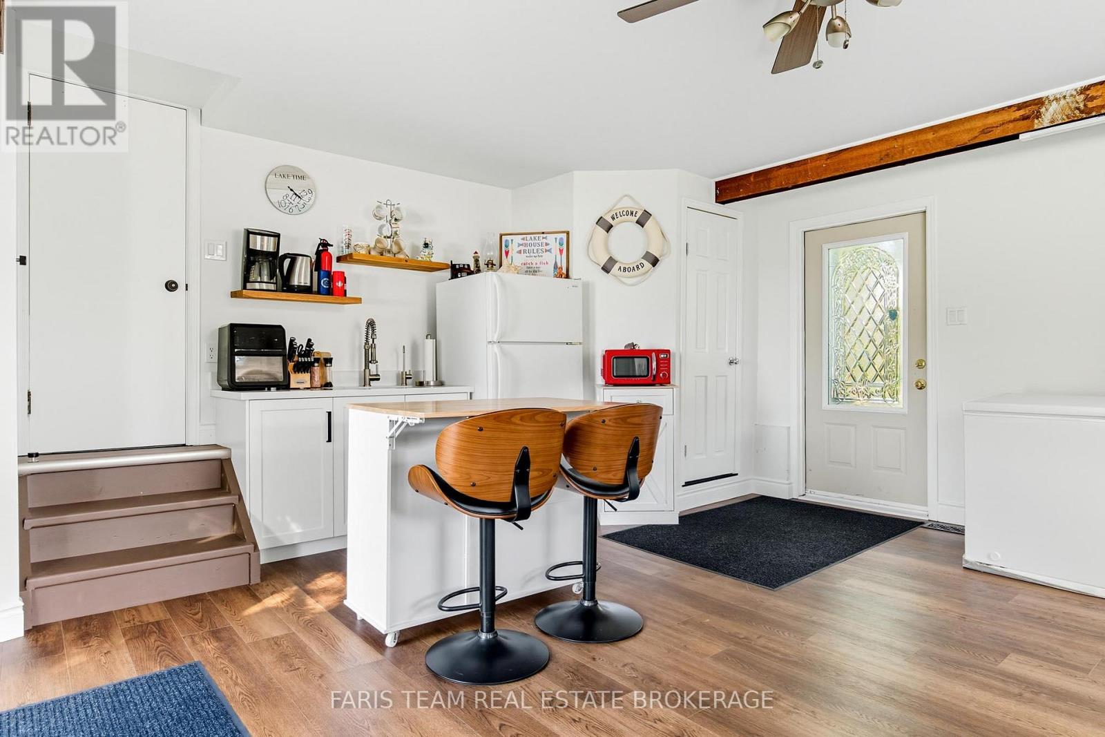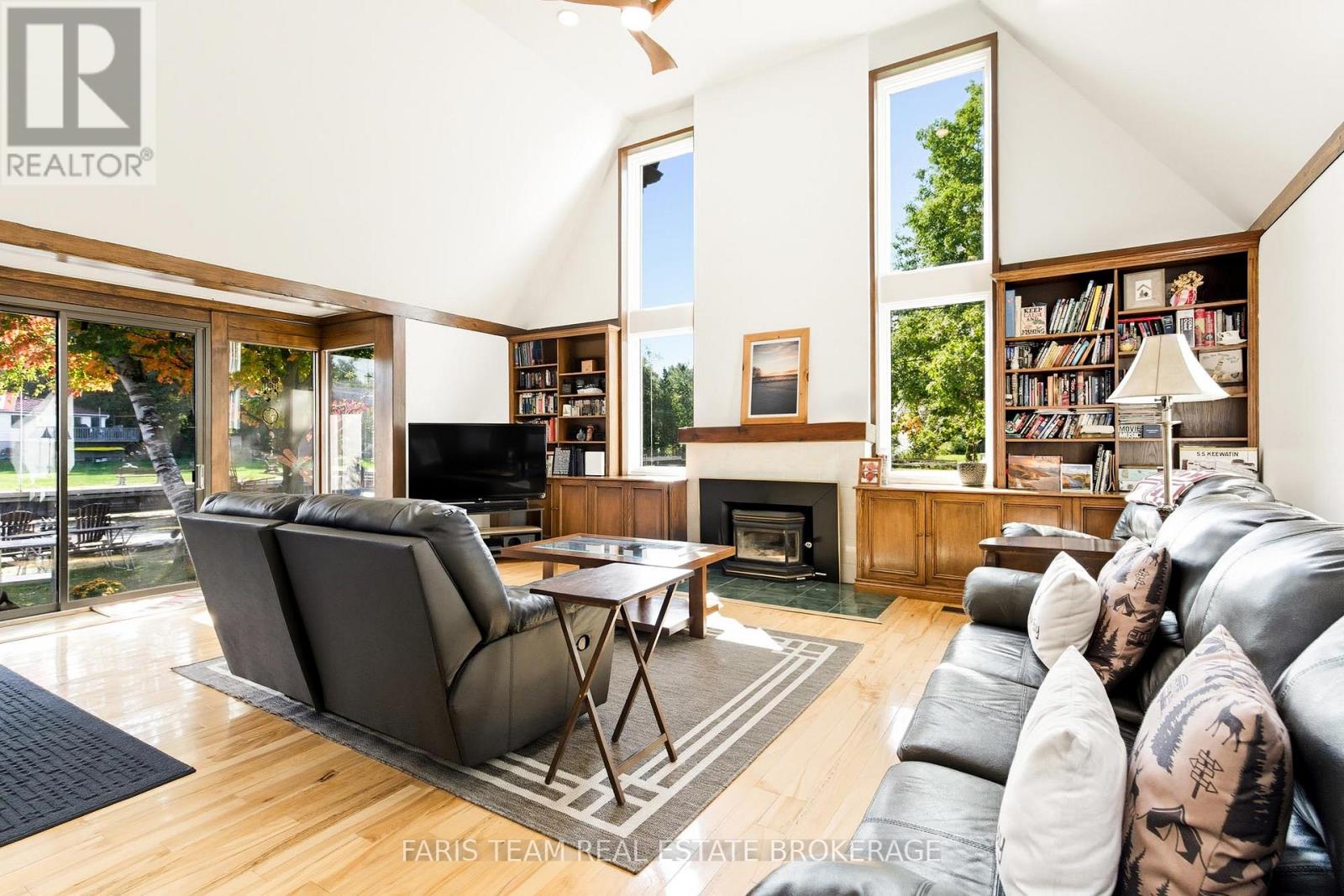 Top 5 Reasons You Will Love This Home: 1) With 75' of waterfront and direct access to Georgian Bay, this is true shoreline living, set along a protected channel, your boat stays sheltered from prevailing winds while still enjoying quick access to open water and the kind of sunsets people travel hours to experience, to top it all off, you also have access to two sandy beaches within walking distance 2) Almost half an acre in a rural setting gives you breathing room and long-term value, with no direct neighbours across the street, adding a level of privacy that new subdivisions simply cannot offer, yet you are still within close proximity to Highway 400 for an easy commute 3) The expansive great room serves as the heart of the home, highlighted by oversized windows, a vaulted ceiling, built-in bookshelves, and a fireplace that beautifully anchors the space as natural light pours in, while the primary bedroom offers serene water views so you can wake up to Georgian Bay every day 4) Fully renovated main level bedroom complete with a wet bar and centre island creates the perfect in-law setup or separate overflow living space when guests arrive, along with a main level laundry room for easy convenience 5) Peace of mind comes with the roof, furnace, and air conditioner already replaced, complemented by efficient European windows throughout the main level bedroom addition, as well as four updated windows flanking the fireplace in the great room, while a detached garage and powered auxiliary storage and workshop building provide plenty of space for tools, toys, and projects. 2,602 fin.sq.ft. (id:4555)