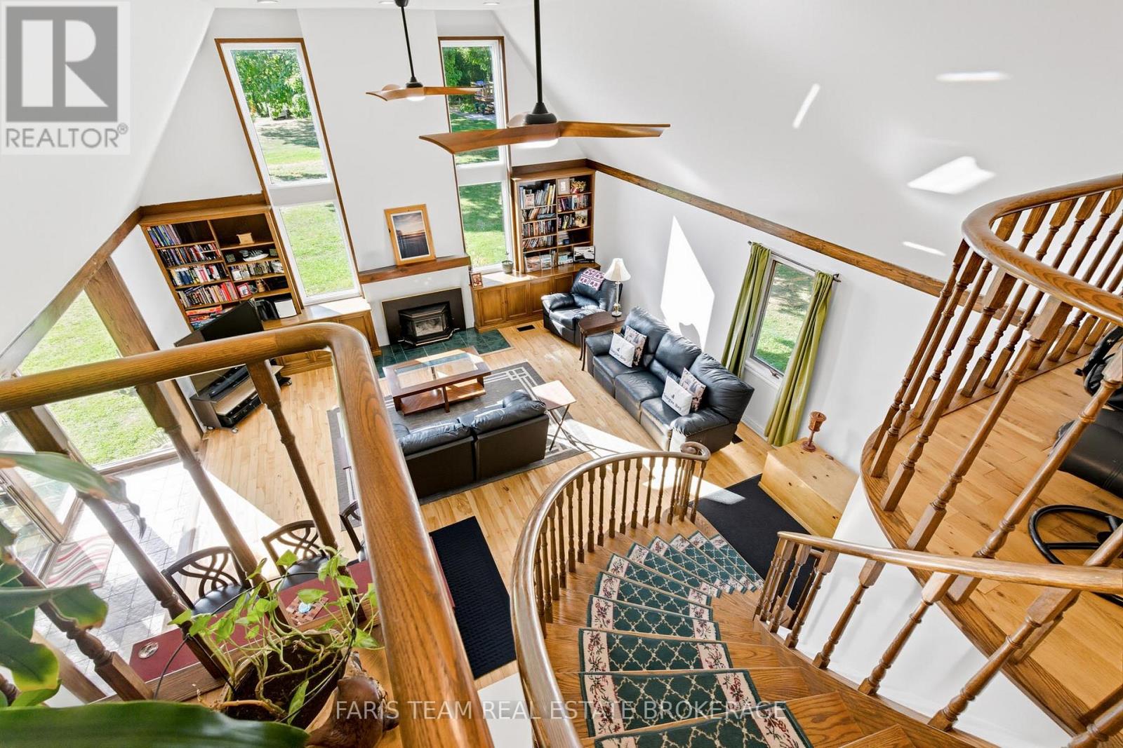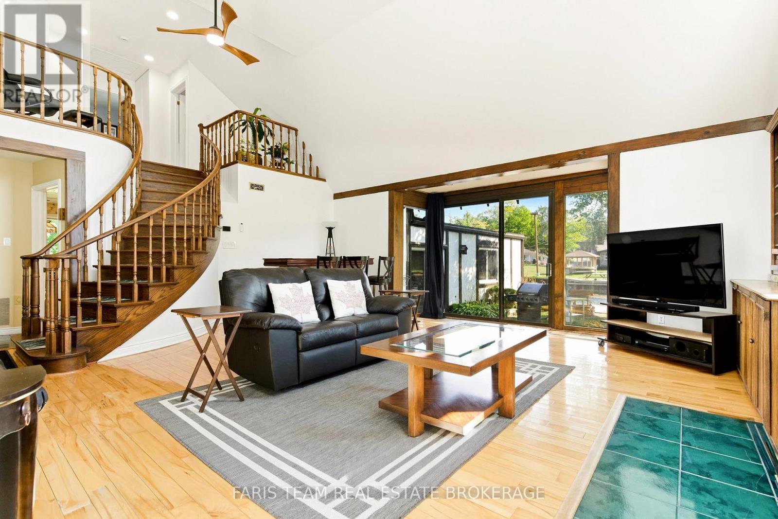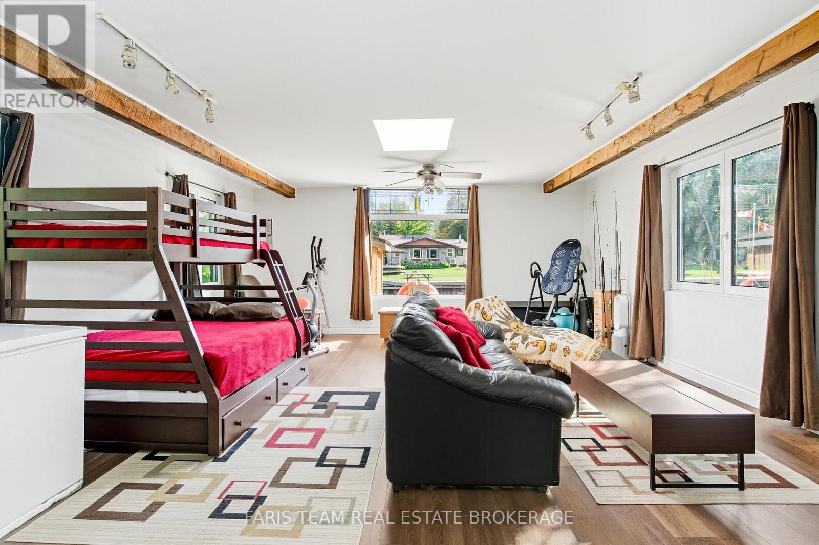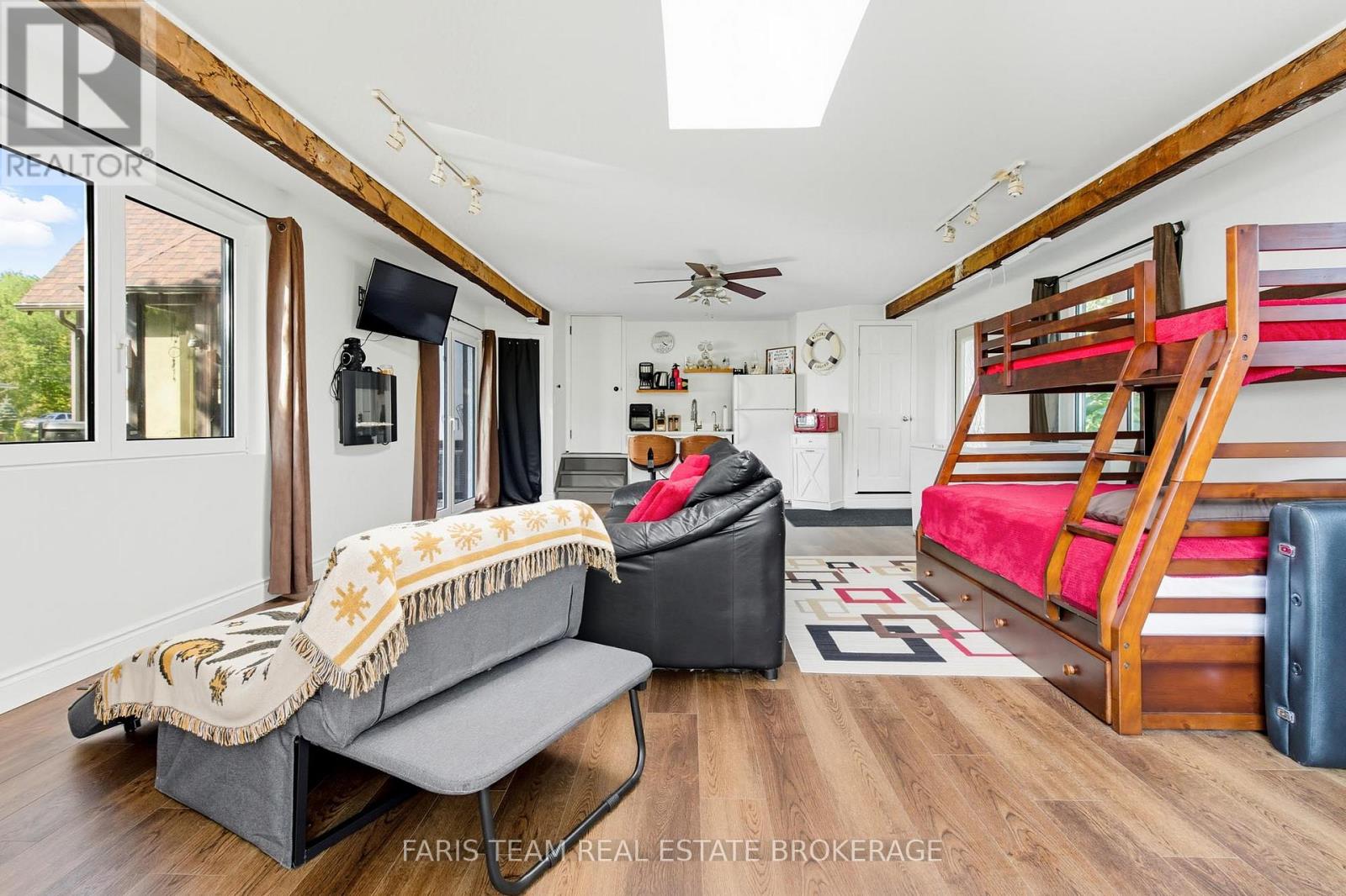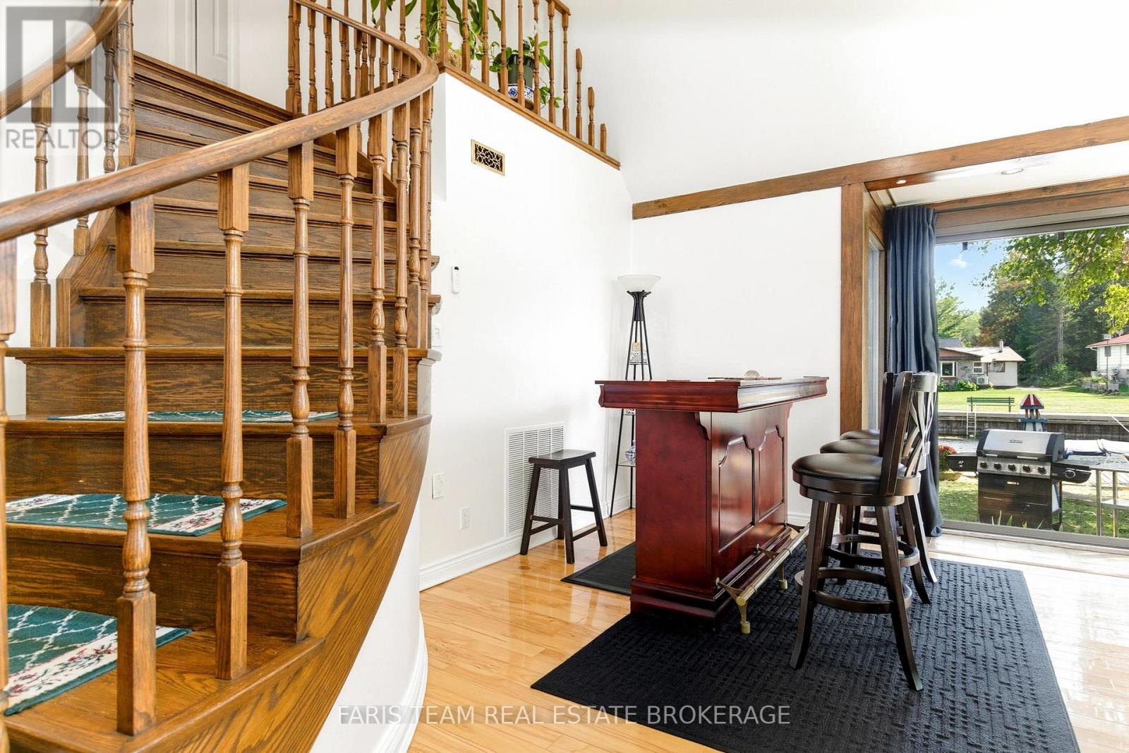 Top 5 Reasons You Will Love This Home: 1) With 75' of waterfront and direct access to Georgian Bay, this is true shoreline living, set along a protected channel, your boat stays sheltered from prevailing winds while still enjoying quick access to open water and the kind of sunsets people travel hours to experience, to top it all off, you also have access to two sandy beaches within walking distance 2) Almost half an acre in a rural setting gives you breathing room and long-term value, with no direct neighbours across the street, adding a level of privacy that new subdivisions simply cannot offer, yet you are still within close proximity to Highway 400 for an easy commute 3) The expansive great room serves as the heart of the home, highlighted by oversized windows, a vaulted ceiling, built-in bookshelves, and a fireplace that beautifully anchors the space as natural light pours in, while the primary bedroom offers serene water views so you can wake up to Georgian Bay every day 4) Fully renovated main level bedroom complete with a wet bar and centre island creates the perfect in-law setup or separate overflow living space when guests arrive, along with a main level laundry room for easy convenience 5) Peace of mind comes with the roof, furnace, and air conditioner already replaced, complemented by efficient European windows throughout the main level bedroom addition, as well as four updated windows flanking the fireplace in the great room, while a detached garage and powered auxiliary storage and workshop building provide plenty of space for tools, toys, and projects. 2,602 fin.sq.ft. (id:4555)