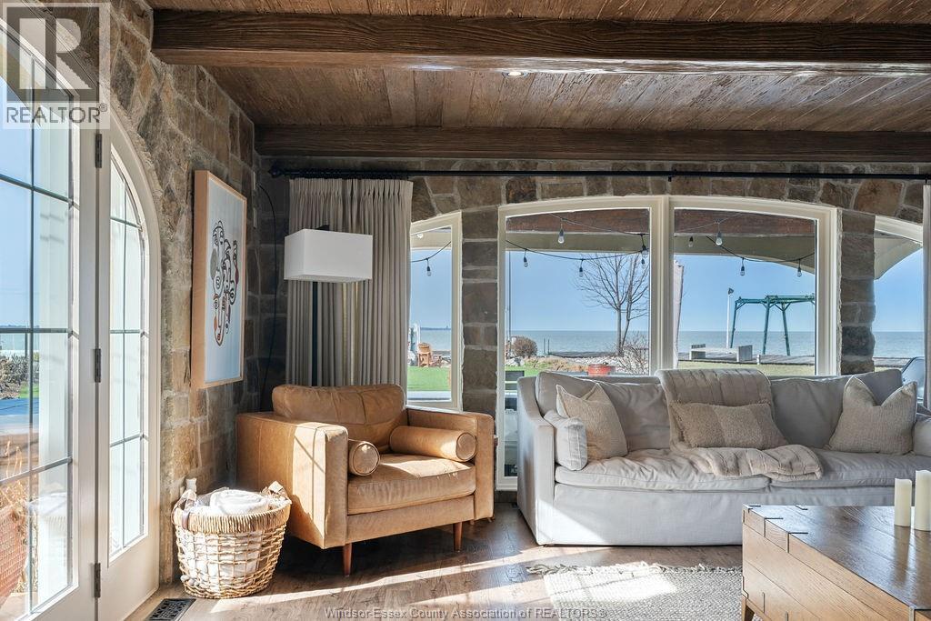 Experience exceptional waterfront living in this iconic Lake St. Clair estate. Privately gated and tucked behind a stately privacy wall, this timeless 2-storey home offers stunning lake views from nearly every room. Featuring 6 spacious bedrooms and 4.1 luxurious baths, including a serene primary suite with private balcony overlooking the water. The chef-inspired kitchen boasts custom cabinetry, high-end appliances, and generous space for entertaining. Enjoy resort-style outdoor living with an in-ground pool, hot tub, covered bar, fire pit, and a 2 private dock equipped with boat and dual Sea-Doo lifts. Two 2-car garages (attached and detached) offer ample storage. A rare opportunity to own a private, lakefront retreat offering elegance, comfort, and unmatched views—all just minutes from local amenities. (id:4555)