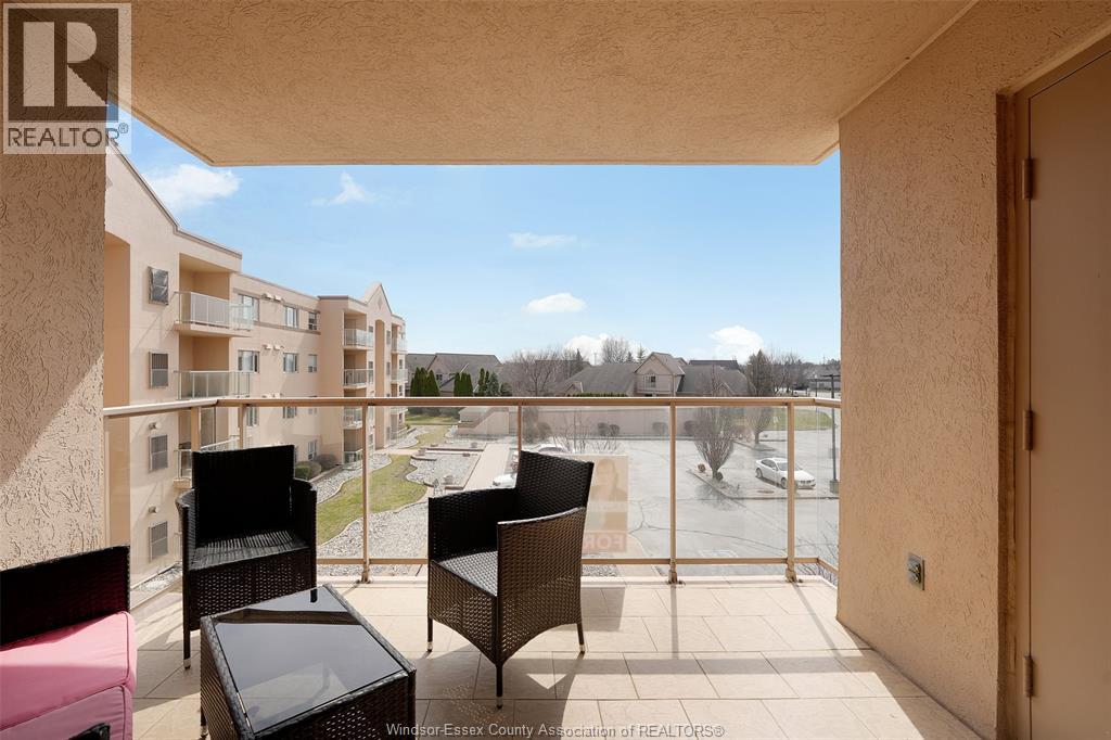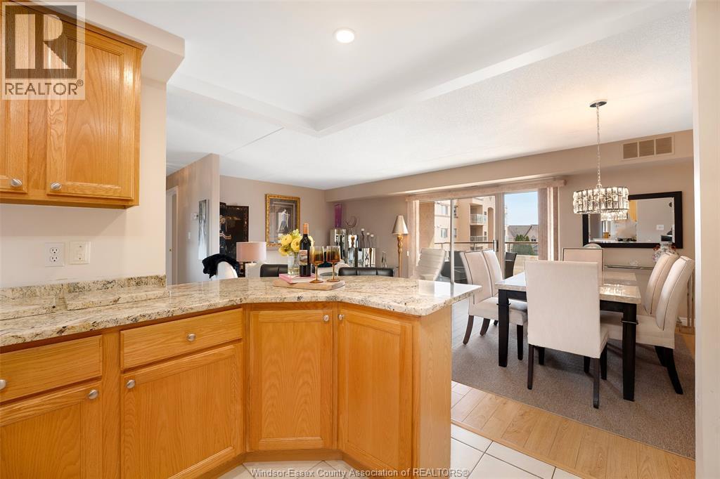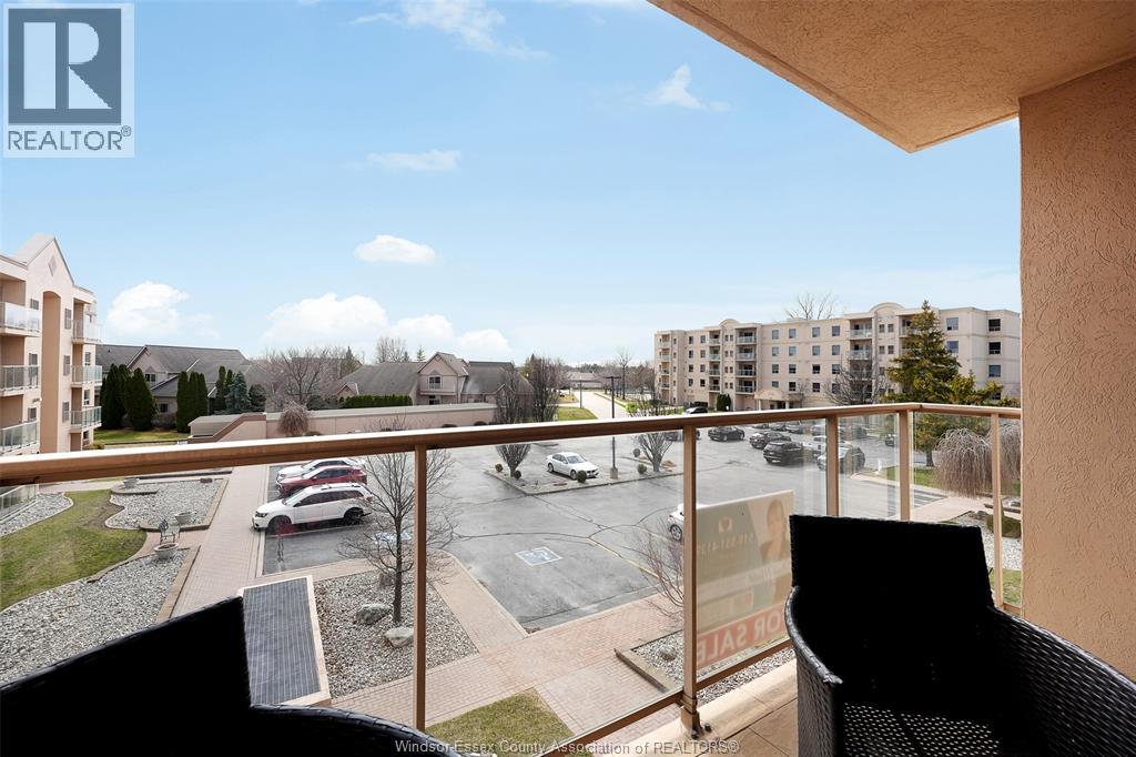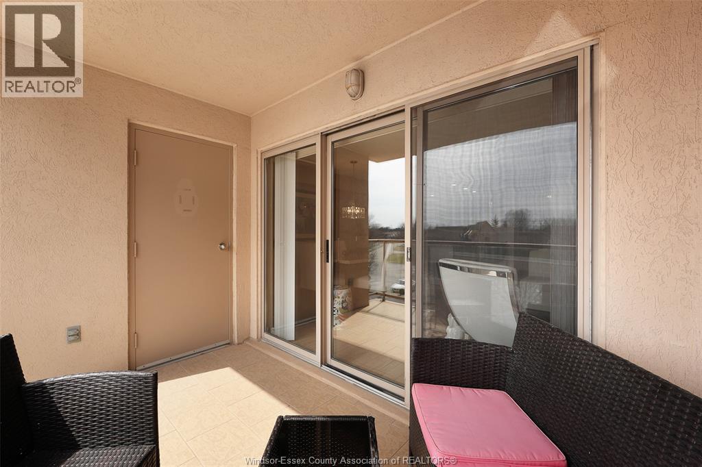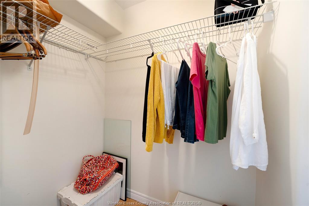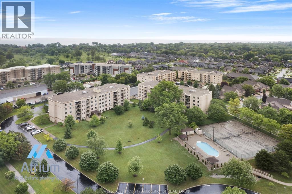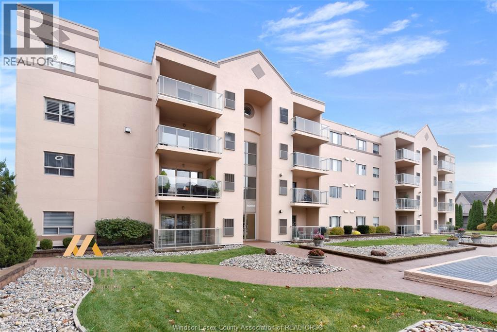 Experience refined, maintenance-free living in the prestigious St. Clair Beach/Tecumseh community, ideally situated within the highly sought-after Village Grove—just steps from Lakewood Park, boutique shopping, banking, professional services, and an array of dining options. This stylish CORNER residence showcases two-bedroom, two-bathroom, an upgraded kitchen featuring oak cabinetry, granite countertops, and bright & modern pot lighting (no fluorescent ceiling). Spacious open concept living & dining room with mirror accent walls to boost the natural light from the wide patio doors. South facing tiled balcony offers additional living space to enjoy outdoor entertaining all summer long. The primary suite boasts a walk-in closet and a private ensuite, while in-suite laundry with additional storage enhances everyday convenience. Residents enjoy the benefits of dual entrances (East and West), each serviced by its own elevator, and only four suites per floor per side— ensuring privacy and exclusivity. Underground parking and a dedicated storage locker are included. Exceptional amenities complete the offering, including an outdoor pool, tennis / pickle ball courts, a stylish party room with a full kitchen, and a well-appointed fitness centre with sauna. Elevate your lifestyle in a residence that perfectly balances comfort, convenience, and sophistication. (id:4555)