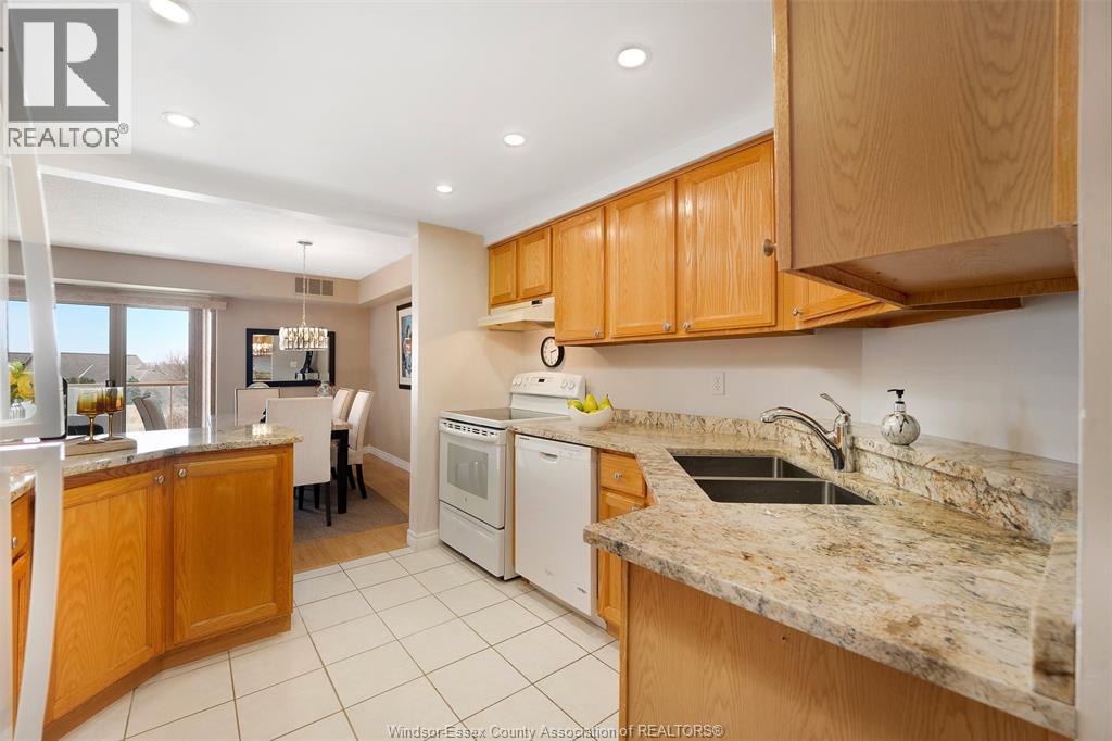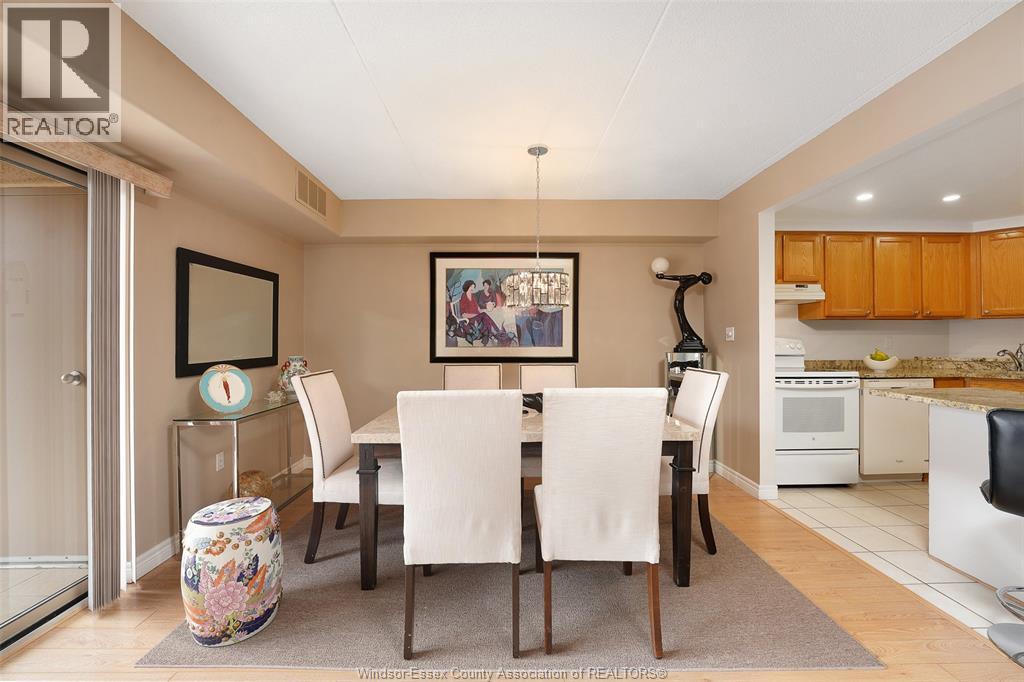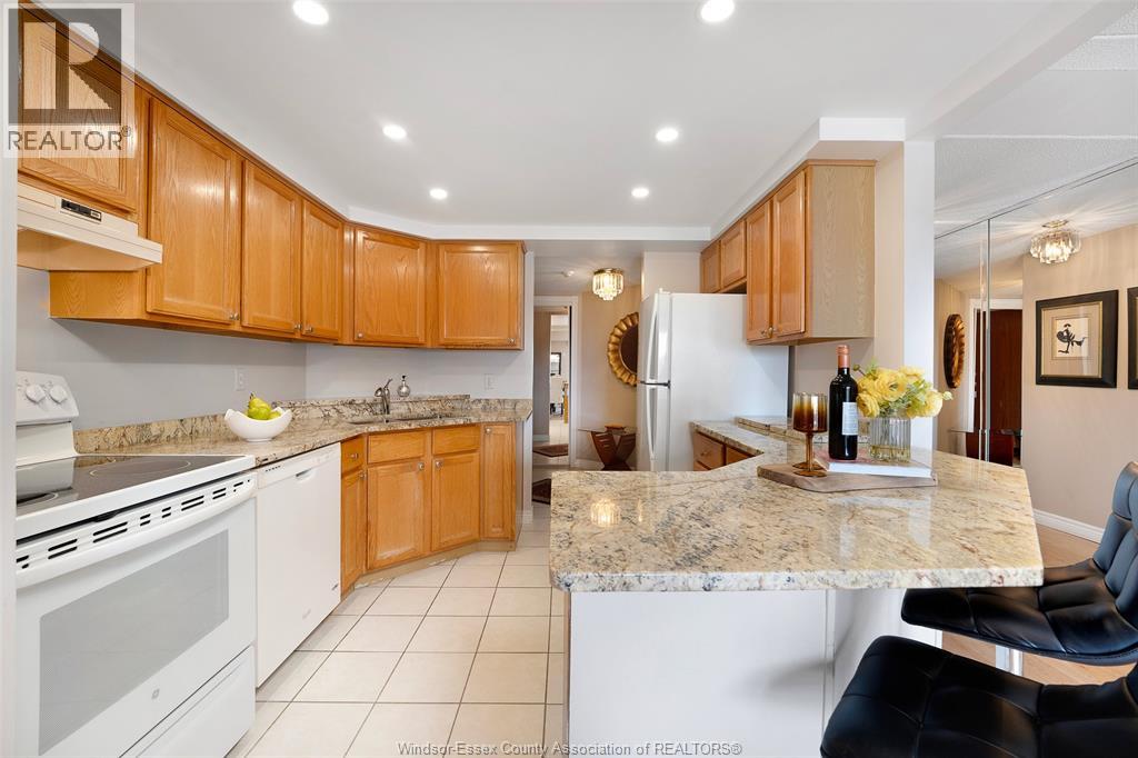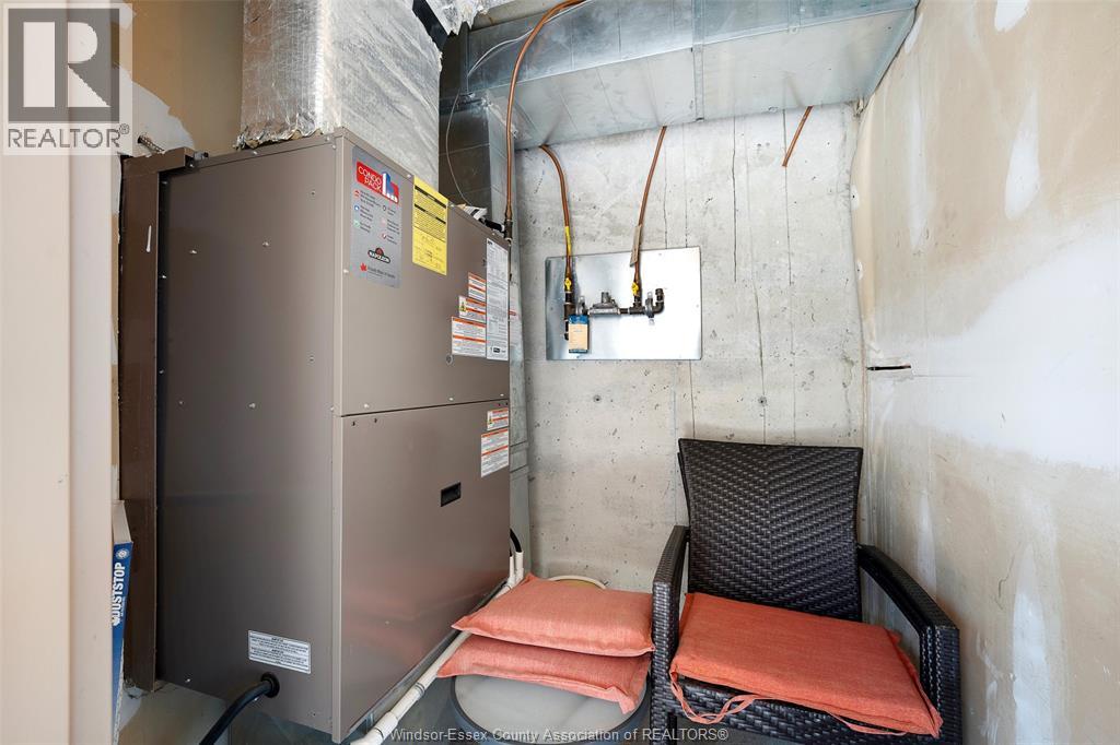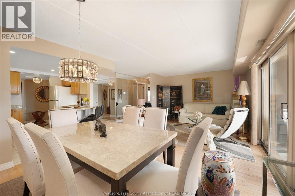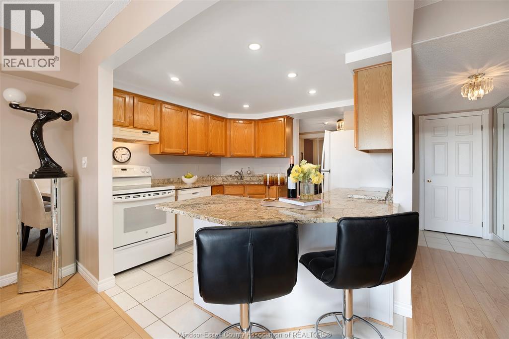 Experience refined, maintenance-free living in the prestigious St. Clair Beach/Tecumseh community, ideally situated within the highly sought-after Village Grove—just steps from Lakewood Park, boutique shopping, banking, professional services, and an array of dining options. This stylish CORNER residence showcases two-bedroom, two-bathroom, an upgraded kitchen featuring oak cabinetry, granite countertops, and bright & modern pot lighting (no fluorescent ceiling). Spacious open concept living & dining room with mirror accent walls to boost the natural light from the wide patio doors. South facing tiled balcony offers additional living space to enjoy outdoor entertaining all summer long. The primary suite boasts a walk-in closet and a private ensuite, while in-suite laundry with additional storage enhances everyday convenience. Residents enjoy the benefits of dual entrances (East and West), each serviced by its own elevator, and only four suites per floor per side— ensuring privacy and exclusivity. Underground parking and a dedicated storage locker are included. Exceptional amenities complete the offering, including an outdoor pool, tennis / pickle ball courts, a stylish party room with a full kitchen, and a well-appointed fitness centre with sauna. Elevate your lifestyle in a residence that perfectly balances comfort, convenience, and sophistication. (id:4555)