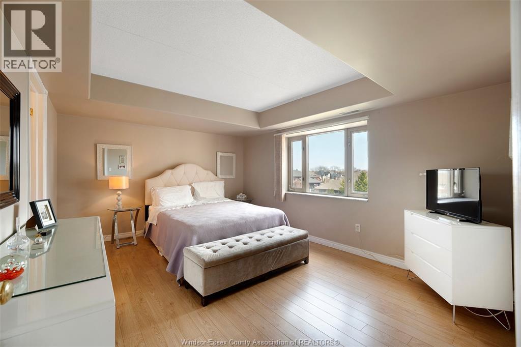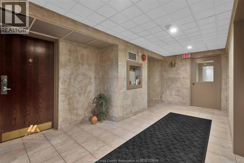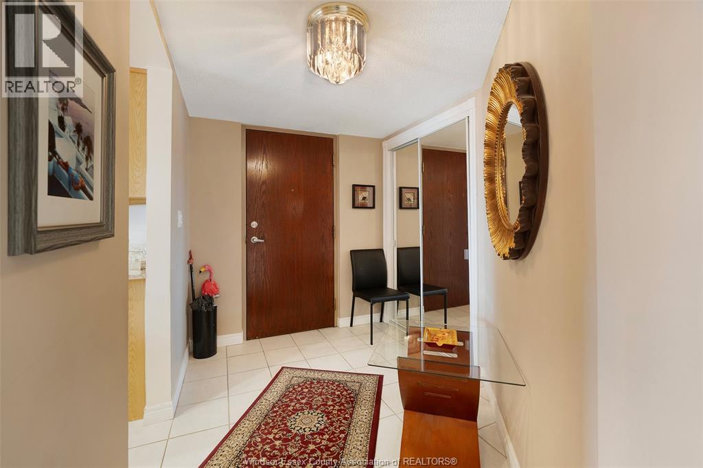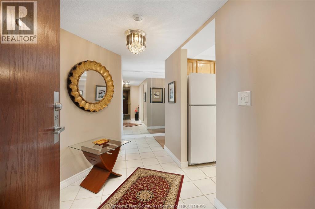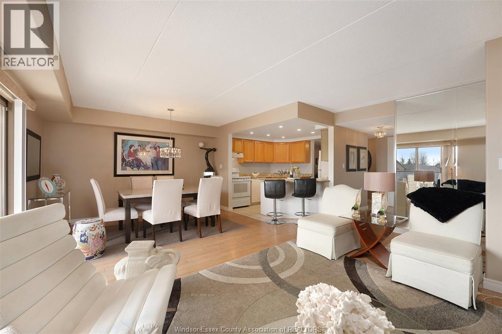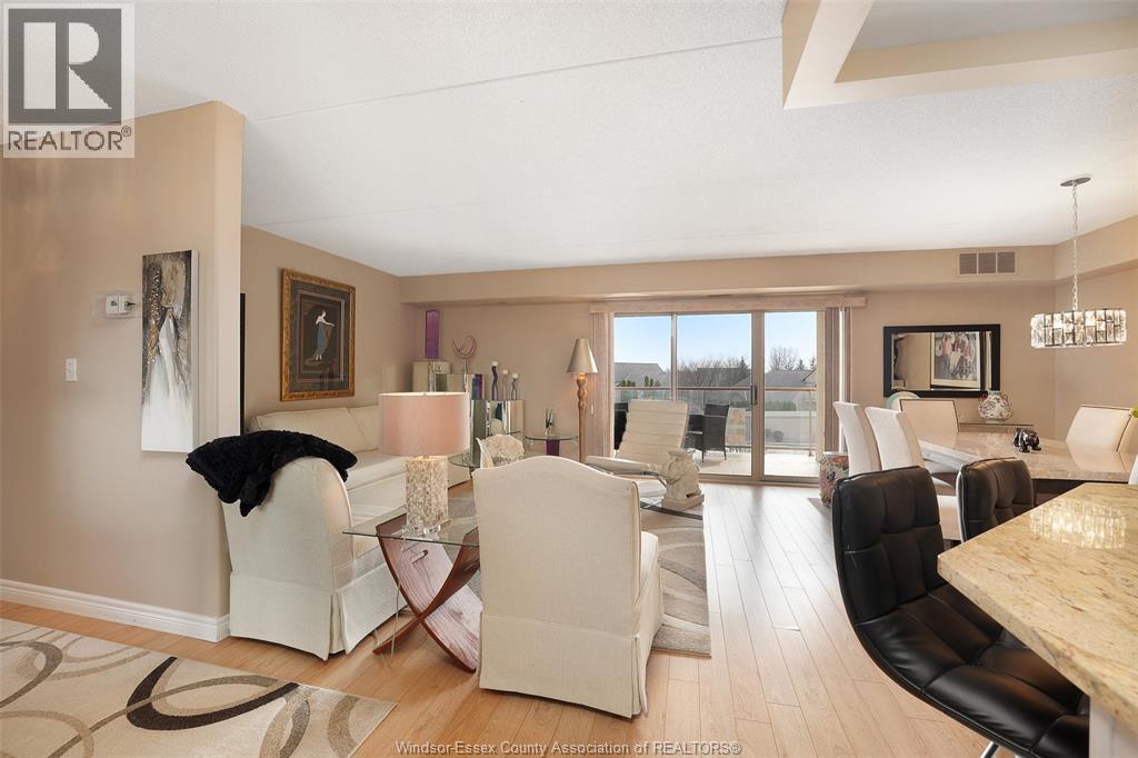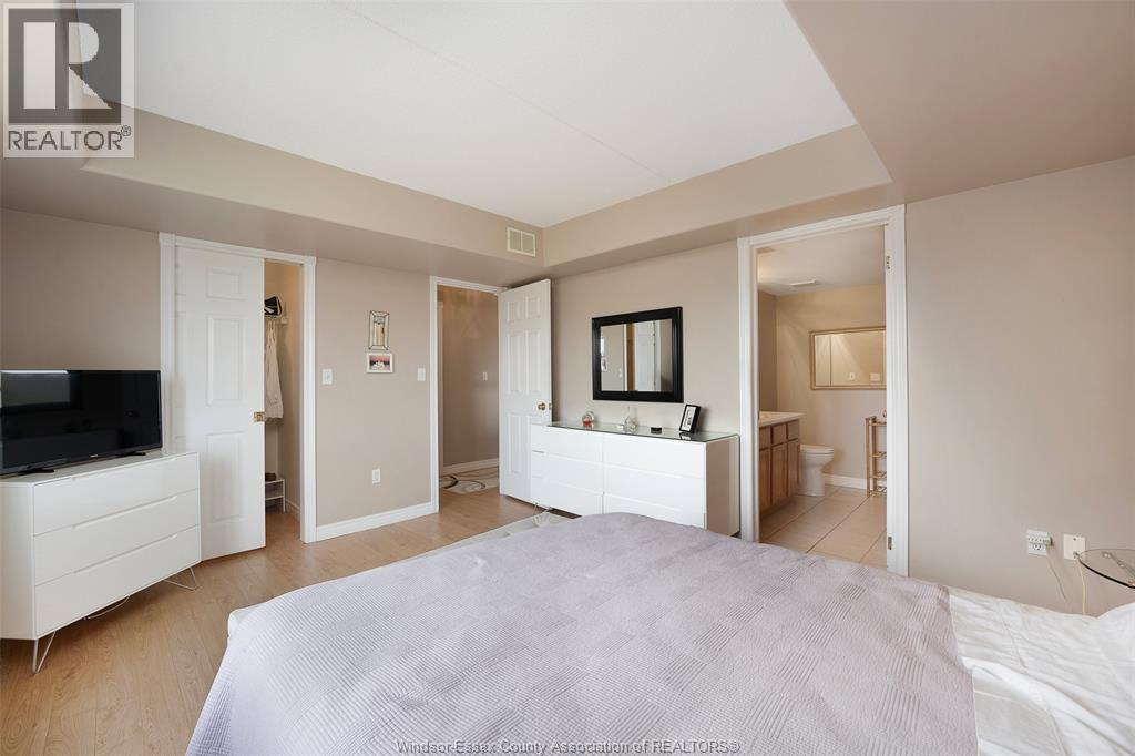 Experience refined, maintenance-free living in the prestigious St. Clair Beach/Tecumseh community, ideally situated within the highly sought-after Village Grove—just steps from Lakewood Park, boutique shopping, banking, professional services, and an array of dining options. This stylish CORNER residence showcases two-bedroom, two-bathroom, an upgraded kitchen featuring oak cabinetry, granite countertops, and bright & modern pot lighting (no fluorescent ceiling). Spacious open concept living & dining room with mirror accent walls to boost the natural light from the wide patio doors. South facing tiled balcony offers additional living space to enjoy outdoor entertaining all summer long. The primary suite boasts a walk-in closet and a private ensuite, while in-suite laundry with additional storage enhances everyday convenience. Residents enjoy the benefits of dual entrances (East and West), each serviced by its own elevator, and only four suites per floor per side— ensuring privacy and exclusivity. Underground parking and a dedicated storage locker are included. Exceptional amenities complete the offering, including an outdoor pool, tennis / pickle ball courts, a stylish party room with a full kitchen, and a well-appointed fitness centre with sauna. Elevate your lifestyle in a residence that perfectly balances comfort, convenience, and sophistication. (id:4555)