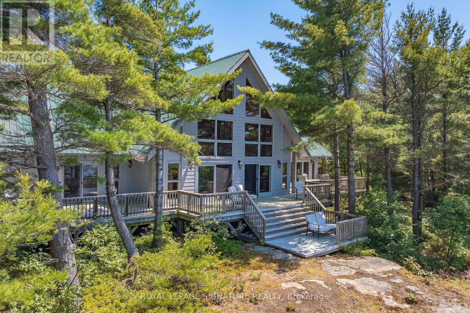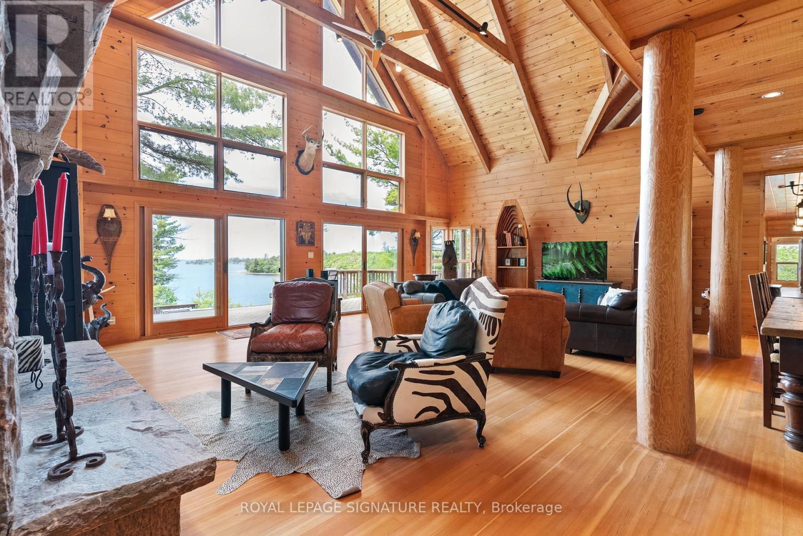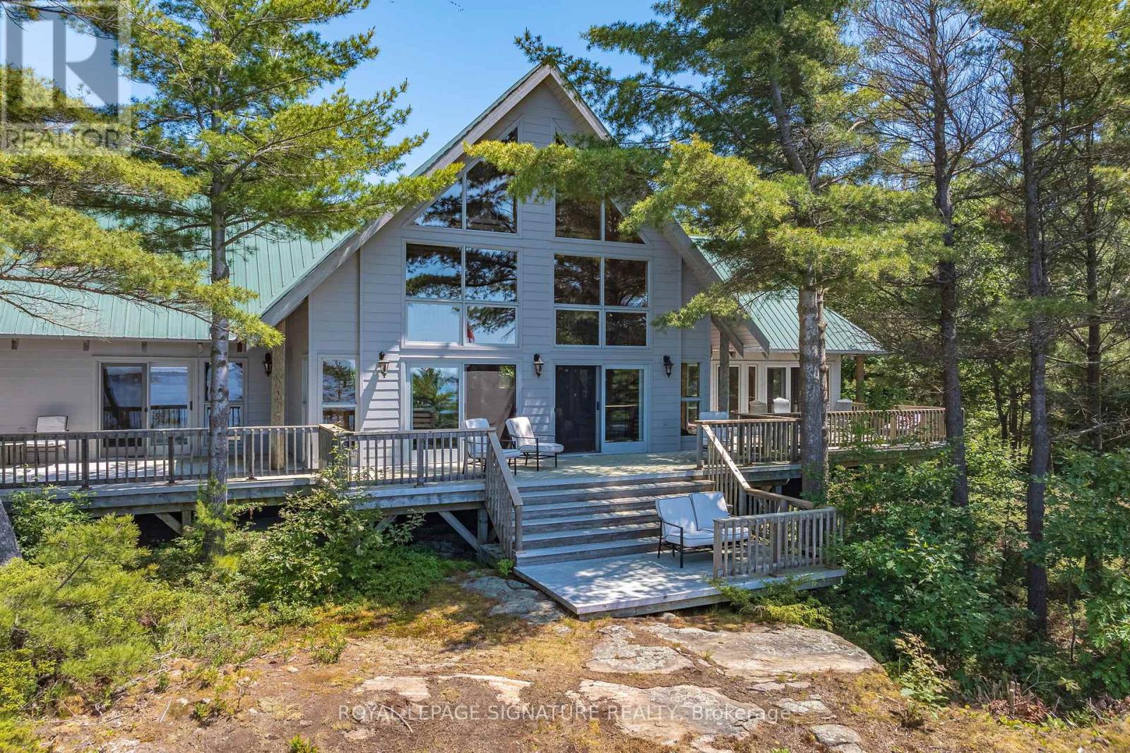Welcome to Echo Island, your very own 16-acre sanctuary on the stunning Georgian Bay, boasting 1280 feet of sunset-exposed shoreline. Picture-perfect dotted island views, wind swept pines, and your own private beach make this an idyllic escape for swimming, playing, and unwinding. Perched atop a scenic hill, the magnificent 4000+ square foot post and beam cottage awaits. Designed with entertaining in mind, it features a grand dining table that seats 12, plus extra cozy seating in the kitchen nook. The floor-to-ceiling windows and doors frame the views impeccably, while the spacious deck is ideal for soaking in those breathtaking panoramas. Three magnificent stone fireplaces add to the cottage's ambiance, providing warmth during those cool shoulder seasons. Imagine the sound of a crackling fire as you make unforgettable memories with your loved ones. The Muskoka room offers a serene retreat for curling up with a good book or additional space for entertaining guests. The principal suite is a true haven, complete with its own sliding glass door to the deck and an elegant 5-piece bath featuring a luxurious jet tub. With three additional bedrooms and two more bathrooms, there's plenty of room for family and friends. Echo Island also includes a charming post and beam Guest cottage, fully equipped to welcome guests or extended family members. The large dry boathouse is a marvel in itself, complete with a 2-piece bathroom, washer, and dryer. Navigating to your island paradise is a breeze with a protected cove and a dock capable of accommodating boats up to 70 feet. Nestled in the heart of Sans Souci and Copperhead Cottage Association, Echo Island offers easy access to several nearby marinas, including the convenient Le Blancs Marina for all your amenities. Ready to embrace the luxury of island living? Echo Island is calling. **EXTRAS** Nestled in the enchanting Massasauga Wilderness Park and the summer cottage haven of SansSouci. (id:4555)