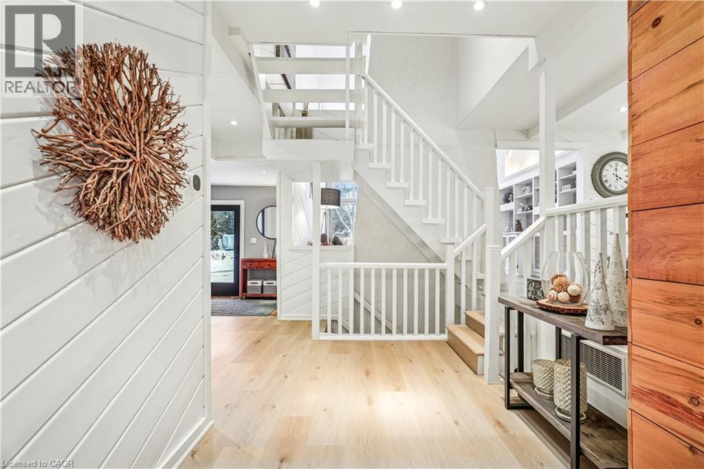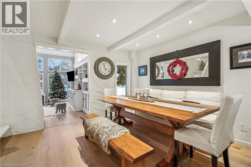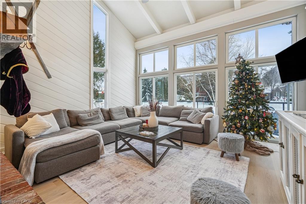 Tucked into one of the most walkable, family-friendly pockets of The Blue Mountains, this beautifully updated 2-storey home delivers the rare combination of ski-hill views, privacy, and everyday livability. From the moment you arrive, the double-wide driveway offers parking for 6 vehicles, making hosting friends and family effortless. Inside, the home opens to warm, light-filled living spaces designed for connection and comfort. The main living room frames views of the Blue Mountain ski hills, a daily reminder that adventure is right outside your door. A separate sitting room overlooks the expansive backyard, while the family room features a cozy fireplace and a cleverly integrated Murphy bed. The kitchen was updated in 2024, showcasing quartz countertops, modern cabinetry, pot lighting, and a clean, timeless aesthetic. Whether it’s weekday breakfasts or après-ski gatherings, this kitchen anchors the home beautifully. Upstairs, four well-proportioned bedrooms provide space for growing families or weekend guests. The primary suite offers calm and comfort, while 2.5 bathrooms ensure smooth mornings and relaxed hosting. The finished basement adds another layer of lifestyle value, with a fireplace, laundry area, storage, and a private sauna. The basement was professionally waterproofed in 2025 and includes a new drainage system and sump pump. Outdoor living is just as compelling. A screened-in porch extends the living space and invites long summer evenings, while the 60 x 114 ft lot offers a large yard with no immediate rear neighbours. Major updates include a roof in 2020, air conditioning in 2020, a new furnace in 2025, and an on-demand water heater, making this home as efficient as it is inviting. Located within walking distance to Blue Mountain Village, you’re moments from skiing, snowboarding, hiking, restaurants, cafés, shops, and year-round entertainment. This is a home built for families who love the outdoors but appreciate refined comfort at the end of the day. (id:4555)