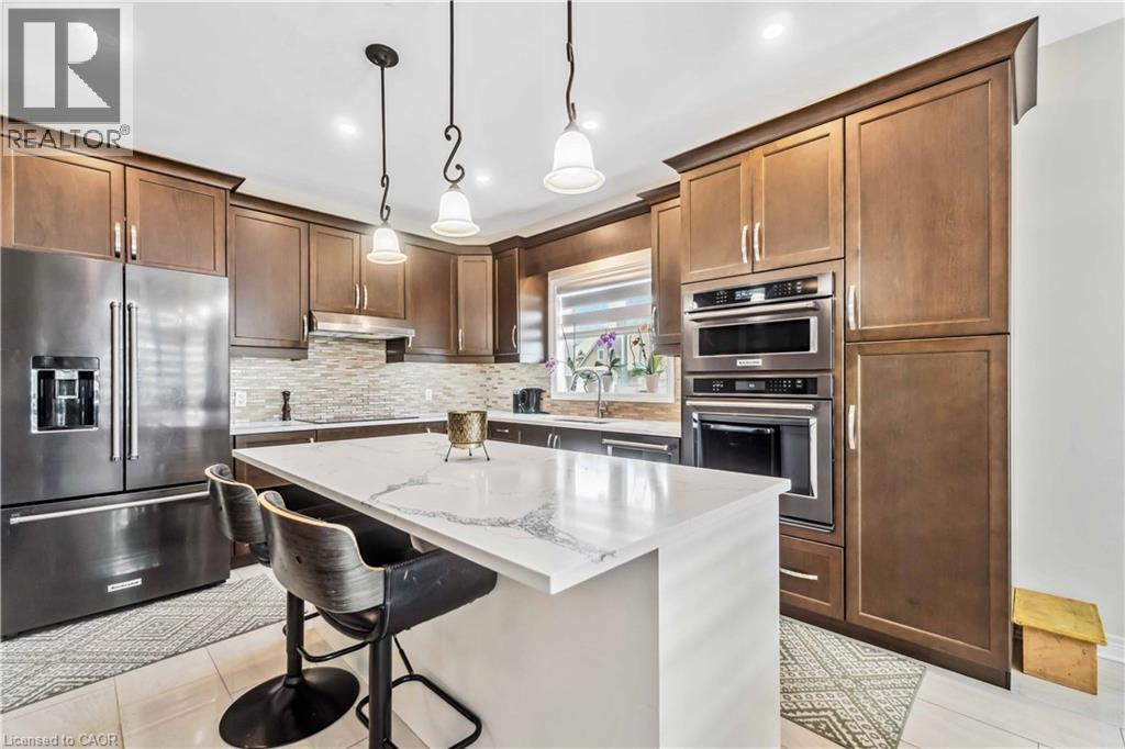 Absolutely Stunning Executive 2 Storey Home Built By Award Winning Rinaldi Homes and Loaded with Builder Upgrades Throughout! This is a perfect turn-key home for a large family or Multi-generational living. Featuring 9 ft Ceilings, 4 spacious Bedrooms, 2 of which have full ensuite bathrooms and 4 Bathrooms throughout. Functional open concept floorplan extensively upgraded throughout and incredible curb appeal. Upon entry you will feel the instant wow-factor in the grand foyer greeted by the soaring wood staircase, stunning tiles and hand scraped hardwood floors. This is the Perfect layout for the entertainer. Family room with natural gas fireplace, Open Living room to Dining room to bright large eat-in kitchen with quartz counters, island and window surround with walkout to raised covered patio and large private fenced yard. Second level features Oversized Primary Bedroom Retreat with large sitting area, spacious walk-in closet and full 5-PC ensuite with soaker tub, double vanity and separate shower. Secondary suite features 3-PC ensuite. 2 additional large bedrooms and 4-PC bath. Lower level unspoiled with potential for future recreation room and additional bedrooms and has a finished 3-PC Bath. Quiet family oriented location, close to Parks, Highway, Shopping and all amenities. Flexible closing available, book your tour today! (id:4555)