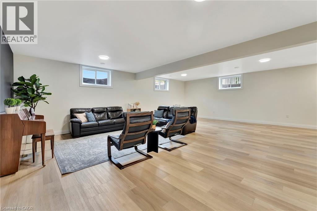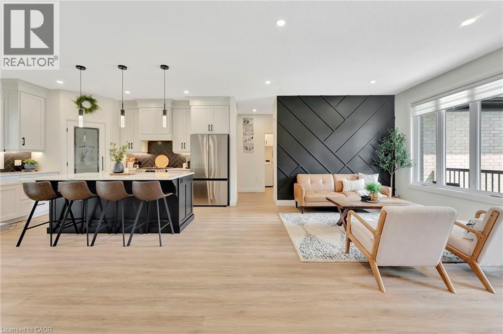 Wrapped in a striking blend of brick and hardy board, the exterior of this luxury bungalow is beautifully illuminated by soft exterior pot lighting, while a spacious triple car garage offers both curb appeal and everyday functionality. A charming covered front entry sets the tone with timeless character, leading into a bright, welcoming foyer where natural light streams through elegant double sidelights. Inside, the home opens to a stunning, open-concept layout with rich flooring that flows seamlessly throughout the main level. The living room stands as a warm and inviting focal point, anchored by a sophisticated accent wall that adds texture and depth to the space. At the heart of the home is a chef-inspired white kitchen, highlighted by a bold black-accented island and ceiling-height cabinetry that blends style with exceptional storage. A generously sized walk-in pantry enhances both function and flow. Adjacent to the kitchen, the dining area offers an oversized sliding walk-out to a spacious covered patio—perfect for effortless entertaining and year-round indoor-outdoor living. The main level features three thoughtfully placed bedrooms, offering comfort and privacy for the whole family. The primary suite serves as a true sanctuary, complete with a luxurious 5-piece ensuite featuring dual vanities, a deep soaker tub, and a glass-enclosed shower. Two additional bedrooms are complemented by a beautifully appointed 4-piece bathroom, while a stylish main floor laundry room provides added convenience. Downstairs, the fully finished lower level expands your living space with two additional large bedrooms and a full bathroom—ideal for teens, in-laws, or guests. A spacious rec room offers endless versatility, whether you're envisioning a home theatre, gym, or playroom. (id:4555)