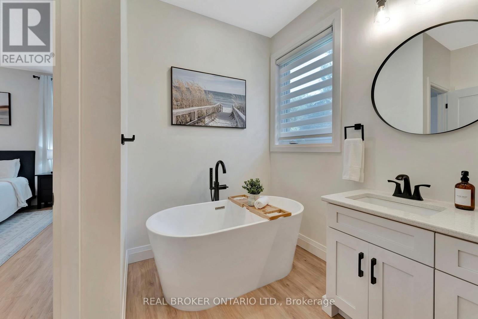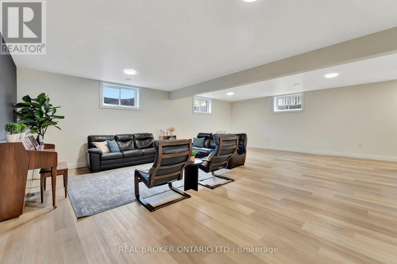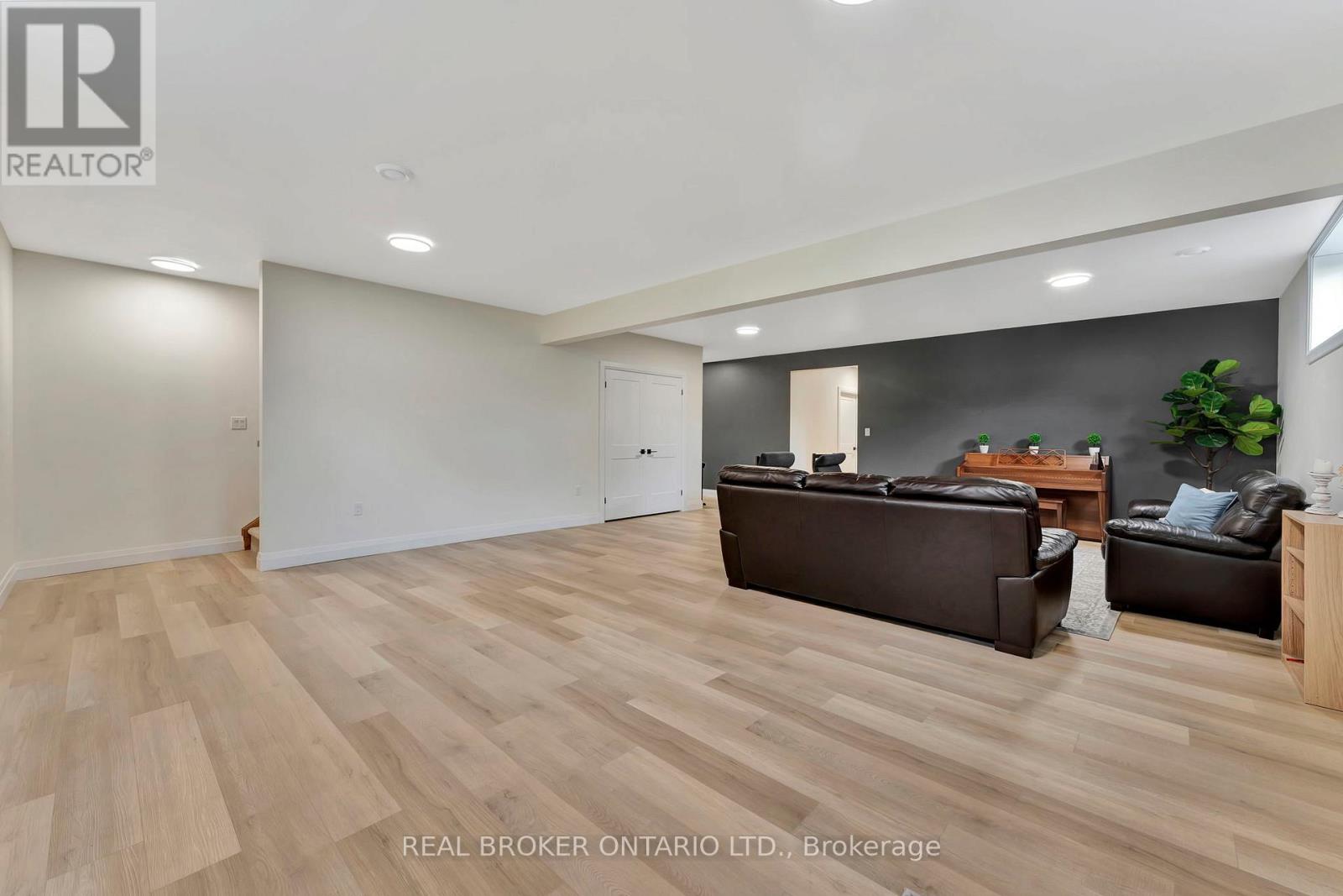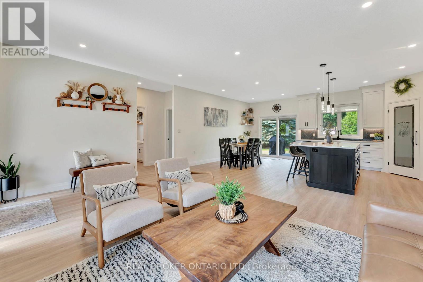 Wrapped in a striking blend of brick and hardy board, the exterior of this luxury bungalow is beautifully illuminated by soft exterior pot lighting, while a Wrapped in a striking blend of brick and hardy board, while a spacious triple car garage offers both curb appeal and everyday functionality. A charming covered front entry sets the tone with timeless character, leading into a bright, welcoming foyer where natural light streams through elegant double sidelights. Inside, the home opens to a stunning, open-concept layout with rich flooring that flows seamlessly throughout the main level. The living room stands as a warm and inviting focal point, anchored by a sophisticated accent wall that adds texture and depth to the space. At the heart of the home is a chef-inspired white kitchen, highlighted by a bold black-accented island and ceiling-height cabinetry that blends style with exceptional storage. A generously sized walk-in pantry enhances both function and flow. Adjacent to the kitchen, the dining area offers an oversized sliding walk-out to a spacious covered patio-perfect for effortless entertaining and year-round indoor-outdoor living. The main level features three thoughtfully placed bedrooms, offering comfort and privacy for the whole family. The primary suite serves as a true sanctuary, complete with a luxurious 5-piece ensuite featuring dual vanities, a deep soaker tub, and a glass-enclosed shower. Two additional bedrooms are complemented by a beautifully appointed 4-piece bathroom, while a stylish main floor laundry room provides added convenience. Downstairs, the fully finished lower level expands your living space with two additional large bedrooms and a full bathroom-ideal for teens, in-laws, or guests. A spacious rec room offers endless versatility, whether you're envisioning a home theatre, gym, or playroom. (id:4555)