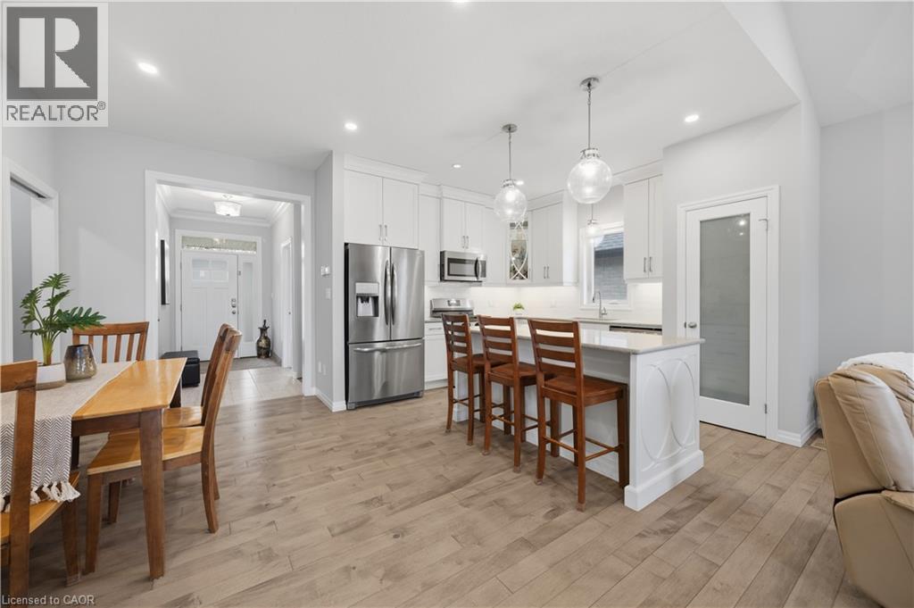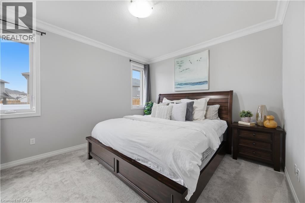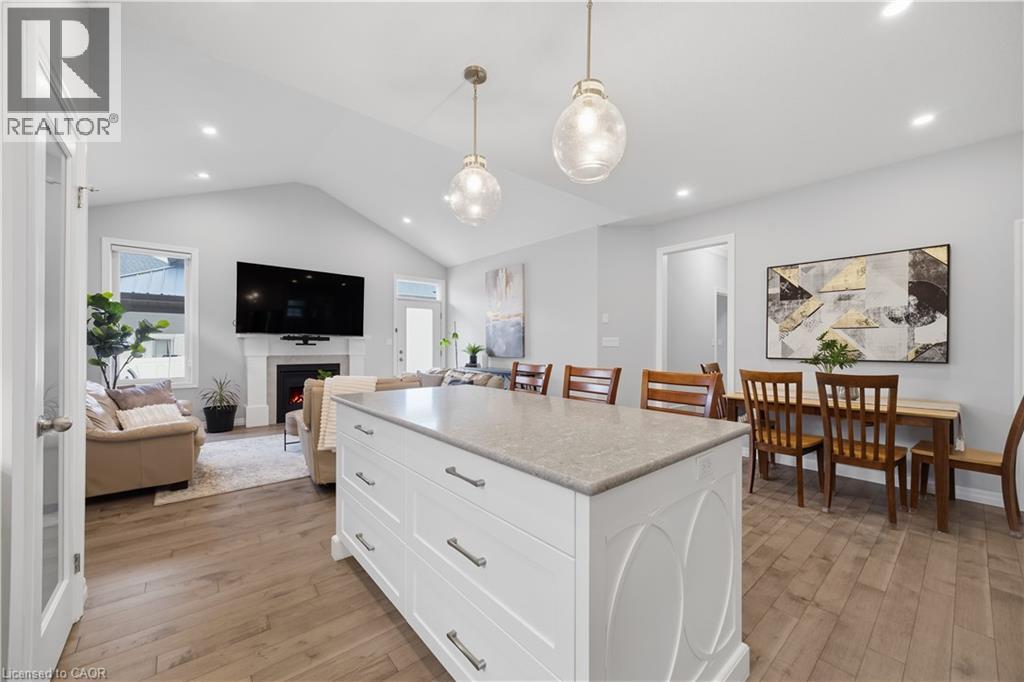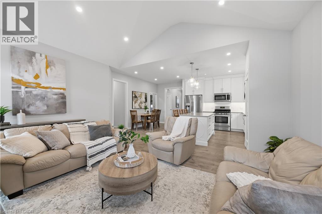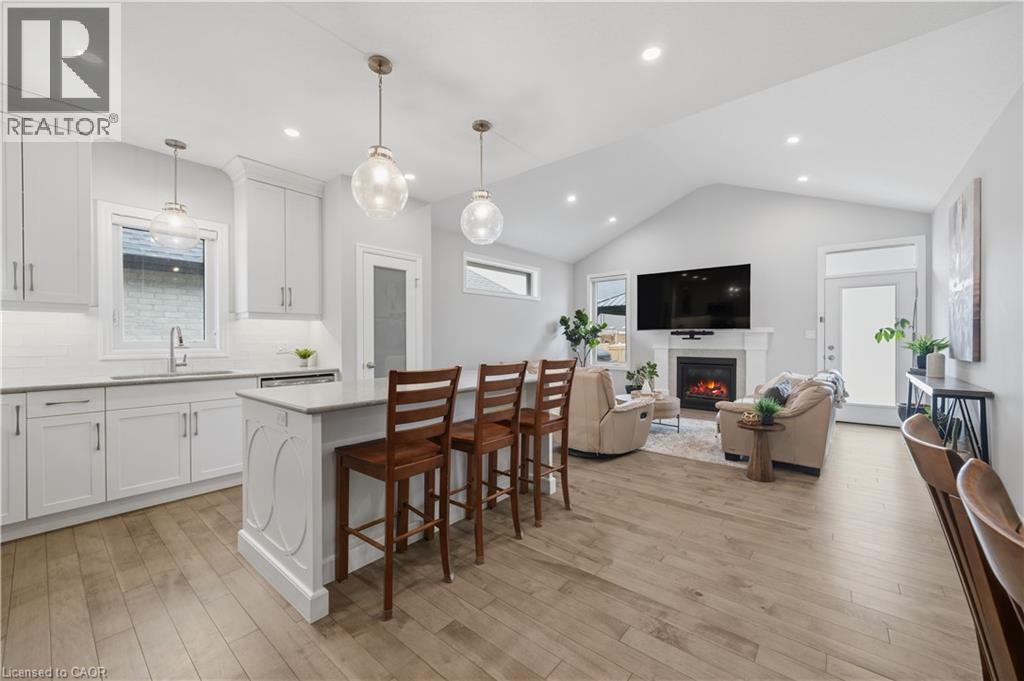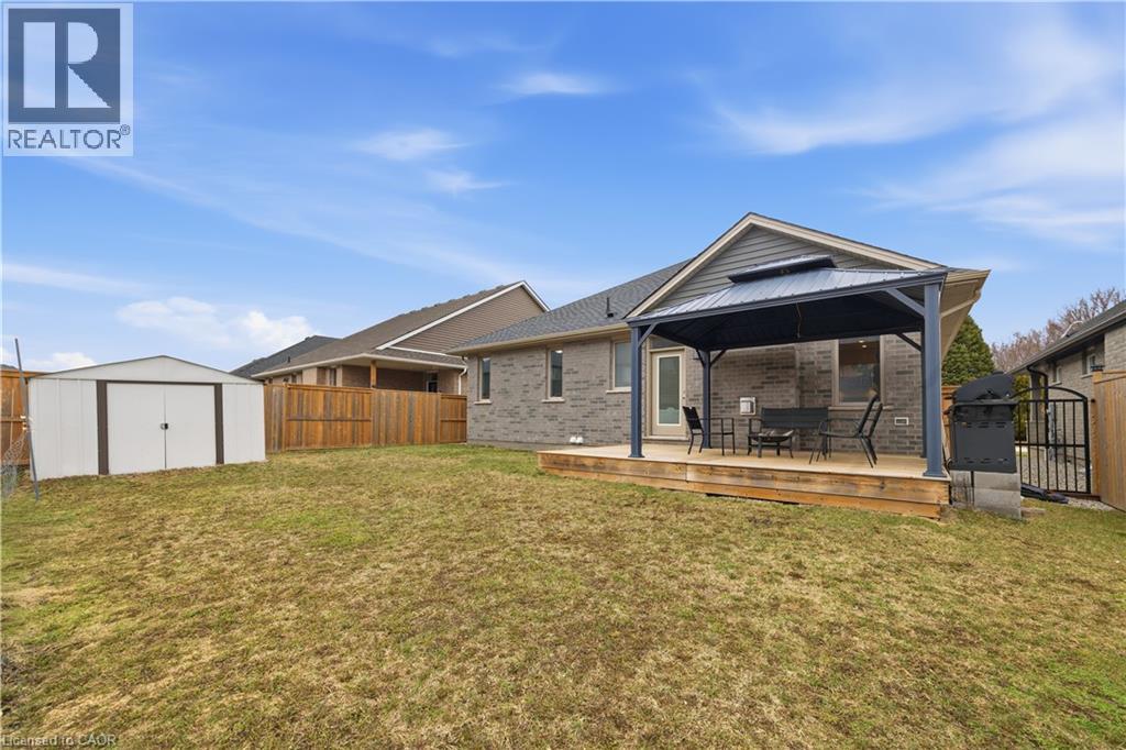 Welcome to this beautifully maintained 2020-built bungalow in a quiet, newer area of Tillsonburg and still under Tarion warranty. Offering 3+2 bedrooms and 3 full bathrooms, this home delivers the perfect blend of modern design, functionality, and low-maintenance living. Step inside to an inviting open-concept layout featuring 9-foot ceilings and a stunning cathedral-style living room filled with natural light. The kitchen is thoughtfully designed with stylish finishes, ample cabinetry, and a large island—ideal for everyday living and entertaining. The spacious living area is anchored by a cozy gas fireplace, creating a warm and welcoming atmosphere. The primary suite offers a private retreat complete with a walk-in closet and ensuite bath. Downstairs, the fully finished basement expands your living space with two additional bedrooms, a full bathroom, and plenty of storage, perfect for guests, family, or a home office setup. Outside, enjoy a fully usable backyard featuring a deck with gazebo and a storage shed—ideal for relaxing or hosting. The double car garage adds convenience. Located on a peaceful, low-traffic street, this home is a short distance to shopping, coffee shops, trails, and everyday amenities, making it a great option for downsizers or families alike. (id:4555)