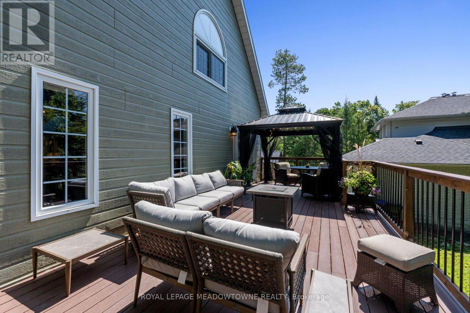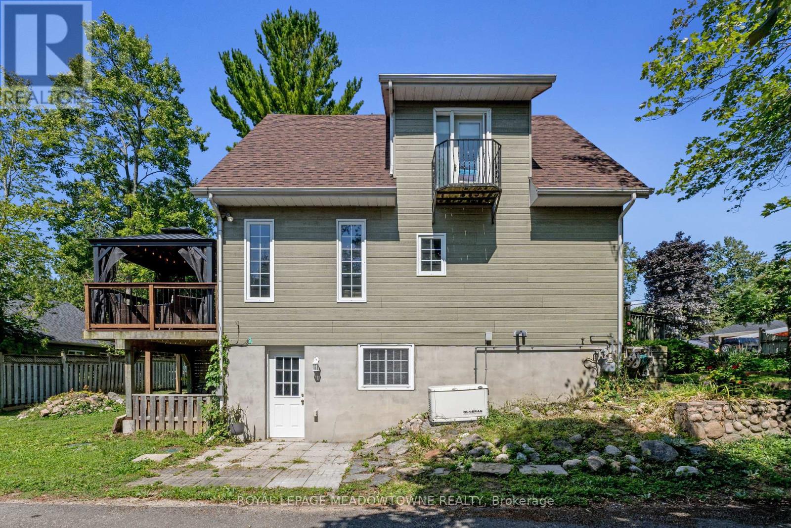 Discover the perfect blend of modern comfort and laid-back coastal living in this thoughtfully designed 3-bedroom home, showcasing tranquil lake views and standout curb appeal. Whether you're seeking a year-round residence or a weekend escape, this home is crafted for effortless living, entertaining, and fully embracing the beachside lifestyle. The open-concept main floor impresses with soaring cathedral ceilings, rich hardwood floors, and expansive windows that flood the space with natural light. A welcoming front sitting area creates an inviting first impression, while the beautifully appointed kitchen-anchored by a custom live-edge dining table-flows seamlessly into a private side yard, ideal for summer lounging or alfresco dining. French doors lead to a generous composite deck featuring a hard-top gazebo and built-in gas fireplace, offering a stylish setting for year-round gatherings. Upstairs, a bright loft-style primary retreat delivers spa-inspired comfort with its private ensuite and sweeping lake views. The lower level, complete with its own entrance and walk-out patio, provides versatile living space including an oversized recreation room, a third bedroom or home office, and a spacious laundry and storage area. Just steps from the sandy shores of Woodland Beach and Edmore Beach, this exceptional property also offers ample private parking, a Generac whole-home generator, high-speed internet, and convenient garbage pickup-everything you need for easy, carefree coastal living. (id:4555)