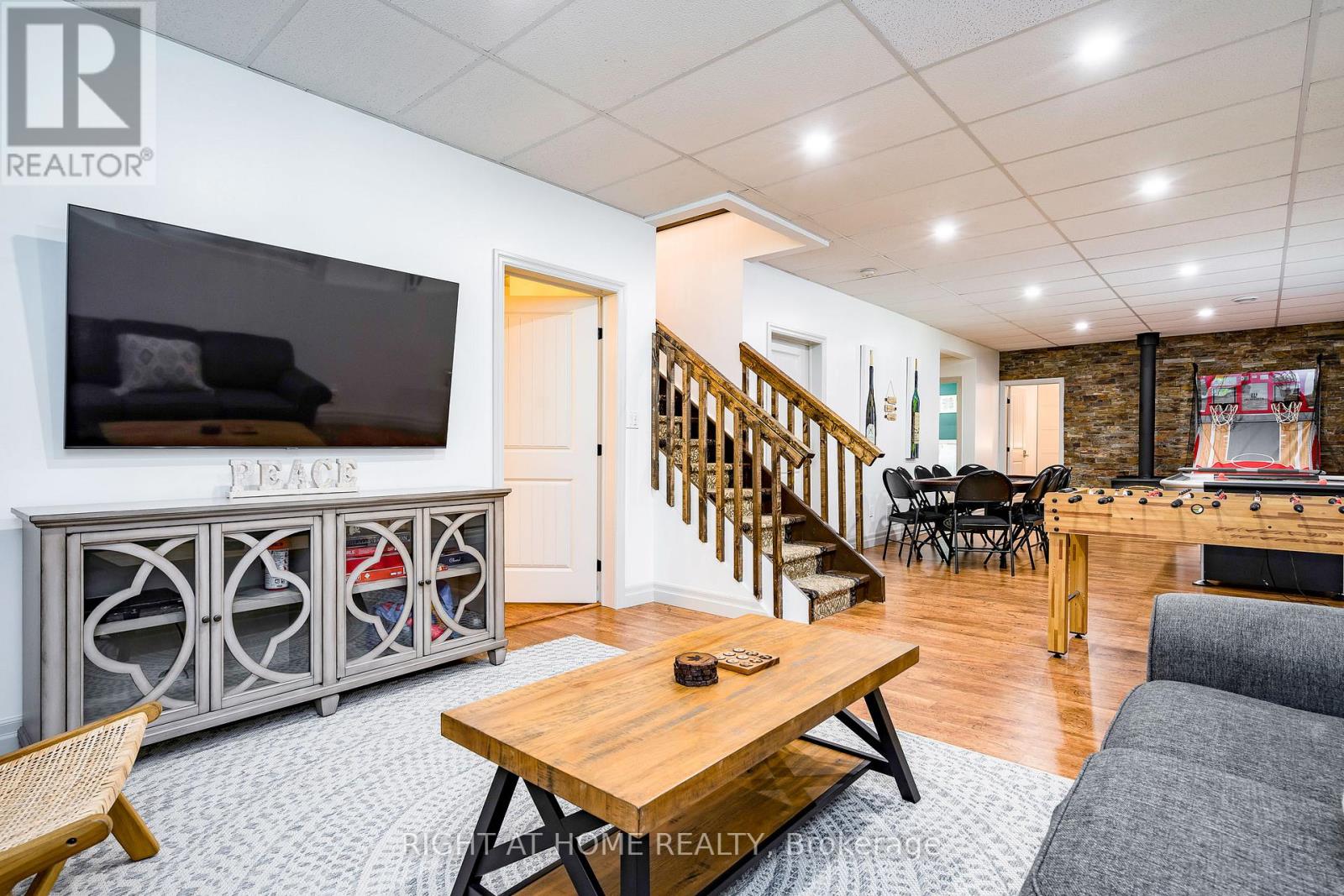 Summer is approaching! Escape to this beautiful property surrounded by nature, just a relaxing 15-minute walk to Lafontaine Beach. With 2,740 sq ft of living space, this open-concept home is bright, inviting, and perfect for both quiet living and entertaining. Enjoy large bedrooms, cozy features, and seamless indoor-outdoor flow with walkouts to a spacious back deck-ideal for dining, relaxing, or hosting under the stars.The bright lower level offers high ceilings, big windows, a generous rec room, and a games area-perfect for movie nights and gatherings. Outside, unwind in the hot tub, fire up the BBQ with the gas hook-up, or enjoy evenings around the fire pit. The attached 1-car garage, detached 2-car garage, and large driveway provide ample parking and hobby space.Recent updates include: furnace (2026, owned) dishwasher (2024), hot water tank (2024, owned), stove (2021), one set of washer/dryer (2021), lighting fixtures (2021), hot tub (2021), locks (2021), interior paint & feature walls (2021). The double car garage was upgraded in November 2025 with insulation, drywall, taping, paint, new pot lights, and two new automatic garage door openers, detached garage has it's own electrical panel. Water is included in the property tax bill. Photos are from when the property was rented on a short-term rental basis - currently not staged (id:4555)