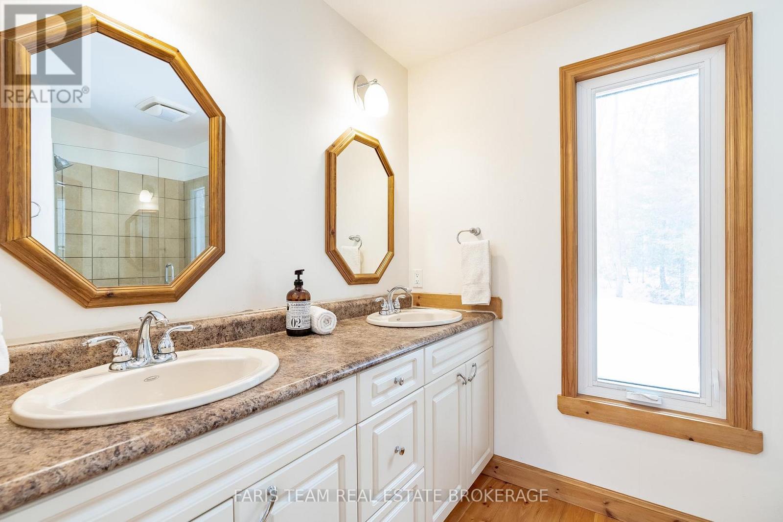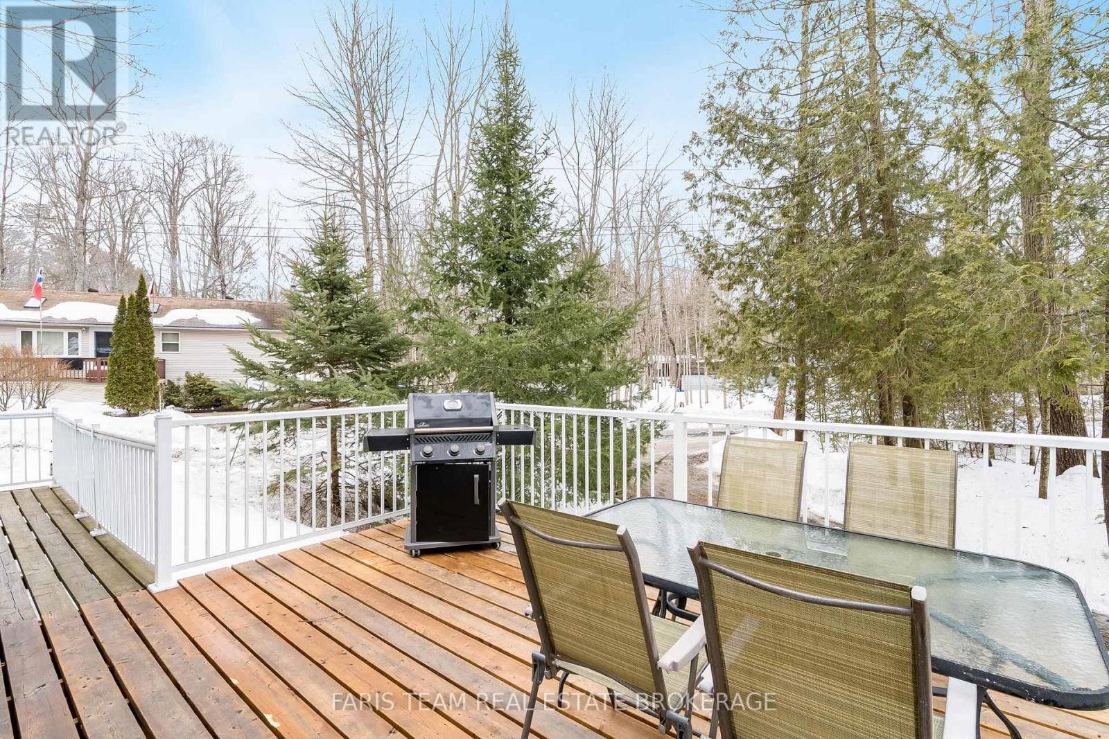 Top 5 Reasons You Will Love This Home: 1) Appreciate exclusive access to the Belle Eau Claire Beach Association, a beautiful sandy beach on Georgian Bay, just a short walk from the end of the road, offering you all the magic of waterfront living, including the sunsets, the swimming, and the summer days that stretch on forever 2) The spacious primary bedroom addition gives you room to truly unwind, with your own private deck for morning coffee or starlit evenings, and a well-appointed ensuite featuring double sinks and a walk-in shower 3) Step inside and the warmth hits you immediately, with rich wood finishes throughout, a cozy wood stove that crackles on cool evenings, and large windows that flood the space with natural light, creating a home that feels both rustic and refreshed 4) Set on a generous double lot, this property gives you breathing room both inside and out, with an exceptional garage complete with tandem parking for two vehicles, a dedicated workshop area for projects and hobbies, and additional covered space perfect for storing a boat or recreational equipment 5) Just steps from the shores of Georgian Bay and only about 10 minutes from Midland, this location places shopping, restaurants, marinas, and everyday amenities all within easy reach. 1,959 above grade sq.ft. plus a finished basement. *Please note some images have been virtually staged to show the potential of the home. (id:4555)