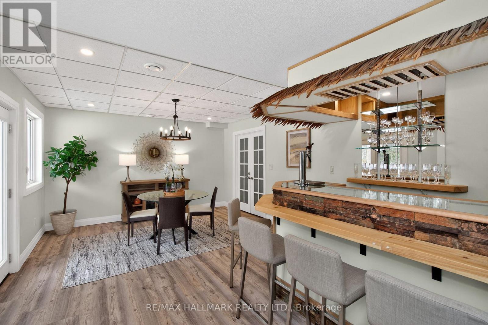 Tucked Away On A Quiet Court Where Forest Meets Fresh Air - A Lifestyle Retreat. Just A 5 Minute Walk To Georgian Bay Beaches (Public Access @ 123 Sawlog Point Rd). Situated On Generous 0.30-Acre Lot (Flat Backyard), Providing Exceptional Privacy, Space, & Room To Breathe. Built In 2008, The Home Features 4+1 Bedrooms & 4 R.E.N.O.V.A.T.E.D Bathrooms(2022), Making It Ideal For Retirees, Families, Multigenerational Living- Ample Space Approx 1800 Sq Ft P.L.U.S - Finished *WALKOUT* Basement(2023) W 1,100 Sq Ft! (2800 Sq Ft TOTAL -MPAC).Renovated Open-Concept Kitchen (2016/2026)W/ Newer Stainless Steel Appliances(Frigidaire Gallery French Fridge = 2016/ Gas Range =2026) Center Island + Seating & Quartz Counters. Huge Dining Area W/ Seating For 8! Family Rm W/ Soaring 27-Foot Cathedral Cedar Ceilings. Expansive Floor To Ceiling Windows Floods The Space With Natural Light, While A Dramatic Floor-To-Ceiling Stone, Wood-Burning Fireplace W/ Napolean Insert, Creates A Warm & Inviting Focal Point. The Main Floor Offers Exceptional Functionality W/ **MAIN FLOOR BEDROOM + 3 PEICE BATH**(See Floor Plan) Providing Stair-Free Living Options, Along W/ Main-Floor Laundry & Direct Access To 458 Sq Ft Double-Car Garage. Hardwood, Laminate, & Ceramic Flooring Flow Throughout-No Carpet. The Finished *WALK- OUT* Basement Adds Valuable Living Space, Featuring: Family Room + Games Room (THINK POOL TABLE!), Wet Bar W/ Beer Tap Hookup+ Dining Area, Bedroom & Full Bathroom-Perfect For Guests Or In Laws! Step Outside To A Fully Fenced Backyard W/Wood Deck + Covered Porch & Firepit Area , Ideal For Summer Gatherings. Located Just North Of The GTA - Perfect Balance Of Tranquility & Convenience. Waterfront Trails & Public Beaches Within Walking Distance, W/ Awenda Provincial Park, Marinas, & Everyday Amenities 15 Min Away! Municipal Water & Natural Gas! 200 Amp Service! House Presented as Fully Furnished So You Can Truly Envision The Space! (Only Pool Table & Outdoor Pictures Virtually Altered) (id:4555)