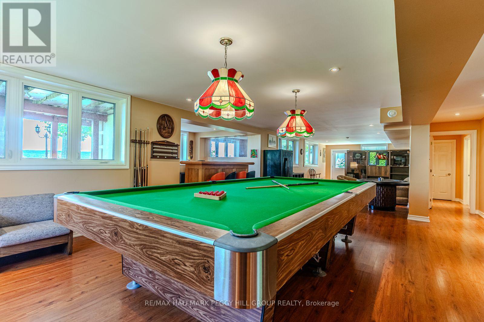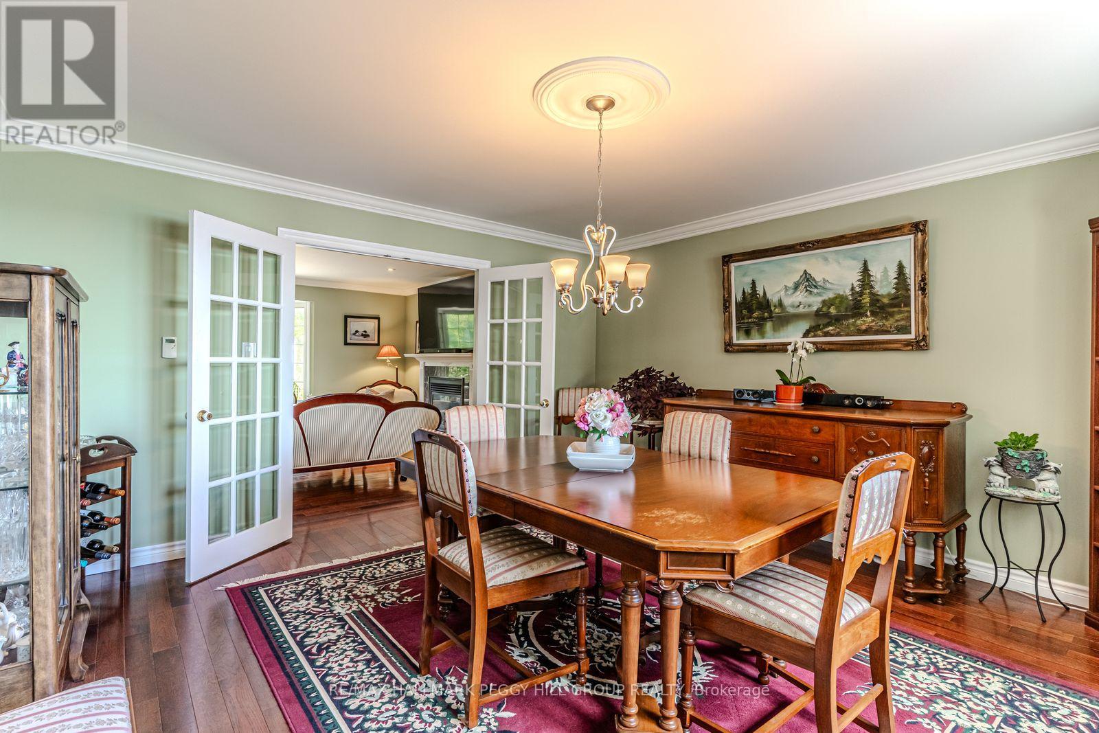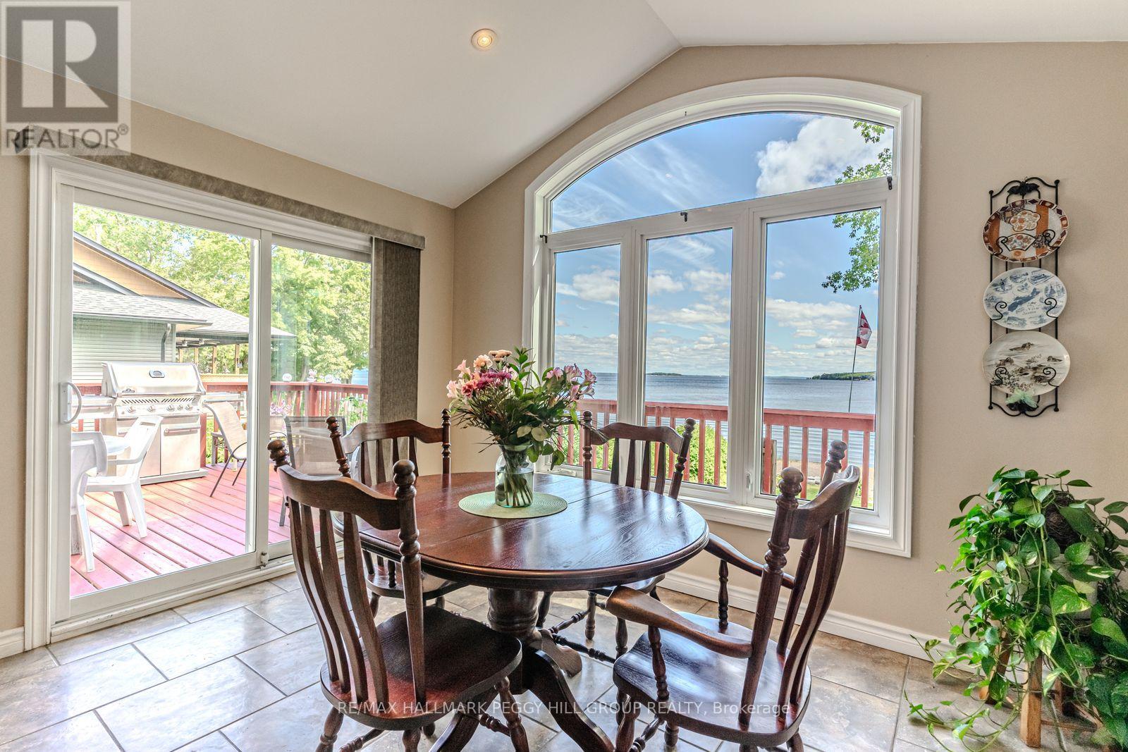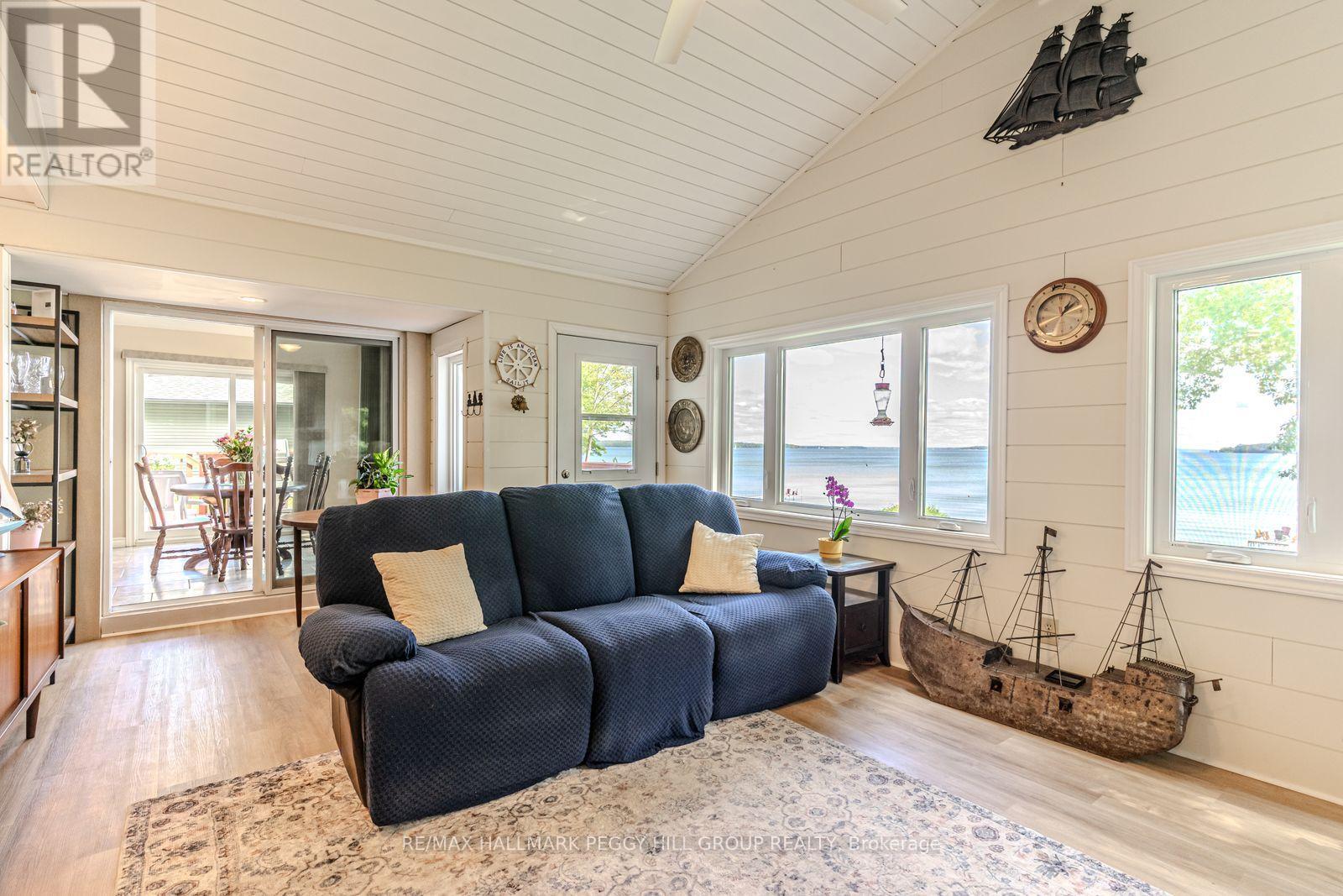 LUXURIOUS GEORGIAN BAY ESTATE WITH 83 FT OF SANDY SHORELINE, SECOND COTTAGE, DETACHED GARAGE & ALMOST HALF AN ACRE! 83 feet of Georgian Bay frontage with eastern exposure presents a private sandy beach with gradual entry, clear waters, and sunrise views that define the waterfront lifestyle. Set on nearly half an acre with a large back deck, the property is further enhanced by an expansive L-shaped dock with a bump-out that extends into the bay, offering an impressive setting for entertaining, lounging, and docking motorcraft. Located on a coveted cul-de-sac along sought-after Peek-A-Boo Trail and just steps from Tee Pee Point Park, the property delivers exclusivity and tranquillity while remaining approximately 10 minutes to local essentials and a short drive to Penetanguishene and Midland for expanded amenities. The primary residence introduces itself with a stately front entry, covered porch, manicured landscaping, and a detached two-car garage with six-car driveway parking. The kitchen is appointed with rich wood cabinetry topped with crown, granite counters, stainless steel appliances, and a built-in desk area. The living room features a bay window, crown moulding, fireplace, and French doors, while the spectacular sunroom boasts soaring ceilings, shiplap accents, pot lights, a dramatic fireplace, and a walkout. The primary bedroom highlights its own walkout to the sunroom, a walk-in closet, and a spa-like 6-piece ensuite. Extending the living space, the finished walkout basement showcases a massive rec room with a third fireplace, and room for a pool table, along with a fourth bedroom and full bath, with the entire level opening directly to the yard and waterfront. A versatile second cottage with two bedrooms, a bathroom, a kitchen and a living area, and a private deck enhances the property's functionality for family and guests, while main floor laundry, in-floor radiant heating, central vac, and ERV/HRV systems add to the overall comfort. (id:4555)