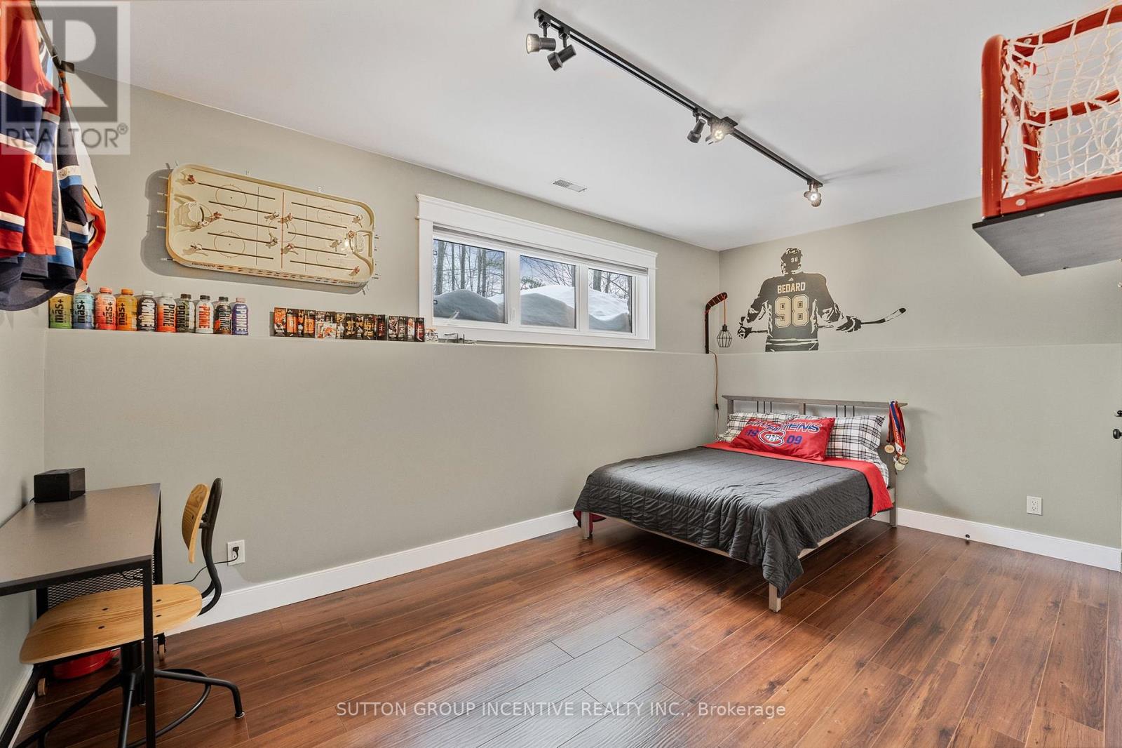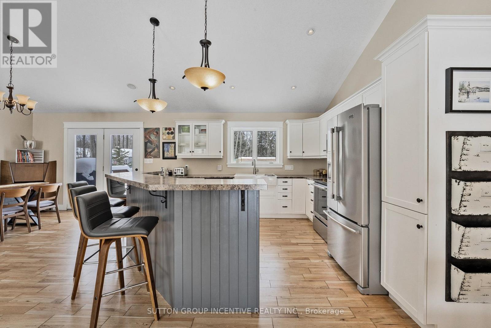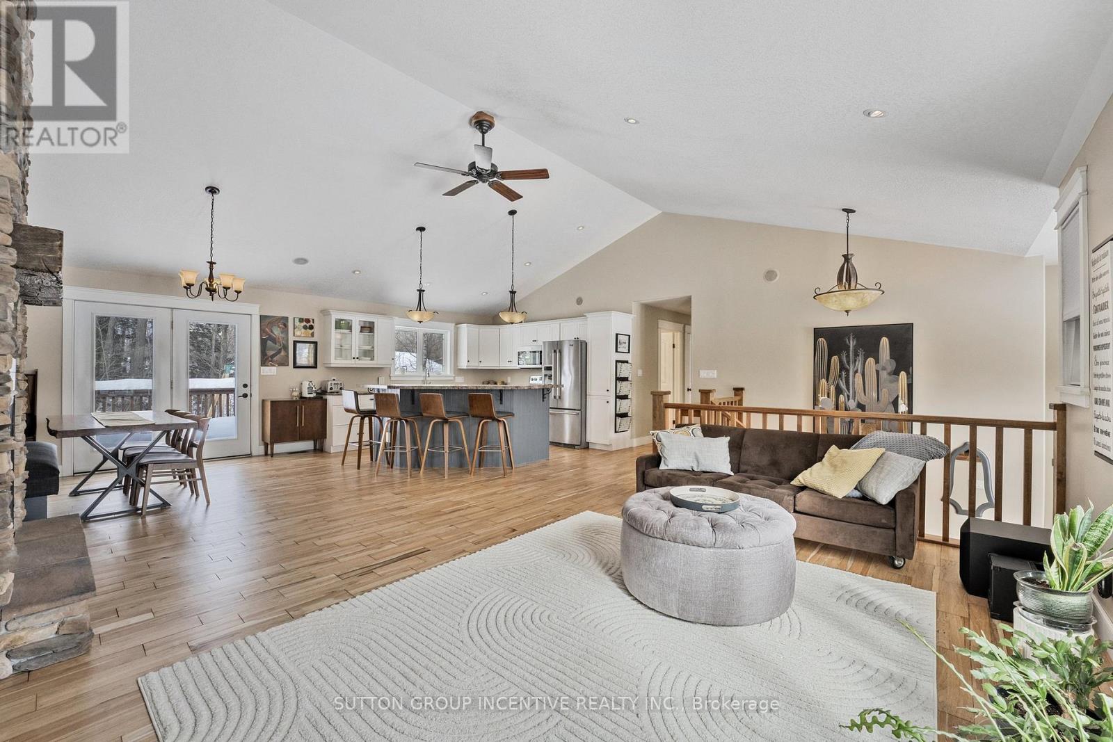 This stunning, custom-built raised bungalow boasts 4 spacious bedrooms & 2 bathrooms, offering over 2500 sq ft of thoughtfully designed living space. Set on a premium, beautifully landscaped estate lot in the scenic Tiny Township, this home is a true gem. From the moment you enter, the attention to detail is evident, with a seamless blend of modern decor & functionality throughout. The main level features an open-concept layout, where a striking floor-to-ceiling gas fireplace takes center stage in the expansive living area, complemented by sleek pot-lights & soaring vaulted ceilings. The cozy family room provides a perfect retreat, while the kitchen, complete with a large island, adds a touch of elegance. A bright & airy breakfast nook leads out to an enormous deck, perfect for outdoor dining or relaxing, with views of the private, treed backyard, offering peace & tranquility. The primary bedroom is a private sanctuary, featuring a walk-in closet & semi-ensuite privileges. Two additional well-sized bedrooms & a stylish 4-pc bathroom with a separate shower & luxurious soaker tub provide ample space for family and guests. Hardwood floors flow seamlessly throughout the main level, enhancing the homes elegant feel. On the lower level, you'll find a massive rec room ideal for entertaining, along with a 4th bedroom, a convenient laundry room, & a 3-pc bathroom. The mudroom, with its separate entrance leading to the garage, adds both functionality & convenience. The garage itself is fully equipped with a storage loft, two man doors, two garage door openers, & hot and cold water. Additional features include central vac, central air conditioning, a sprinkler system, & built-in Felton speakers on the main level. A natural gas line is ready for your BBQ, & soffit lighting adds a charming touch to the exterior. All of this is ideally located just moments from the beaches & breathtaking shores of Georgian Bay, offering the perfect blend of privacy, luxury, & nature. (id:4555)