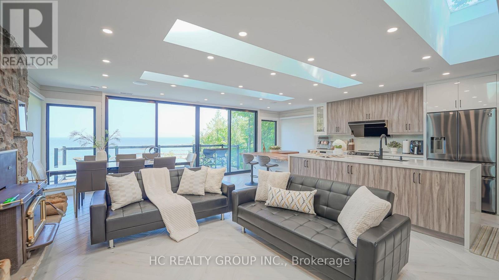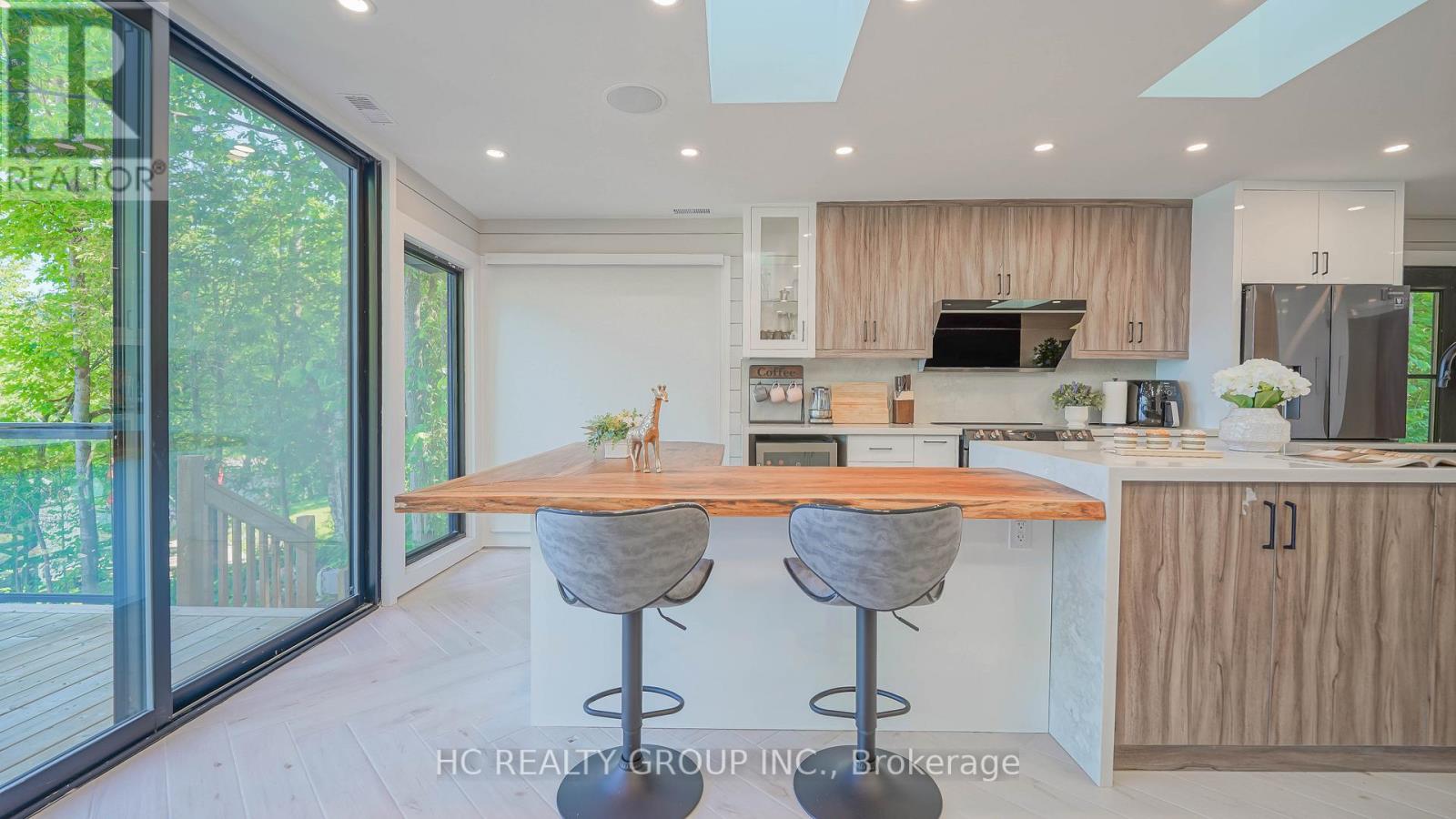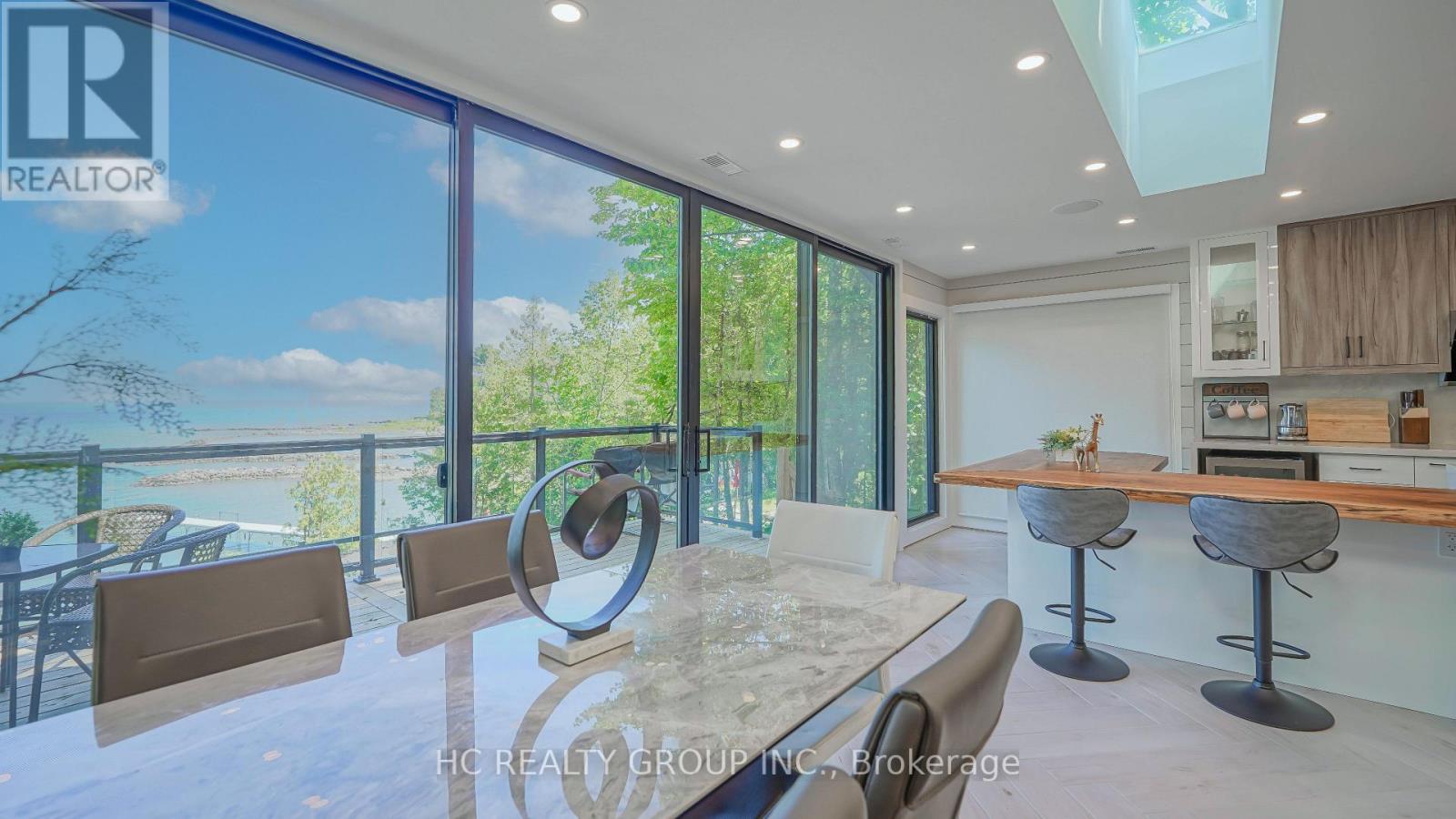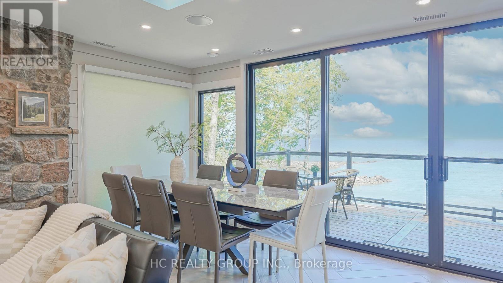 A rare opportunity to own a crystal-clear, year-round waterfront property, surrounded by multi-million-dollar homes. This brand-new cozy cottage was just completed last summer, with only the foundation and original fireplace featuring a handmade stone wall retained. It took four years to complete and is an excellent quality build. Spray foam insulation covers the entire roof, heated floors are installed throughout the house, and the modern kitchen features high-end quartz countertops and backsplash finishes. A handmade black walnut island overlooks the bay, and numerous built-in wall cabinets provide ample storage space.this home showcases a rare four-tier waterfront design - featuring a main deck at kitchen level, two interlock terraces supported by retaining walls for BBQ and fireside living, and a sandy shoreline that leads directly into the water,The waterfront features an artificial sandy area near the water, perfect for children to play. All indoor and outdoor furniture, as seen during the showing, are included. Use of the garage is to be arranged with the landlord. Book your appointment today. (id:4555)
