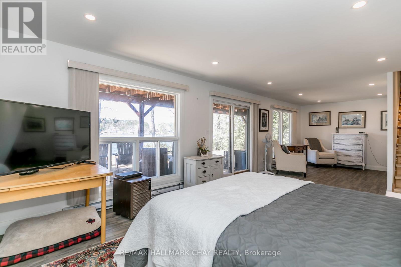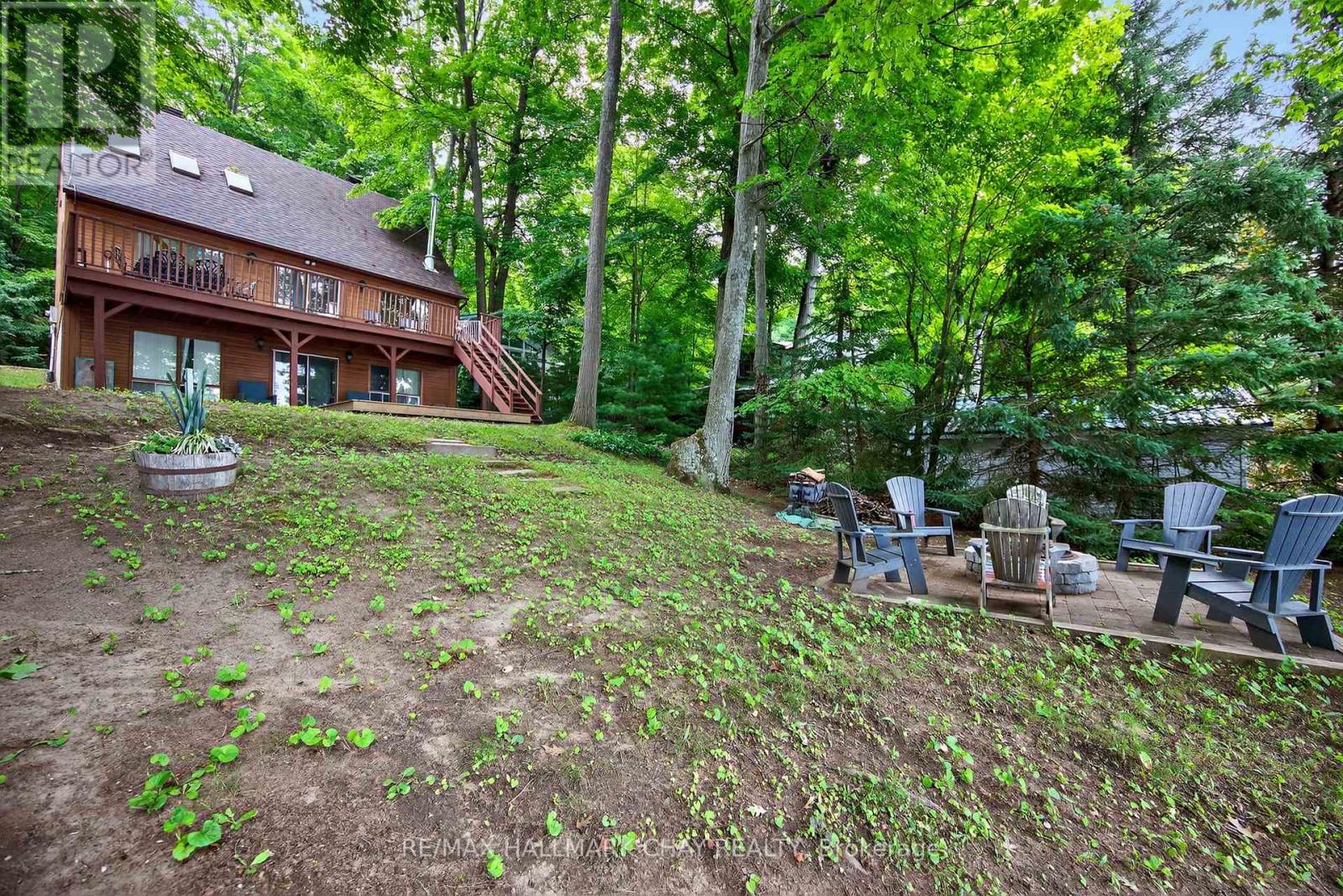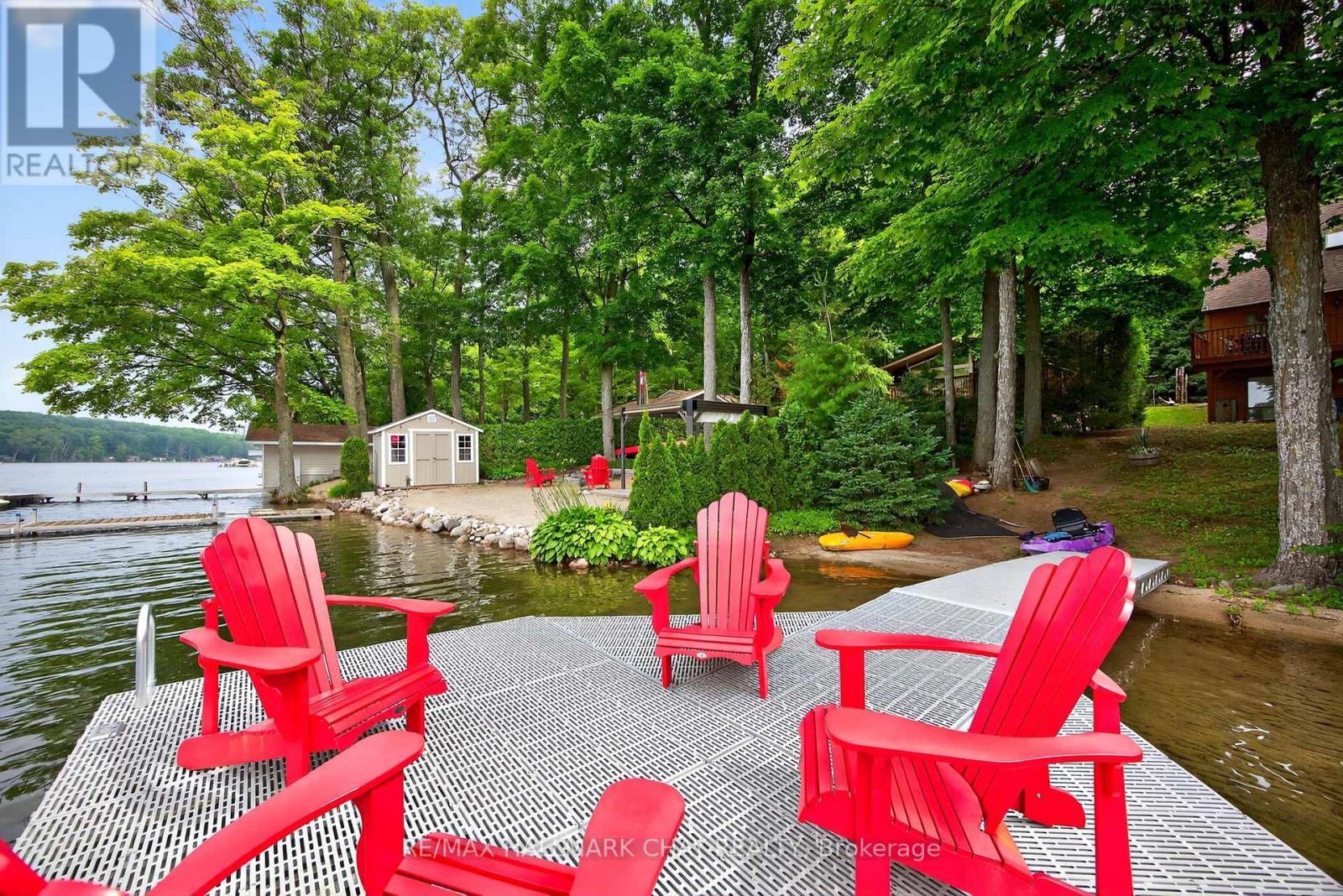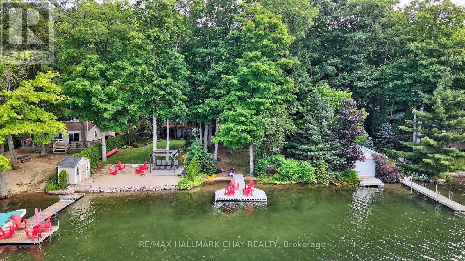 Nestled along 50 feet of pristine shoreline with coveted western exposure, this enchanting 3-bedroom, 3-bathroom chalet-style cottage offers the perfect blend of charm, comfort, and functionality. Set on the tranquil waters of Farlain Lake, the property showcases breathtaking sunsets and serene lake views year-round. The main level features a bright, open-concept living and dining area with soaring cathedral ceilings and skylights that flood the space with natural light. A spacious kitchen, cozy bedroom, convenient laundry room, and a well-appointed 3-piece bathroom complete this level. Upstairs, two generously sized bedrooms provide ample space for family or guests and share a stylish 4-piece bathroom. The recently renovated lower level adds exceptional versatility, featuring a new 3-piece bath, a flexible space easily converted into a fourth bedroom, and a walkout leading to a newer deck-perfect for seamless indoor-outdoor living. Enjoy year-round comfort with a charming wood stove for cozy winter evenings, and in the warmer months, relax by the water from your private dock. Whether you're entertaining or unwinding in peaceful lakeside surroundings, this property offers an inviting retreat for every season. (id:4555)