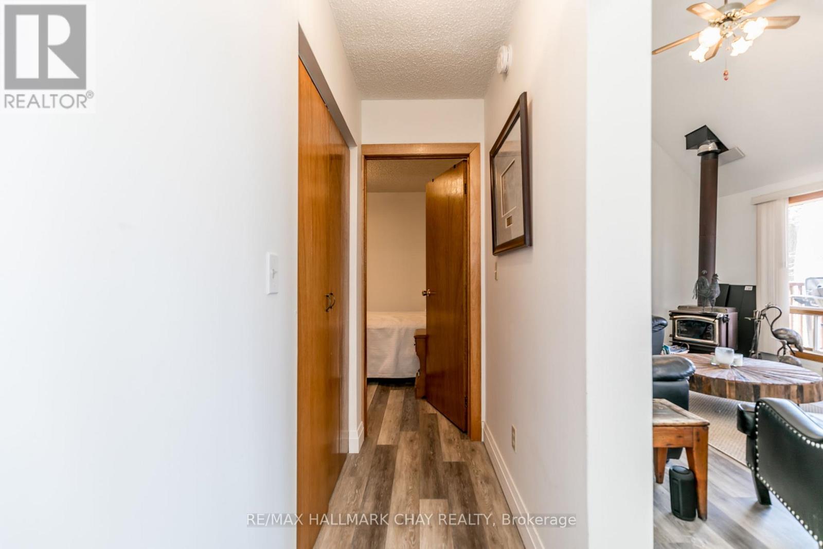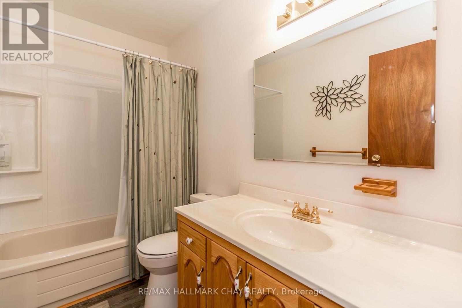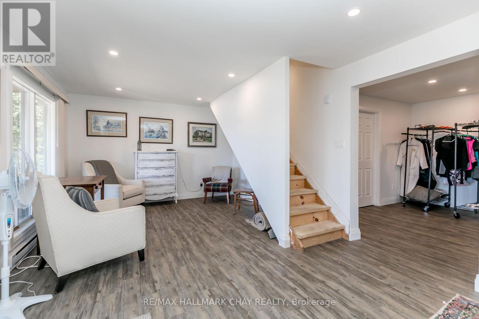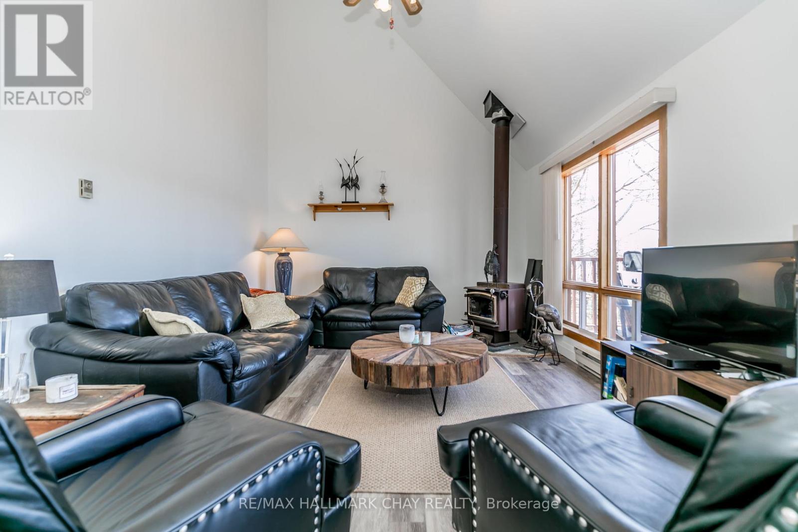 Nestled along 50 feet of pristine shoreline with coveted western exposure, this enchanting 3-bedroom, 3-bathroom chalet-style cottage offers the perfect blend of charm, comfort, and functionality. Set on the tranquil waters of Farlain Lake, the property showcases breathtaking sunsets and serene lake views year-round. The main level features a bright, open-concept living and dining area with soaring cathedral ceilings and skylights that flood the space with natural light. A spacious kitchen, cozy bedroom, convenient laundry room, and a well-appointed 3-piece bathroom complete this level. Upstairs, two generously sized bedrooms provide ample space for family or guests and share a stylish 4-piece bathroom. The recently renovated lower level adds exceptional versatility, featuring a new 3-piece bath, a flexible space easily converted into a fourth bedroom, and a walkout leading to a newer deck-perfect for seamless indoor-outdoor living. Enjoy year-round comfort with a charming wood stove for cozy winter evenings, and in the warmer months, relax by the water from your private dock. Whether you're entertaining or unwinding in peaceful lakeside surroundings, this property offers an inviting retreat for every season. (id:4555)