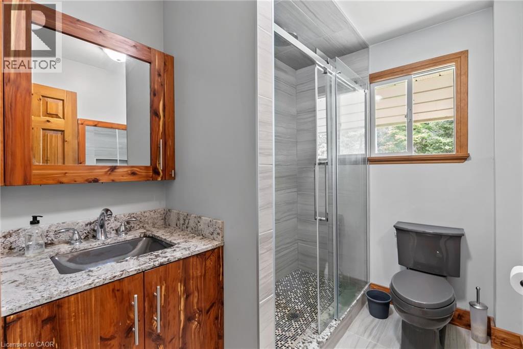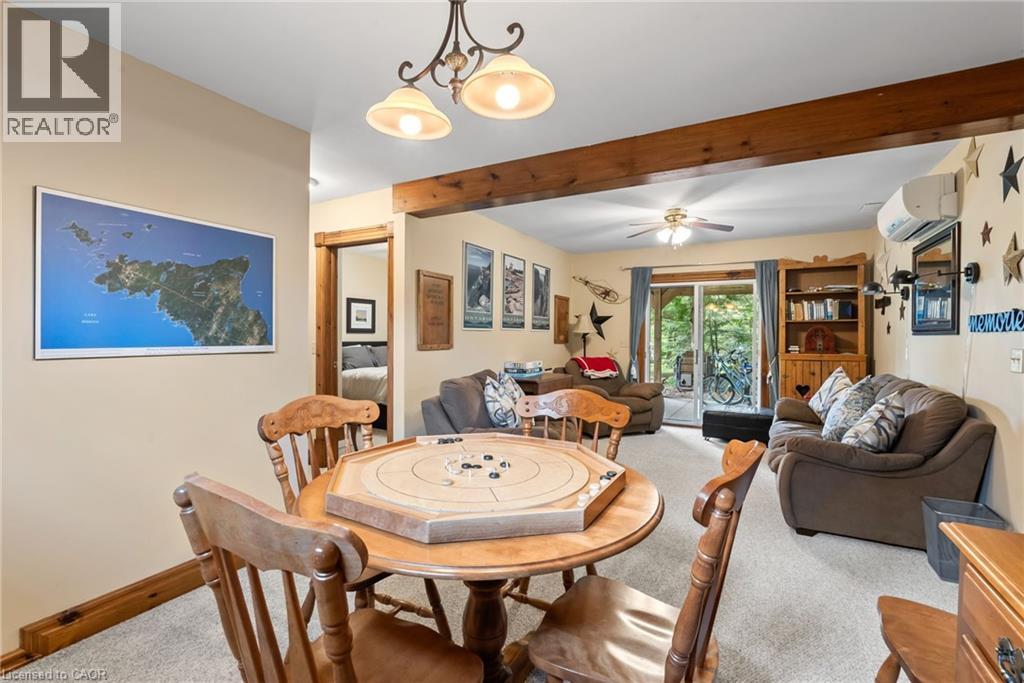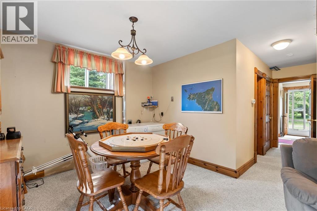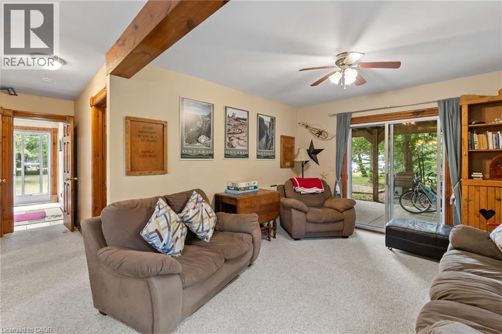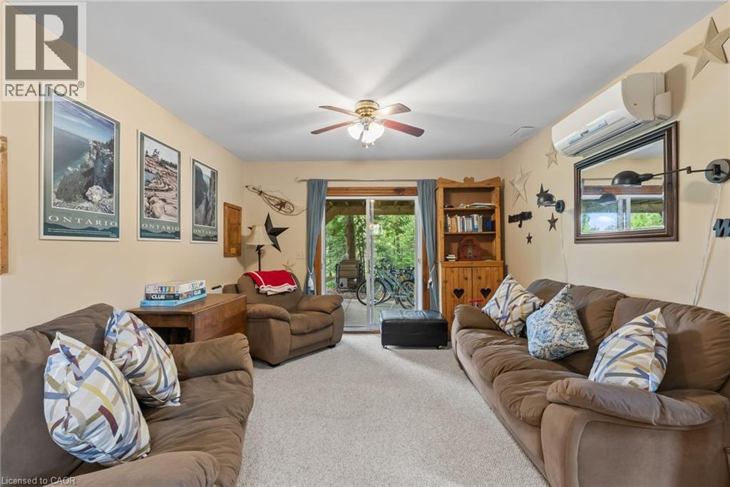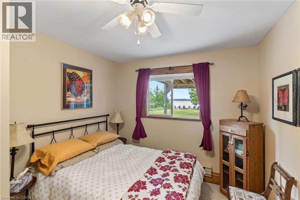 YEAR ROUND WATERFRONT LIVING IN TOBERMORY. This beautiful property is fully winterized and lovingly maintained by current owners, who have exclusively enjoyed it for their private use for many years. You'll have your own view of the Northern Bruce's famous stunning sunsets from your large back deck or seated by the fire right at the water. When you enter the residence from the spacious driveway you will find two bedrooms, an open living room, eating area and laundry space w/walkout to covered patio, plus a 3 pc bathroom. Upstairs is the large primary bedroom, recently renovated bathroom with heated floors, large, bright open living room/dining/kitchen that opens out onto your huge deck w/unobstructed views. All interior doors & trim handcrafted from local pine. The two levels could easily be separated for in-law suite. Heating and A/C provided by 3 high efficiency Mitsubishi mini-split air-sourced heat pumps. Heating back up provided by baseboard heaters & propane fireplace. Massive outdoor space with large flat open area suitable for outdoor sports & activities. Enjoy your own butterfly sanctuary in the large pollinator garden. New Roof in 2014, Exterior Professionally painted in 2025. Large Storage Shed. Most Furniture in included. Very quiet/private location & a short drive to the world famous Grotto, Singing Sands Beach or into town where you will find shopping, restaurants, boat tours & more. This is a truly exceptional property. (id:4555)