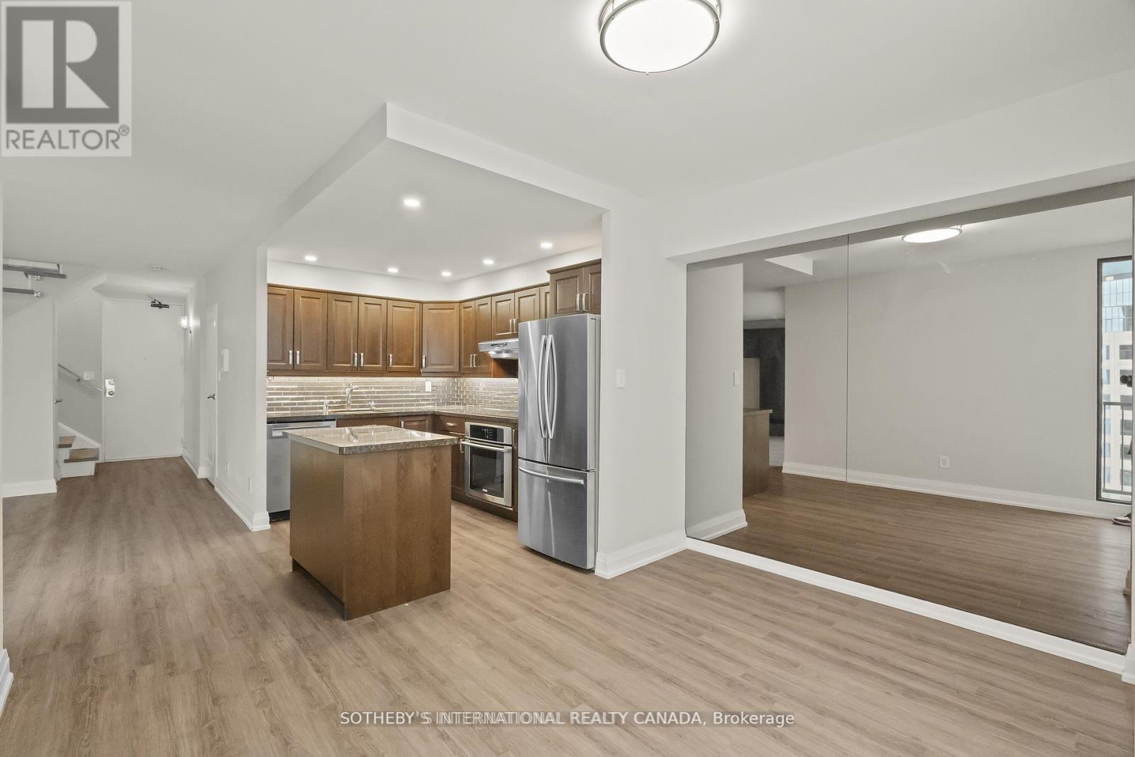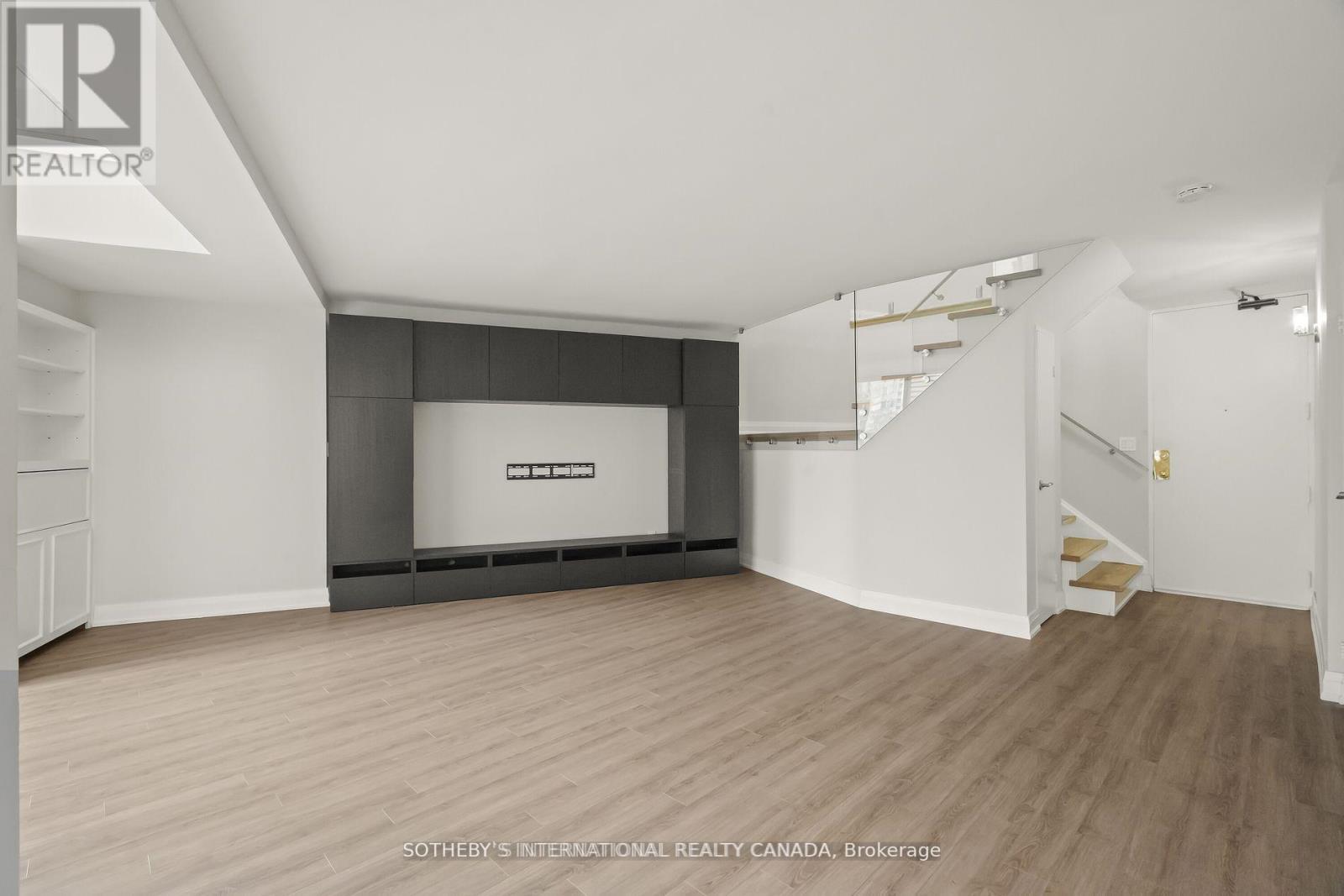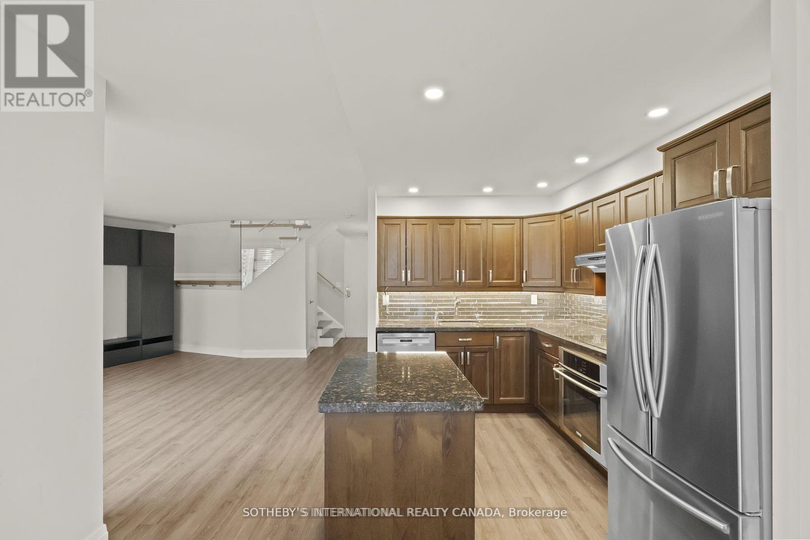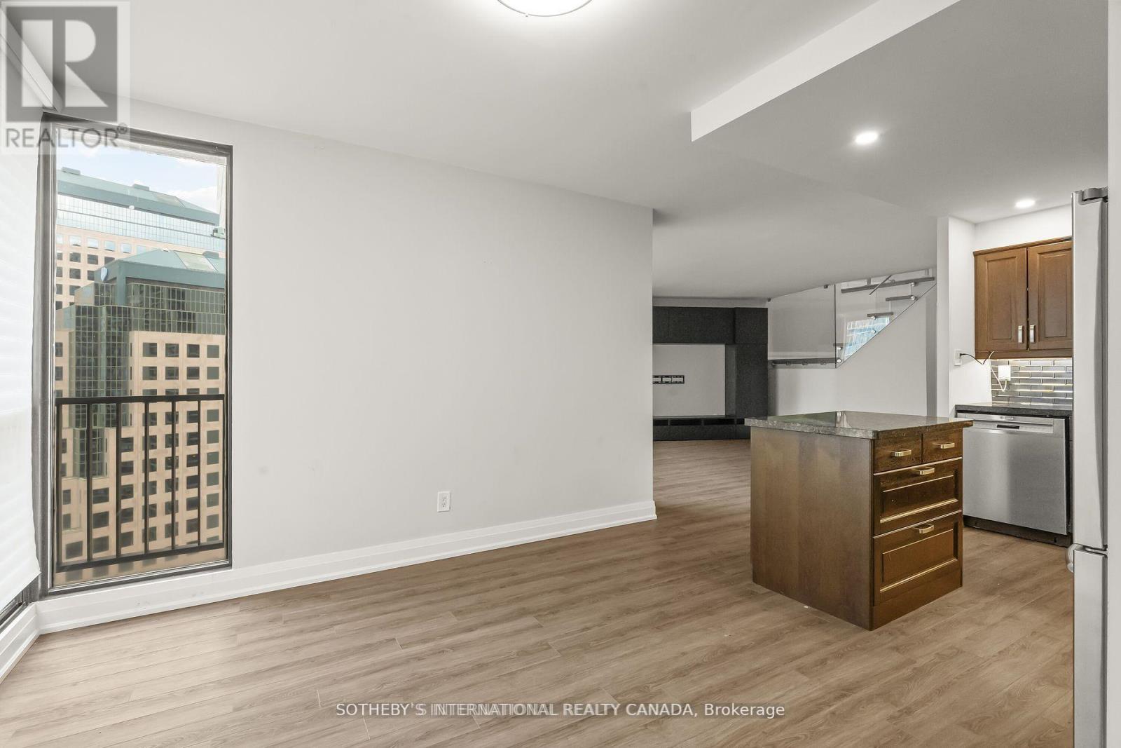 Immerse yourself in spectacular waterfront luxury living at Harbour Square with this two-storey, quality-updated and redesigned suite spanning approximately 1500 sq ft. The stunning stainless steel and glass staircase welcomes you into a space where modern elegance meets functionality. Enjoy the seamless blend of design and technology, 2 1/2 baths, ensuite laundry in 2pc guest bathroom, and an eat-in kitchen equipped with high-end appliances. Revel in the convenience of smartphone-operable remote blinds and Lutron lighting, while recessed lighting in the kitchen adds a touch of sophistication. Luxury vinyl flooring flows throughout, complemented by extra storage cleverly tucked under the staircase. Get a restful nights sleep in the Primary suite offering a large closet with built-ins and a spa-like 3pc ensuite bath. There is a second floor open-concept study/den, 2nd bedroom with large closet with organizers, large broom closet and linen closet and 4pc bath. Capture beautiful northwest city views from the comfort of your home. Elevate your lifestyle with this meticulously crafted residence that redefines contemporary urban living on the waterfront. Excellent building amenities include Party Room, fully equipped Gym, Indoor Pool on 35th floor, and Concierge Services. (id:4555)