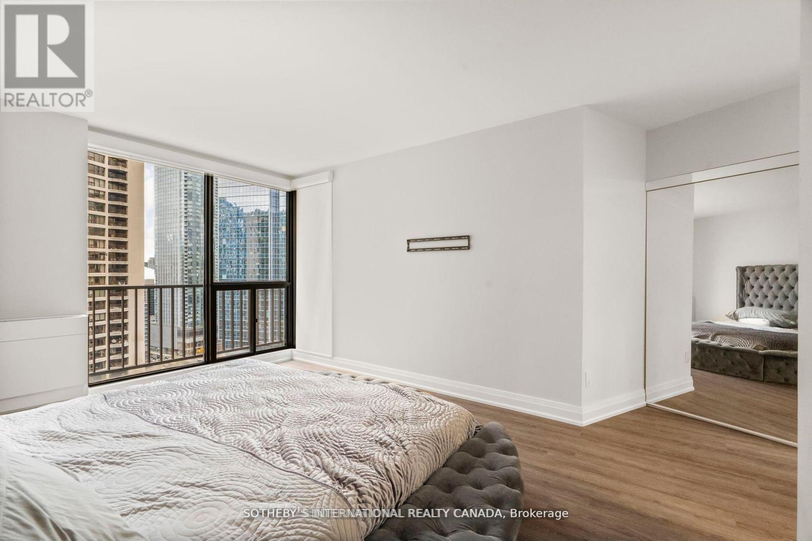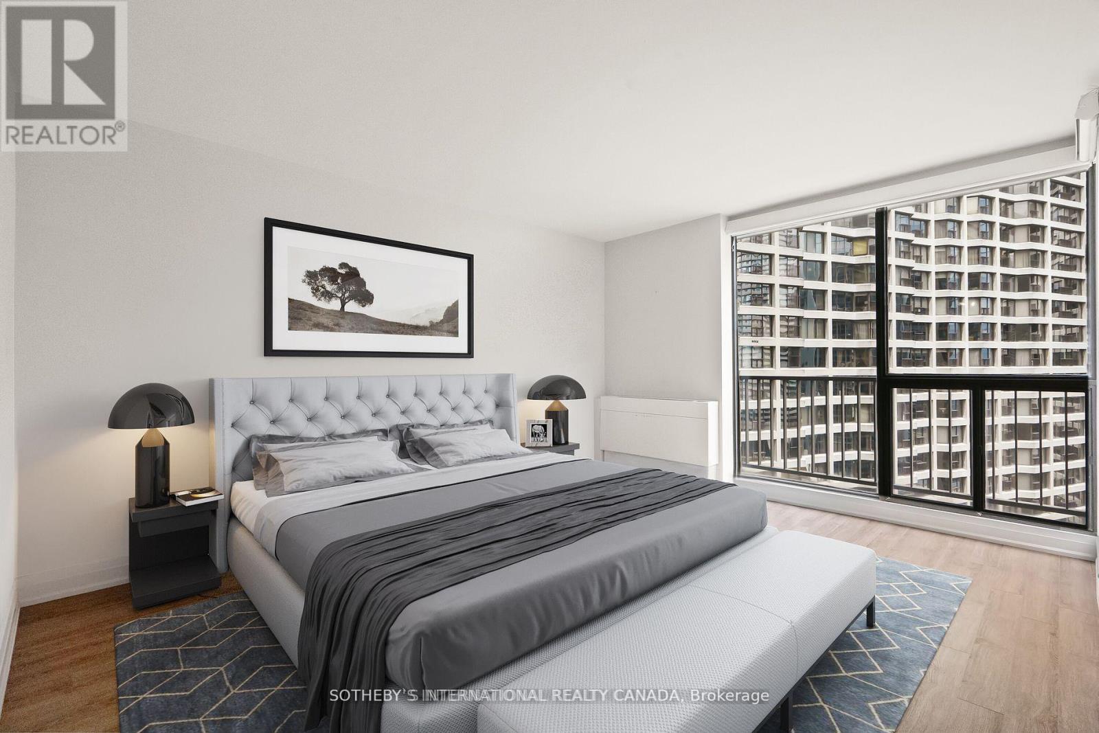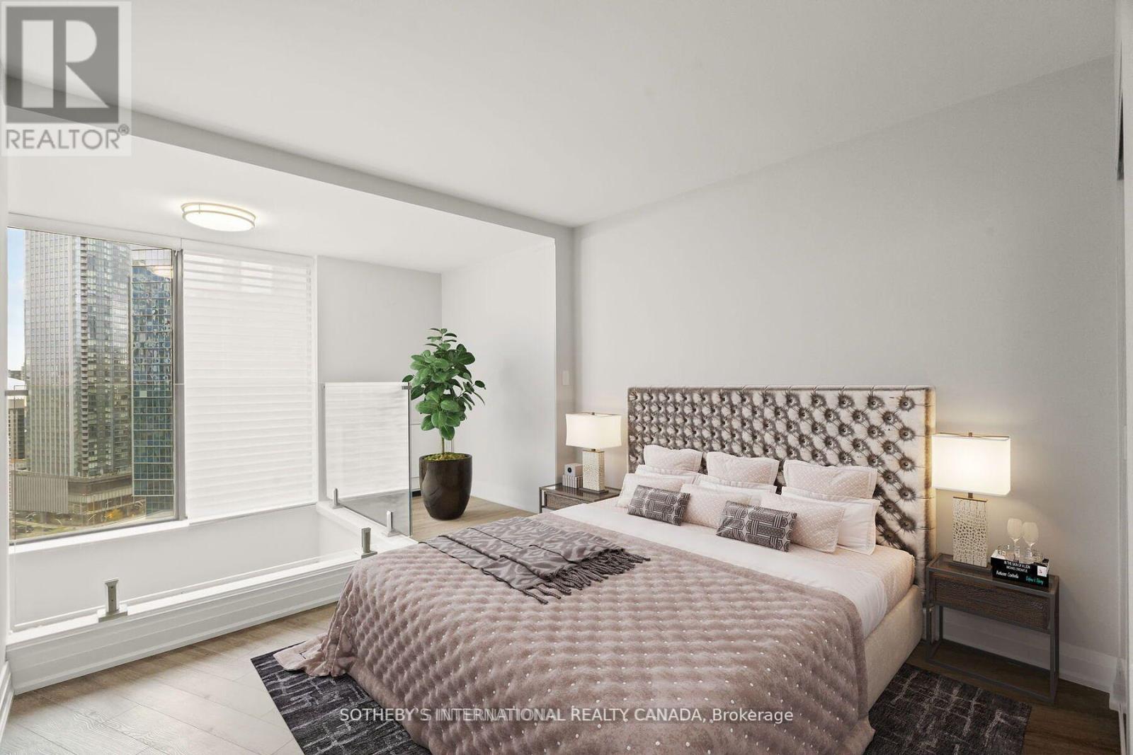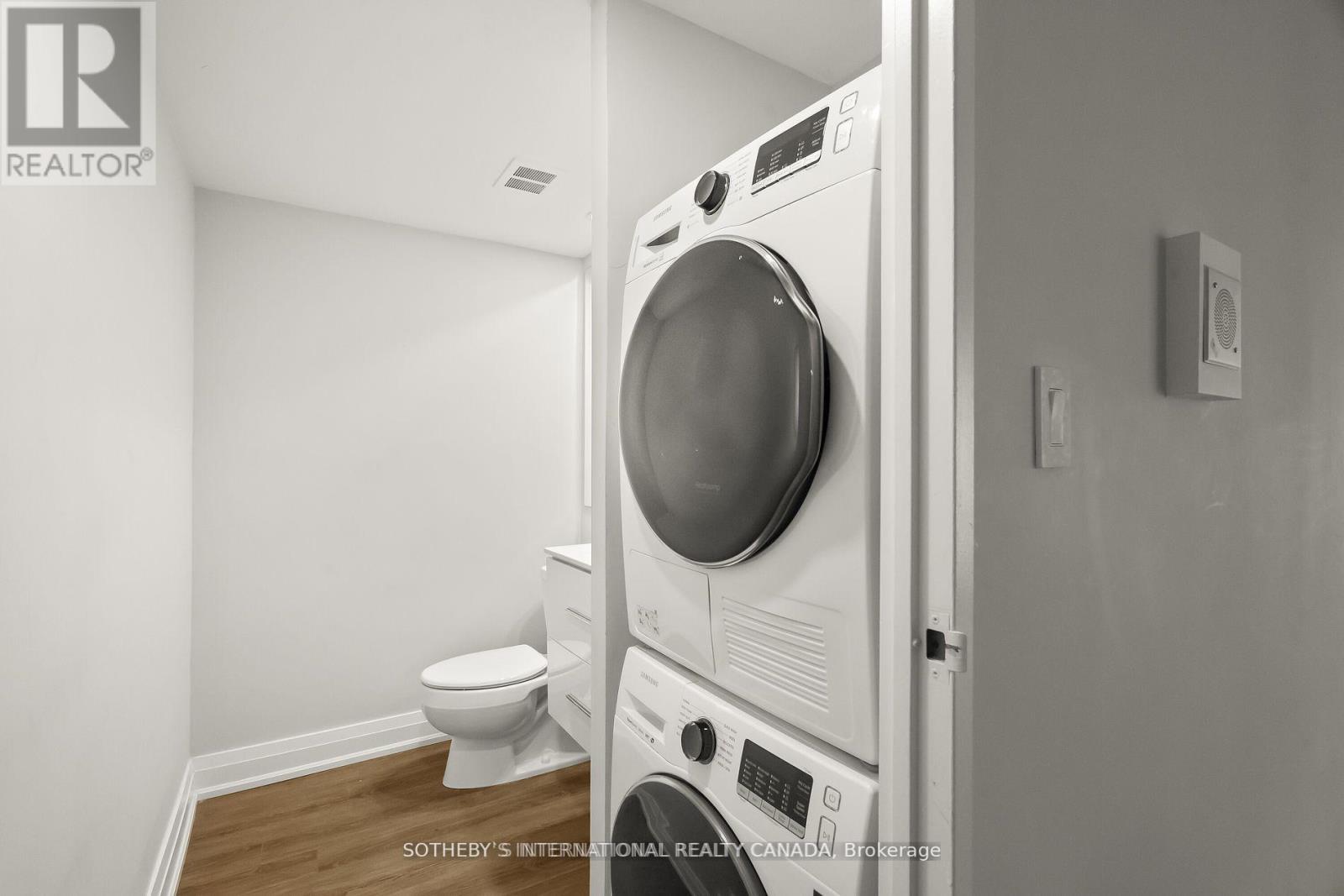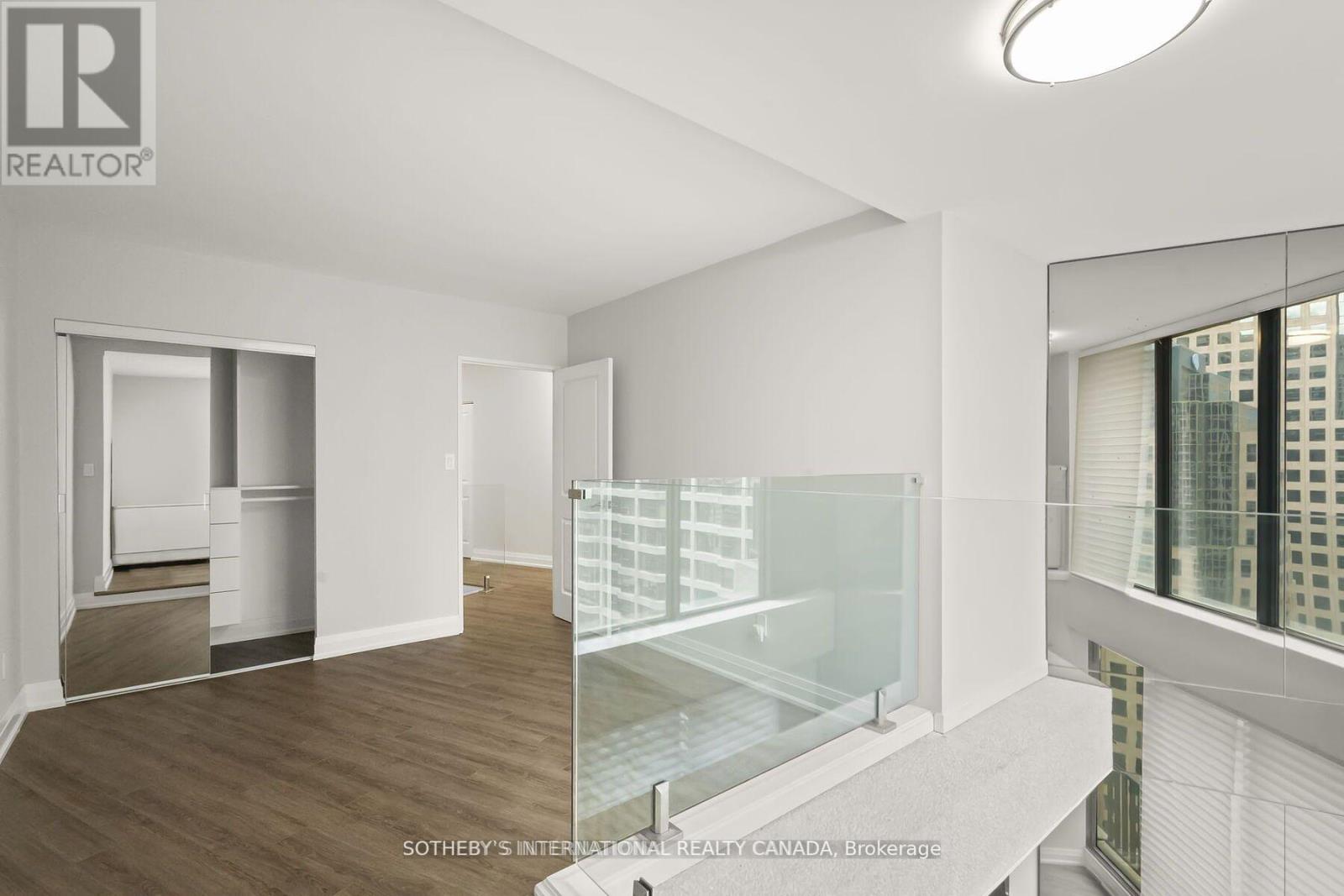Immerse yourself in spectacular waterfront luxury living at Harbour Square with this two-storey, quality-updated and redesigned suite spanning approximately 1500 sq ft. The stunning stainless steel and glass staircase welcomes you into a space where modern elegance meets functionality. Enjoy the seamless blend of design and technology, 2 1/2 baths, ensuite laundry in 2pc guest bathroom, and an eat-in kitchen equipped with high-end appliances. Revel in the convenience of smartphone-operable remote blinds and Lutron lighting, while recessed lighting in the kitchen adds a touch of sophistication. Luxury vinyl flooring flows throughout, complemented by extra storage cleverly tucked under the staircase. Get a restful nights sleep in the Primary suite offering a large closet with built-ins and a spa-like 3pc ensuite bath. There is a second floor open-concept study/den, 2nd bedroom with large closet with organizers, large broom closet and linen closet and 4pc bath. Capture beautiful northwest city views from the comfort of your home. Elevate your lifestyle with this meticulously crafted residence that redefines contemporary urban living on the waterfront. Excellent building amenities include Party Room, fully equipped Gym, Indoor Pool on 35th floor, and Concierge Services. (id:4555)