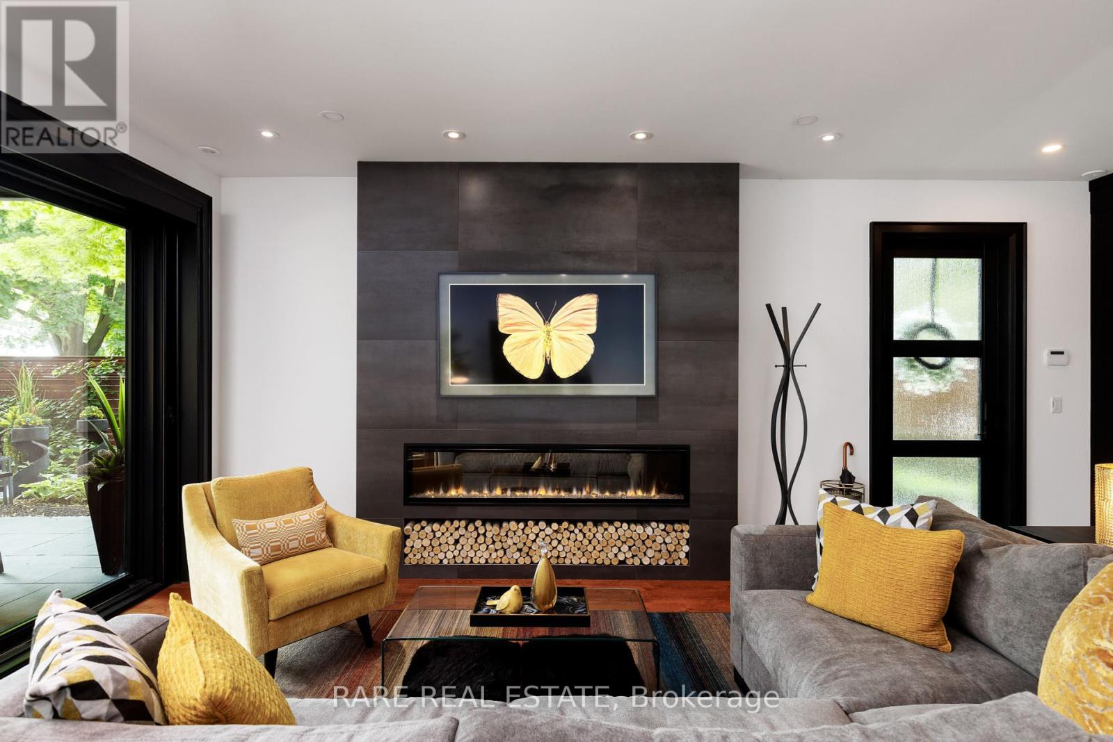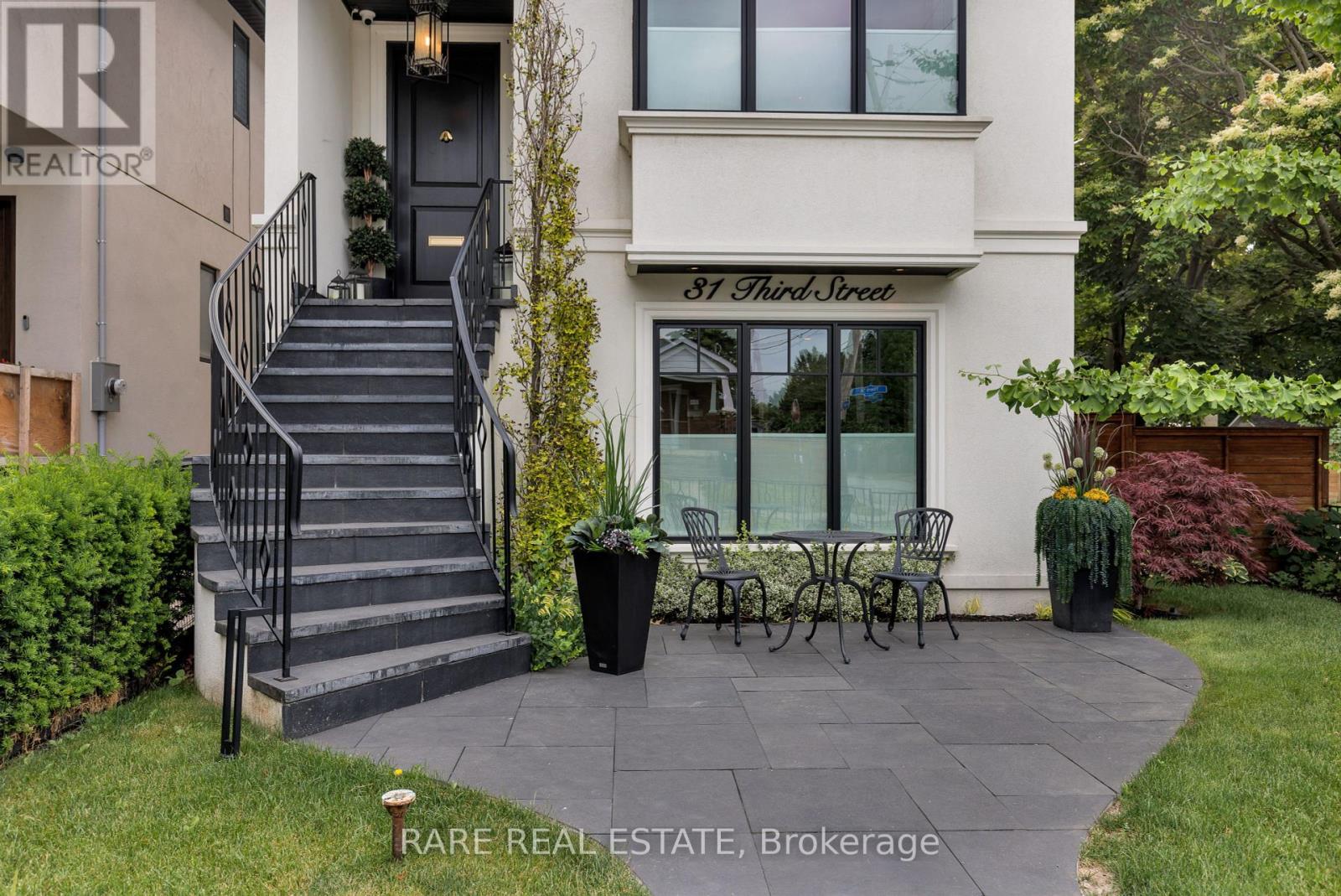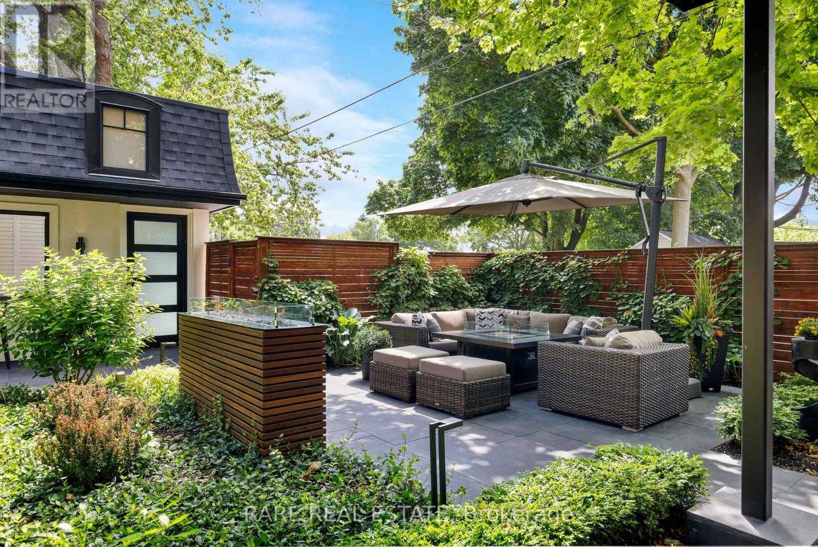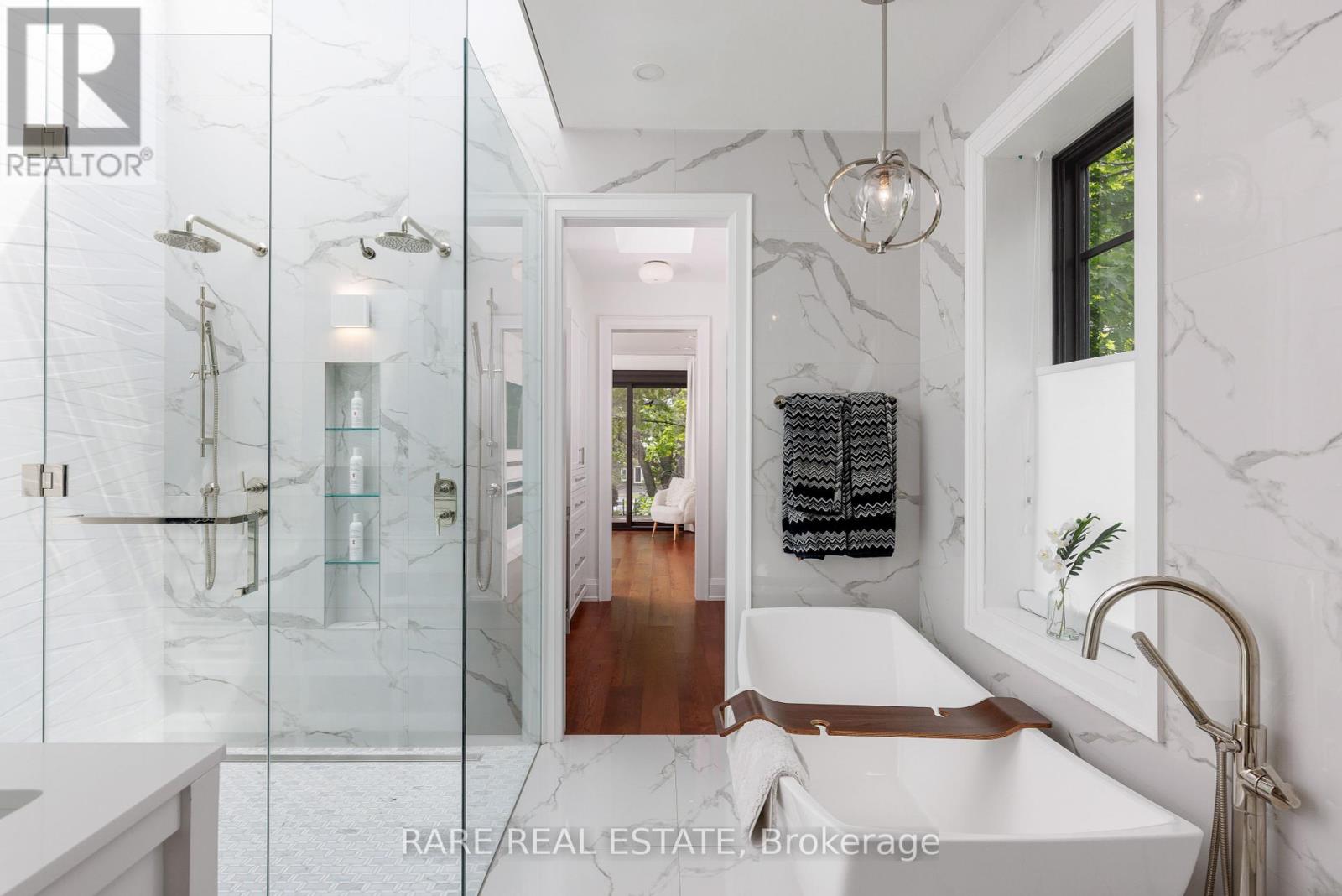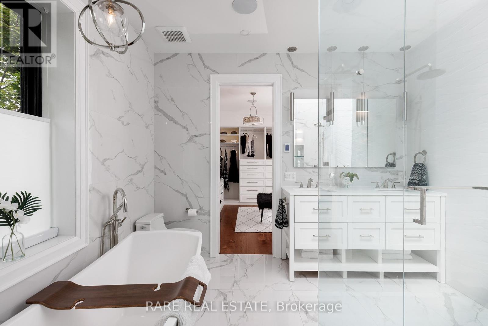 A stunning work of art. A custom home, built with a passion for design and architecture, and attention to every detail. Situated on a majestic corner lot with picturesque landscaping, wide backyard, views of the water and steps to the waterfront parks and Lake Shore shops. Fully custom home with 3,672 sqft above grade space, no basement, 9 foot ceilings on all levels and 5 above grade bedrooms. A home where luxury and warmth come together. Every inch of this home has been masterfully curated with the finest quality finishes and technologies, creating a space that is both breathtaking and inviting. Fully open main level with floating wood and glass staircase that fills the room with sunlight. Designer kitchen with a massive 10 ft kitchen island, and 5 foot Galley Kitchen workstation sink with triple faucets. Double door walk out to the covered terrace overlooking the backyard gardens. Luxurious and relaxing primary suite with views of the sunrise over the water and a walk out to the terrace set within the treetops. Complete with his walk-in closet and her walk-in dressing room with custom wall to wall cabinets and makeup vanity. The backyard's professionally designed landscaping envelops the home in natural beauty and privacy, a cottage setting in the city. The garage completes the outdoor entertaining with a cabana bar glass garage door and rough in mini kitchen. Rough-in kitchen on lower level for in-law suite. An abundance of features and technology for comfortable everyday living and elevated entertaining. Hi-Velocity heat/cool air system with 4 thermostat control zones (1st floor, 2nd floor, 3rd floor, Principal suite). 6 zone in-floor radiant heating on ground level and full bathrooms. Voice & phone controlled smart home integration with custom Lutron lighting control system and Sonos sound system. 3 Samsung 65 inch Frame TVs integrated into the fireplace walls with Sonos play bars. See full feature list. Dressing room can be converted back to the 5th bedroom. (id:4555)