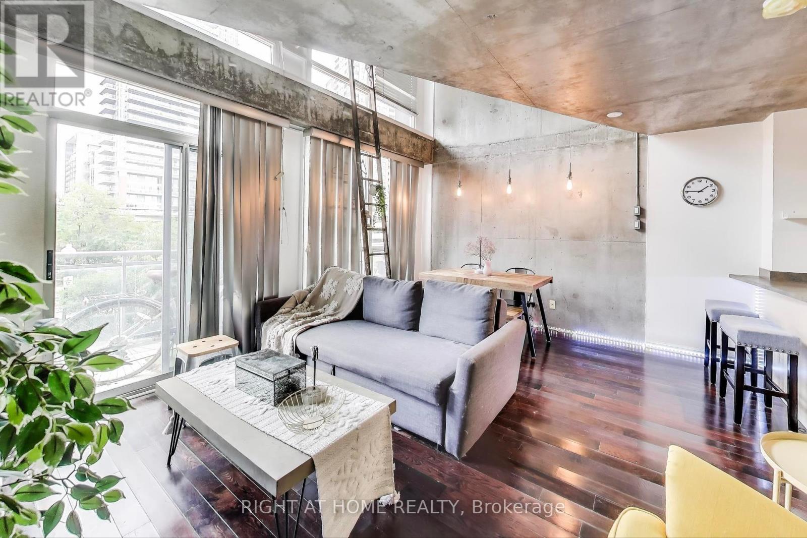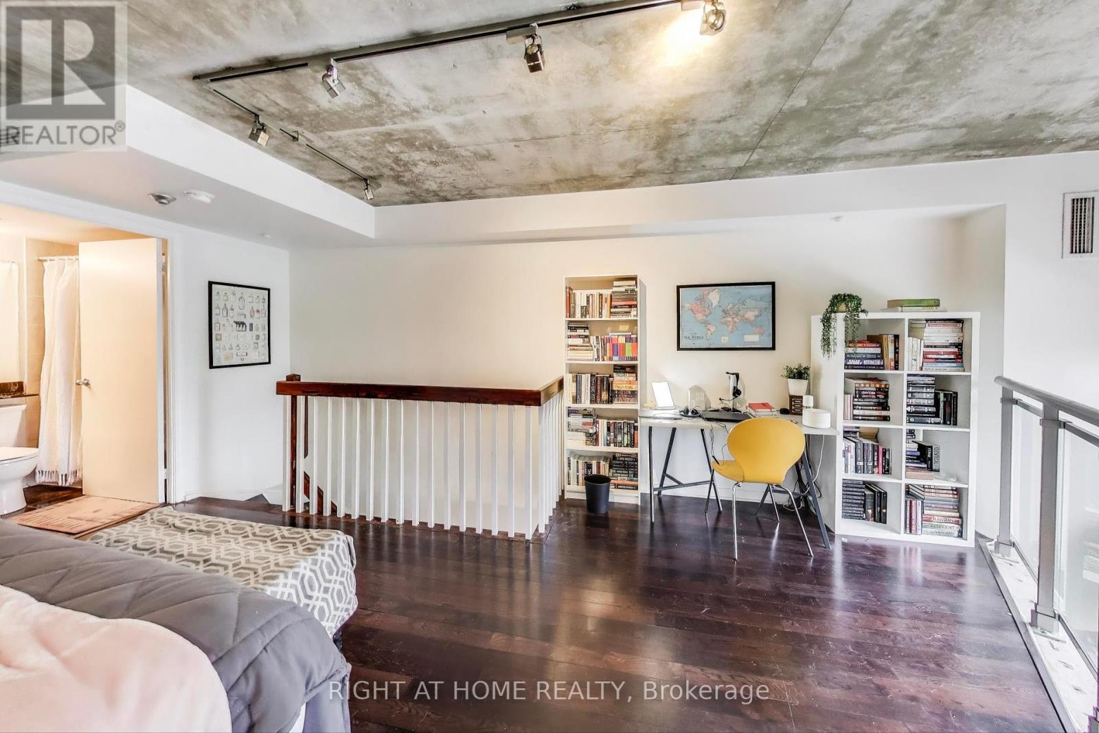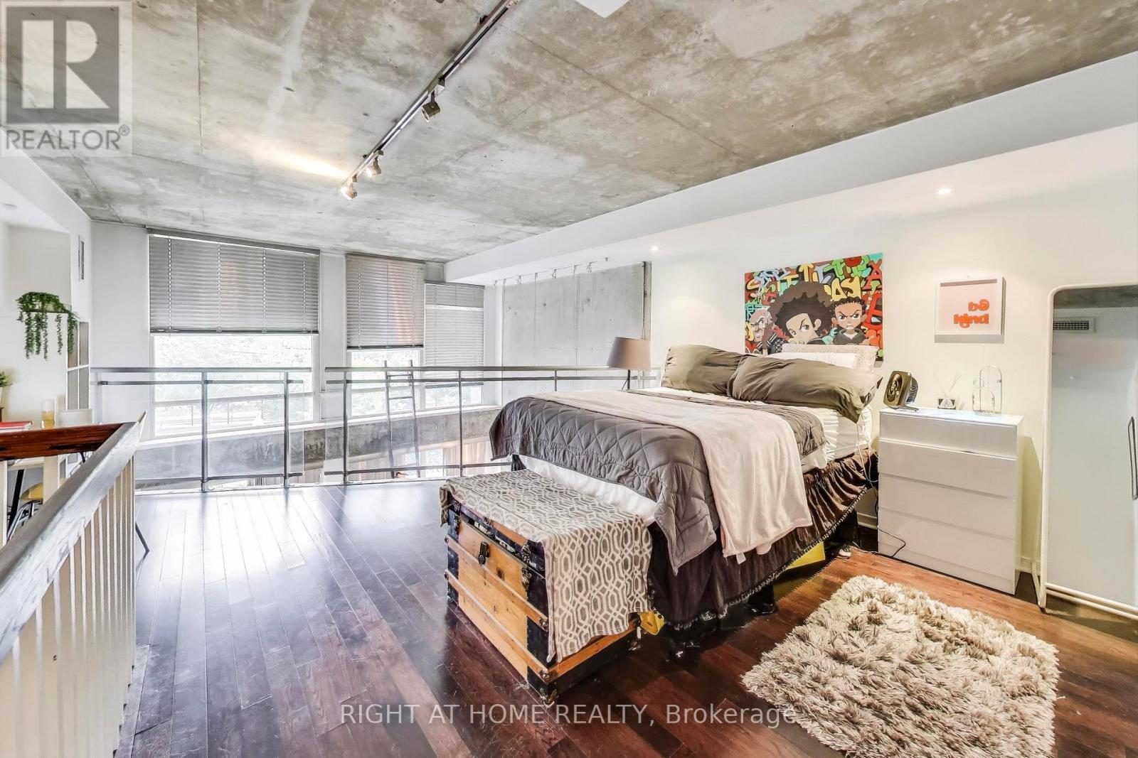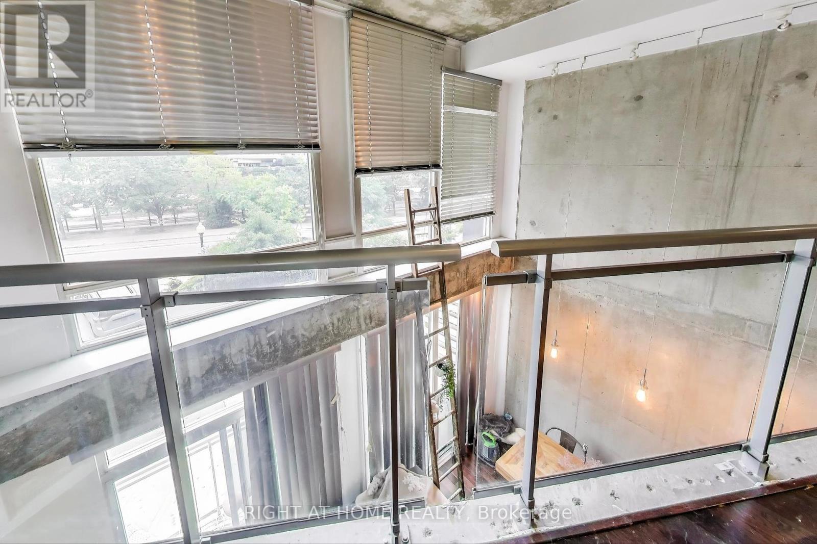Welcome Home to Unit 246 at 1029 King St W - a bright and spacious 1-bedroom + den, 2 bath, 2-level loft in the sought-after Electra Lofts. Boasting approx. 810 sq.ft. of Bauhaus-inspired design, this south-facing unit is flooded with natural light through dramatic double-height windows. The open-concept layout features soaring ceilings in the living area, upgraded modern glass and steel railings on the upper level, and a sleek urban vibe throughout. Enjoy the perfect blend of style and function, with a generously sized bedroom (opened up wall separating the den), and an oversized 6' x 6' private storage locker included. Live in one of Toronto's most dynamic neighbourhoods steps from trendy restaurants, nightlife, transit, parks, the Bentway, and everything downtown has to offer. Whether you're entertaining at home or exploring the city, this is the ultimate King West lifestyle. (id:4555)