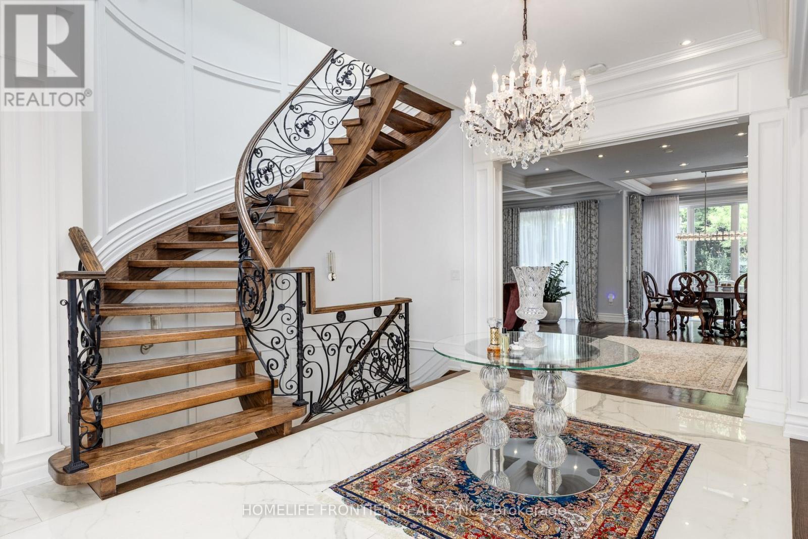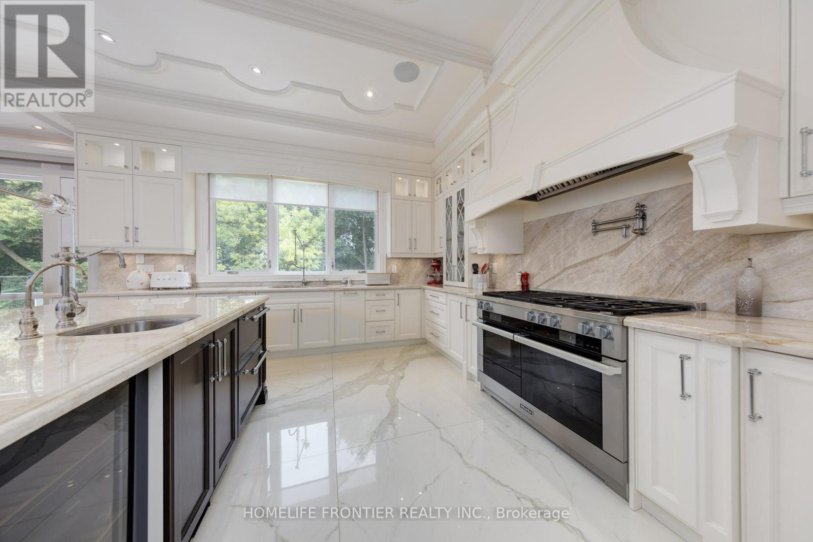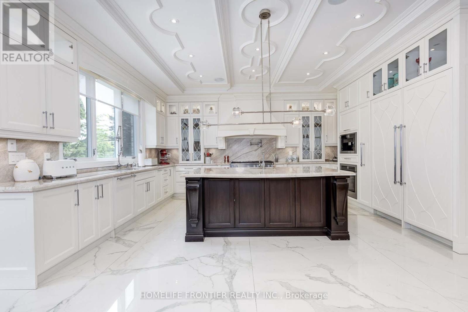Exquisite & Luxurious Custom Residence with Timeless Craftsmanship. This extraordinary custom-built residence showcases an impressive fusion of refined design, timeless elegance, and contemporary luxury. Spanning approximately 5,500 sq.ft of impeccably finished living space, the home is a true architectural gem, offering both sophisticated curb appeal and masterful interior design. Its stunning transitional-style façade is in rich natural limestone and crowned with a premium Inspire roof, ensuring lasting beauty and durability. Step through the grand entryway into a spacious foyer adorned with oversized ceramic tiles that set the tone for the exceptional craftsmanship found throughout. The interior boasts exquisite millwork, soaring ceilings ,and a thoughtfully designed open-concept layout that flows seamlessly from one luxurious space to the next. Every detail has been carefully curated to create a harmonious blend of form and function. At the heart of the home lies the elaborate gourmet kitchen, designed to impress. Featuring an expansive centre island, custom cabinetry, and top-of-the-line Miele appliances ,its a culinary dream for both casual family meals and elegant entertaining. The adjoining living and dining areas are perfectly proportioned for gatherings, enhanced by refined finishes and an abundance of natural light. Adding to the homes appeal are premium lifestyle features such as a private elevator, a wine cellar, a wet bar, and a separate nanny or in-law suite each thoughtfully integrated to enhance everyday comfort and versatility. Step outside to your own private oasis, where resort-style living awaits. A pristine rectangular pool, illuminated with LED lighting and highlighted by a tranquil waterfall feature, is the centerpiece of the exquisitely landscaped backyard. Lush greenery, manicured gardens, and a heated driveway contribute to year-round luxury and convenience, reflecting a substantial investment in outdoor living and design. (id:4555)