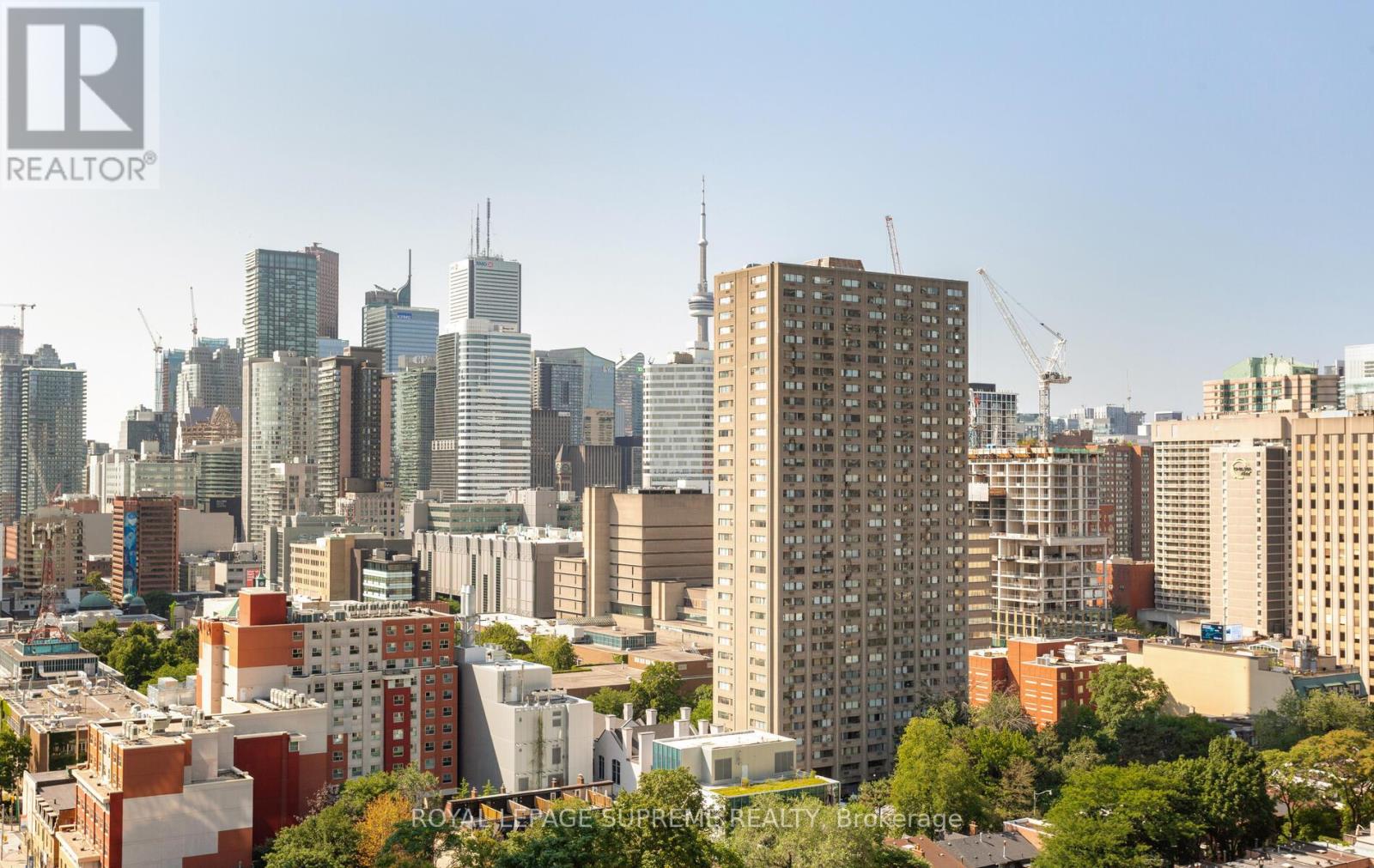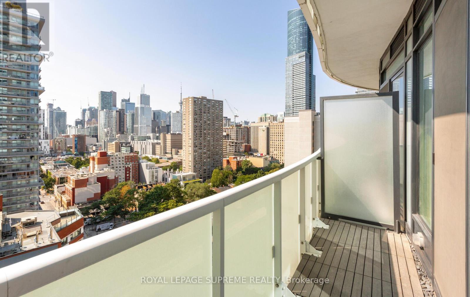 Welcome to The Stanley Condos, ideally situated at Church & Carlton. This bright and spacious 1+den suite is in immaculate condition, showcasing floor-to-ceiling windows that flood the home with natural light, a versatile den perfect for a home office or guest room, a generous bedroom with a double closet, and a well-appointed washroom featuring an upgraded glass shower for a touch of luxury. Step out onto the oversized private balcony to enjoy spectacular, unobstructed east-facing views of both the lake and the city skyline. The open-concept layout is enhanced by modern finishes and a comfortable, functional design. Perfectly positioned just steps from College Subway Station, Toronto Metropolitan University, U of T, the Financial District, Eaton Centre, and Dundas Square, with everyday essentials such as Loblaws, LCBO, cafes, and restaurants right at your doorstep. Enjoy outstanding building amenities including a 24-hour concierge, state-of-the-art gym, party room, sundeck, and yoga studio, making this an ideal home for those seeking a vibrant and connected downtown lifestyle! (id:4555)