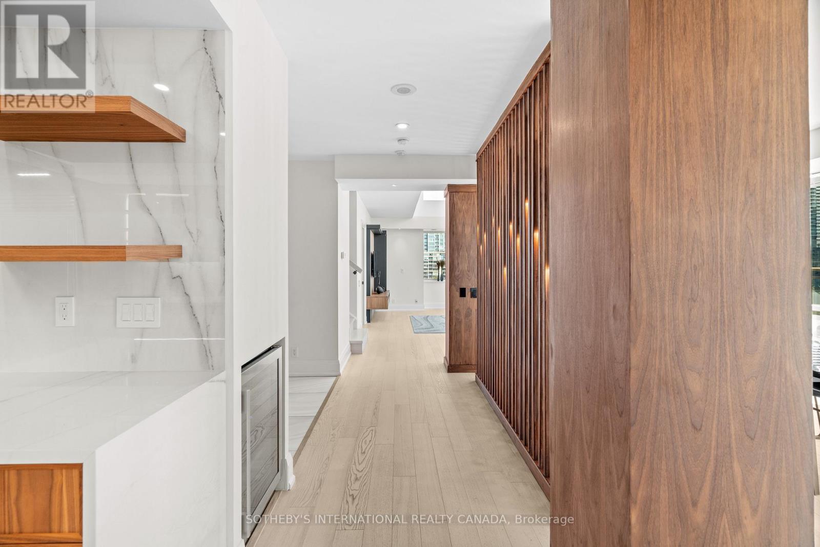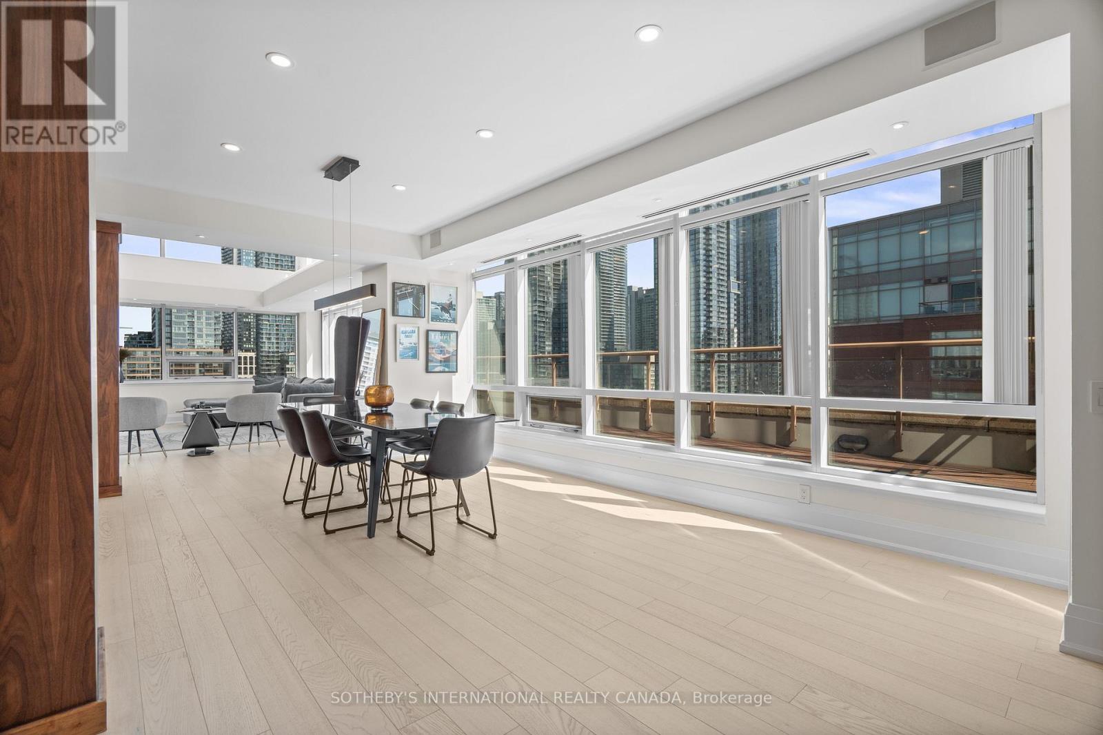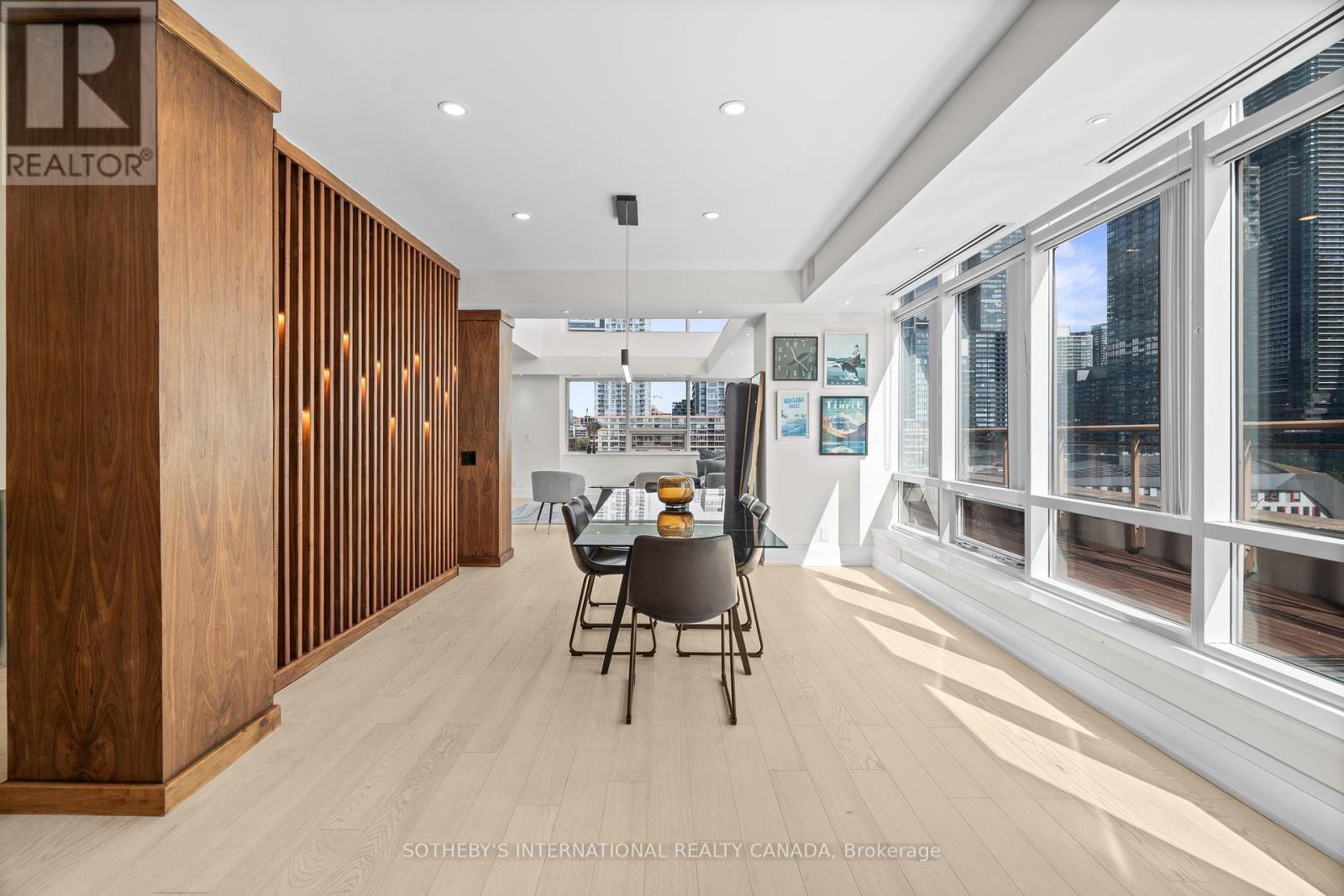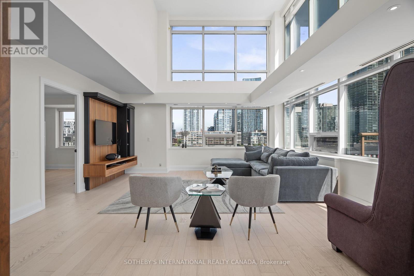 Welcome to this luxurious Fully Furnished Two-level Penthouse Corner Suite, An Exceptional 3-bedrooms, 3.5-bathroom Residence and one of the True Jewels of Queens Quay. With soaring 18-foot ceilings in the living room, dramatic floor-to-ceiling windows, and southern and eastern exposures, this home offers breathtaking views of both Lake Ontario and the Toronto skyline. The open-concept design is enhanced by a gas fireplace, built-in speakers, and an abundance of natural light, creating a warm yet sophisticated atmosphere.The gourmet kitchen features a stainless steel gas stove, fridge, dishwasher, and premium finishes, while spa-inspired bathrooms include airflow whirlpool tubs for ultimate relaxation. Each of the three spacious bedrooms boasts its own ensuite bathroom, with the private primary suite enjoying panoramic water and city vistas. For convenience, the suite is equipped with a washer/dryer and comes fully furnished for immediate enjoyment.Additional highlights include two premium parking spots, generous living and entertaining spaces, and a seamless blend of modern luxury with everyday comfort. Ideally located, this residence places you just steps from the Scotiabank arena , Rogers Centre, Union Station, public transit, world-class restaurants, boutique shopping, and Starbucks right at your door. Offering the perfect balance of elegance, comfort, and lifestyle, this penthouse represents a rare opportunity to live in one of Torontos most sought-after waterfront addresses. (id:4555)