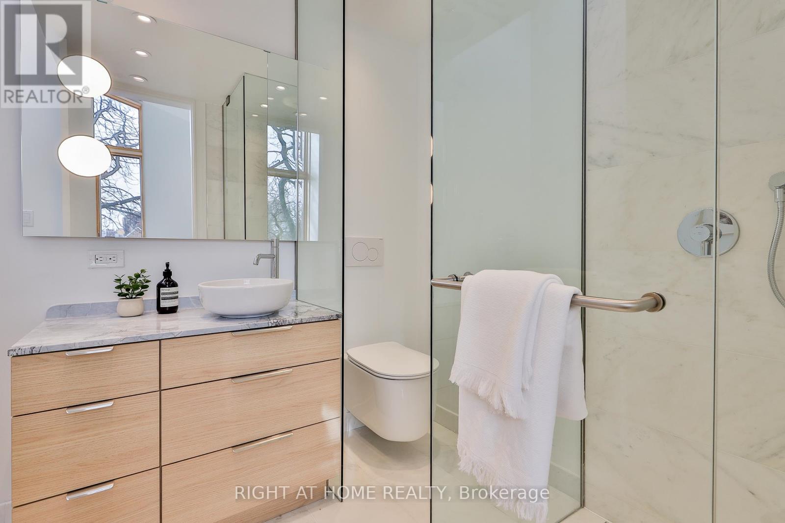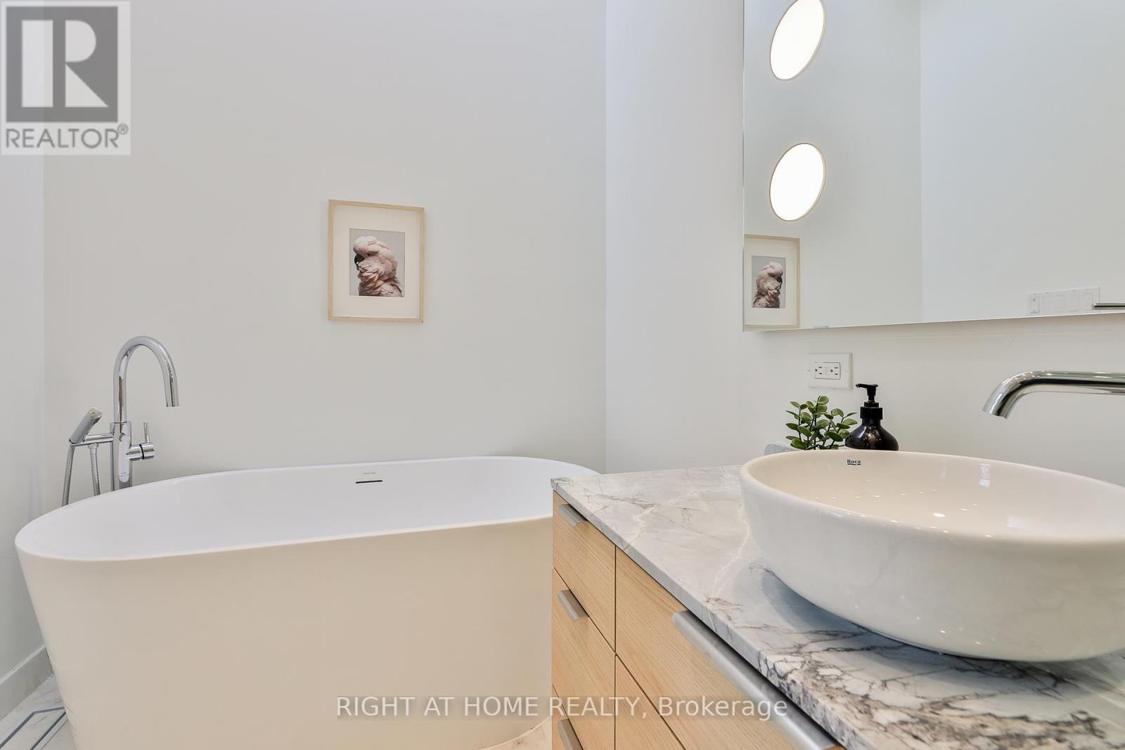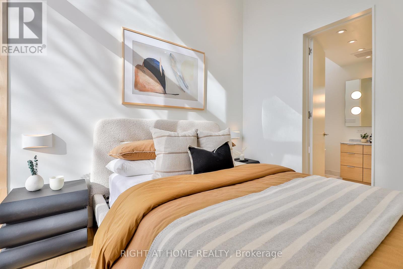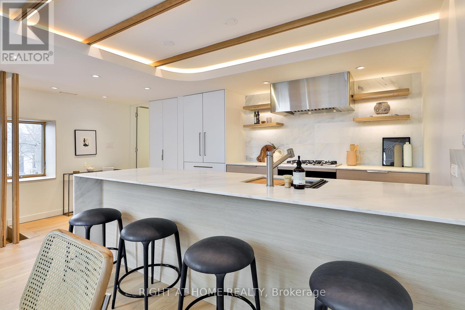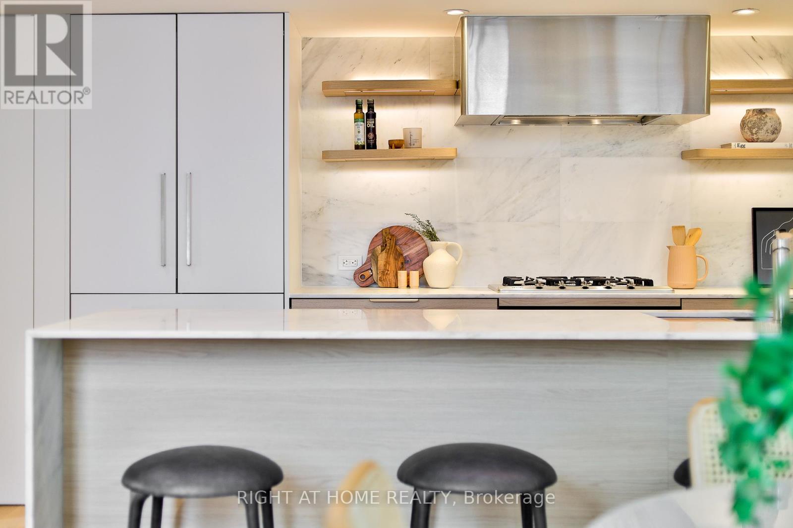 Be first to call this Penthouse "home" at Brunswick Lofts! A bright and modern corner Penthouse with private terrace in the trees in a rare boutique building in the heart of the Annex. This sun-filled and stylish suite offers a generous floorplan of almost 1,100 square feet, in a just-completed heritage conversion of only seven suites. Spanning two levels, this west Penthouse features a private entry with foyer and offers exceptional volume, tremendous attention to modern details and a one-of-a-kind roofline that creates a unique double-height living room flooded with natural light. A custom kitchen with white oak cabinetry, natural stone surfaces, integrated Miele appliances, gas cooktop, oversized island with wine fridge perfect for avid chefs and great entertaining. Upstairs, the quiet primary suite features tailored built-ins and a bright ensuite with soaker tub and shower. Main floor powder room, great storage and the warmth and elegance of loft living. Permit street parking for 2 cars, and steps to Bloor, Harbord Village, U of T and transit. Heritage architecture and contemporary craftsmanship in an outstanding location. HST included, and full Tarion warranty. (id:4555)