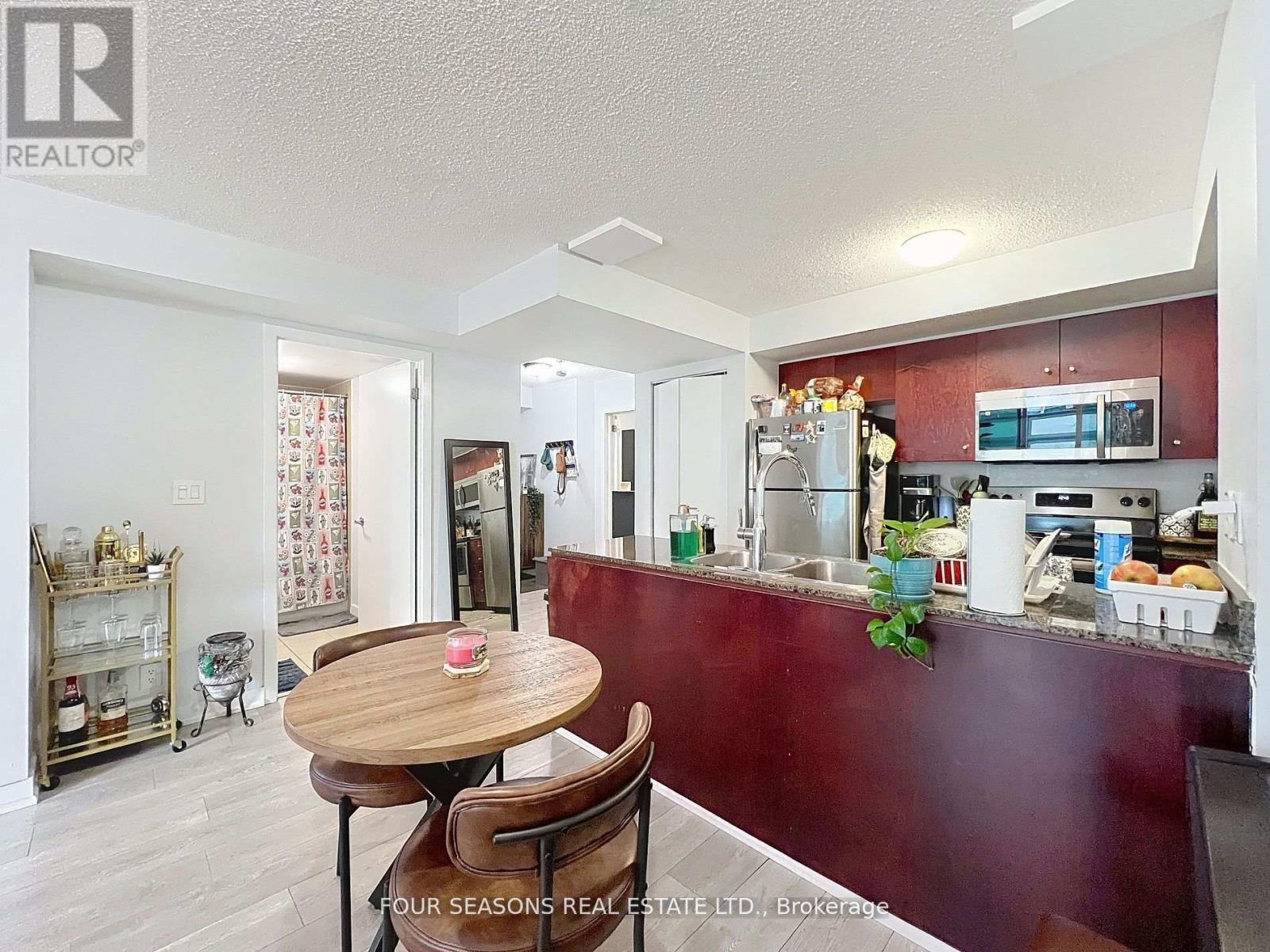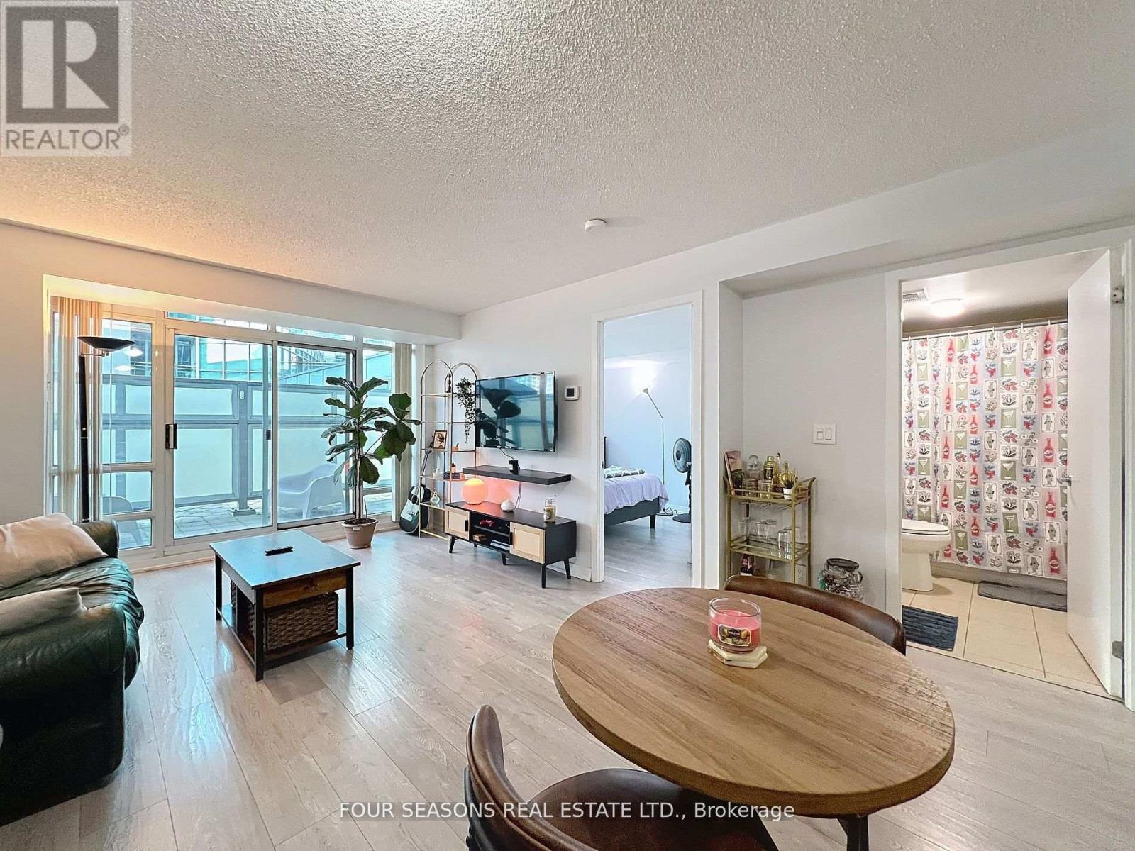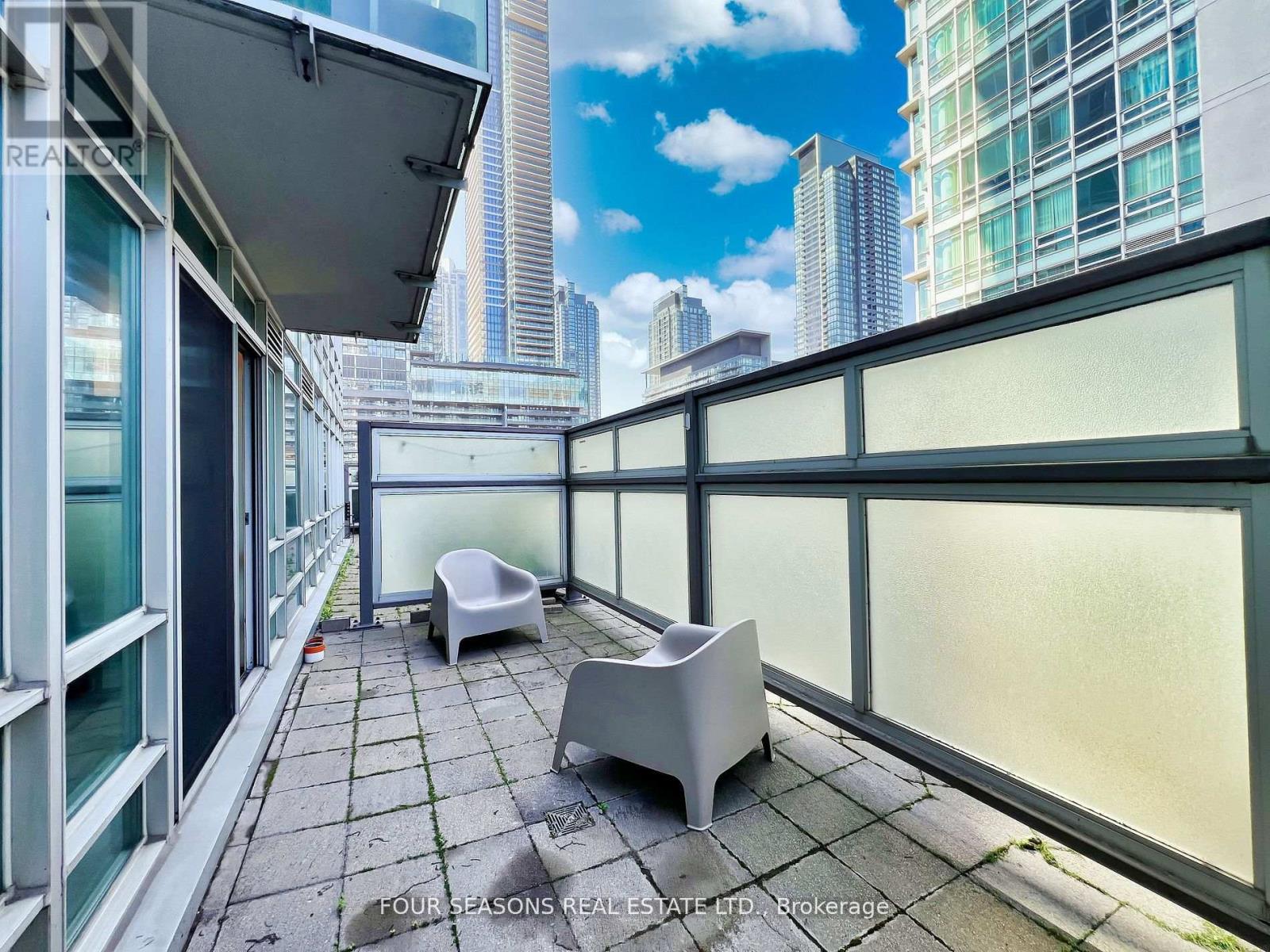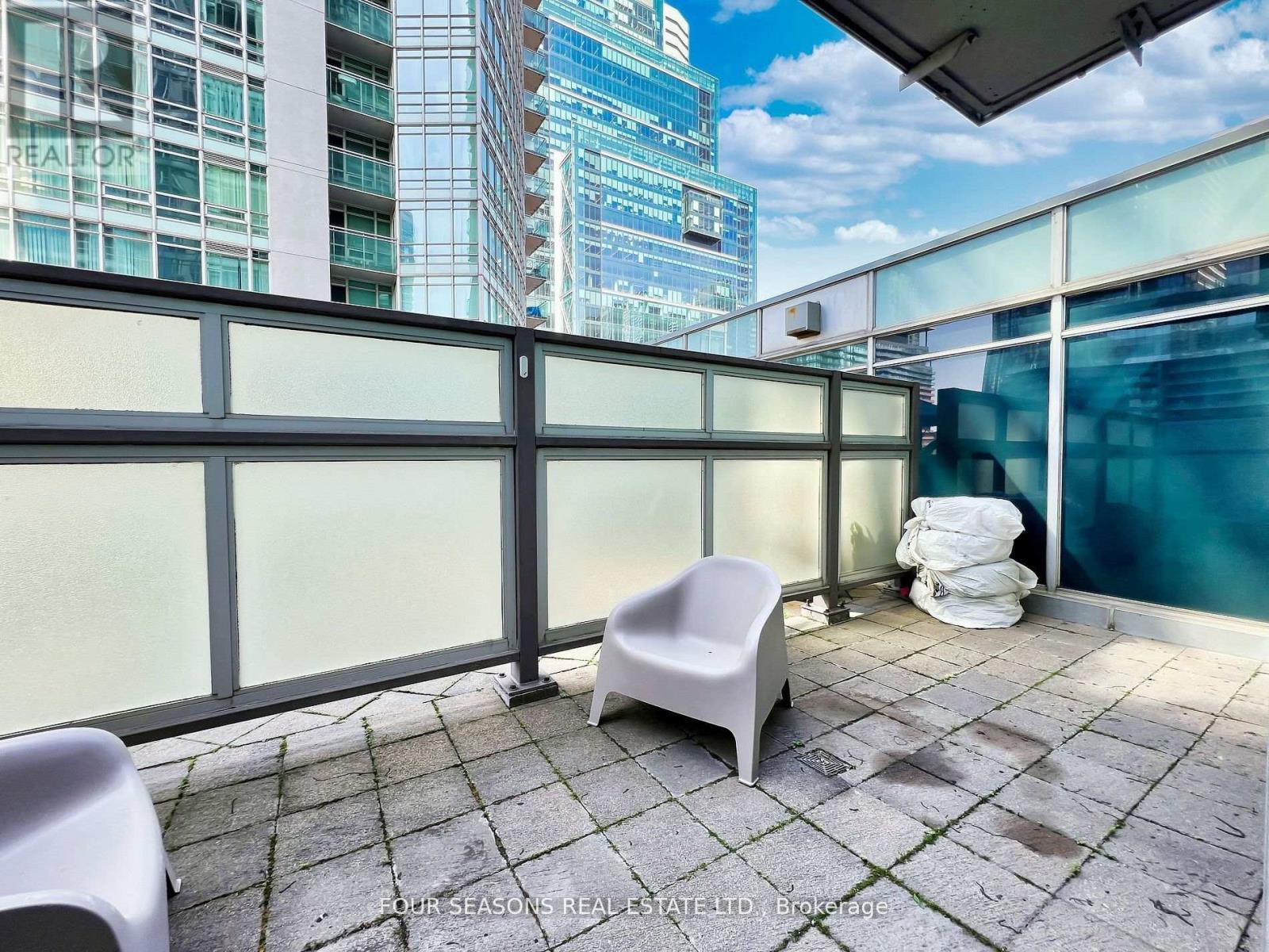 Enjoy the best of both worlds in this fabulous 1+1 bedroom suite at Apex. The spacious den can easily function as a second bedroom or home office, and the rare 20 x 8 ft private terrace offers the perfect outdoor space to relax or entertain. Located on a convenient lower level, this unit allows for quick access without long elevator waits. Freshly updated with brand new floors and stainless steel appliances, including a fridge, stove, built-in dishwasher, and micro-hood fan, ready for your gourmet touch! Just steps to Torontos Entertainment & Financial District, Union Station, TTC, Billy Bishop Airport, the waterfront, and more. Parking, locker, and all utilities included. Building features 24-hr concierge, indoor lap pool, gym, and top-tier amenities. (id:4555)